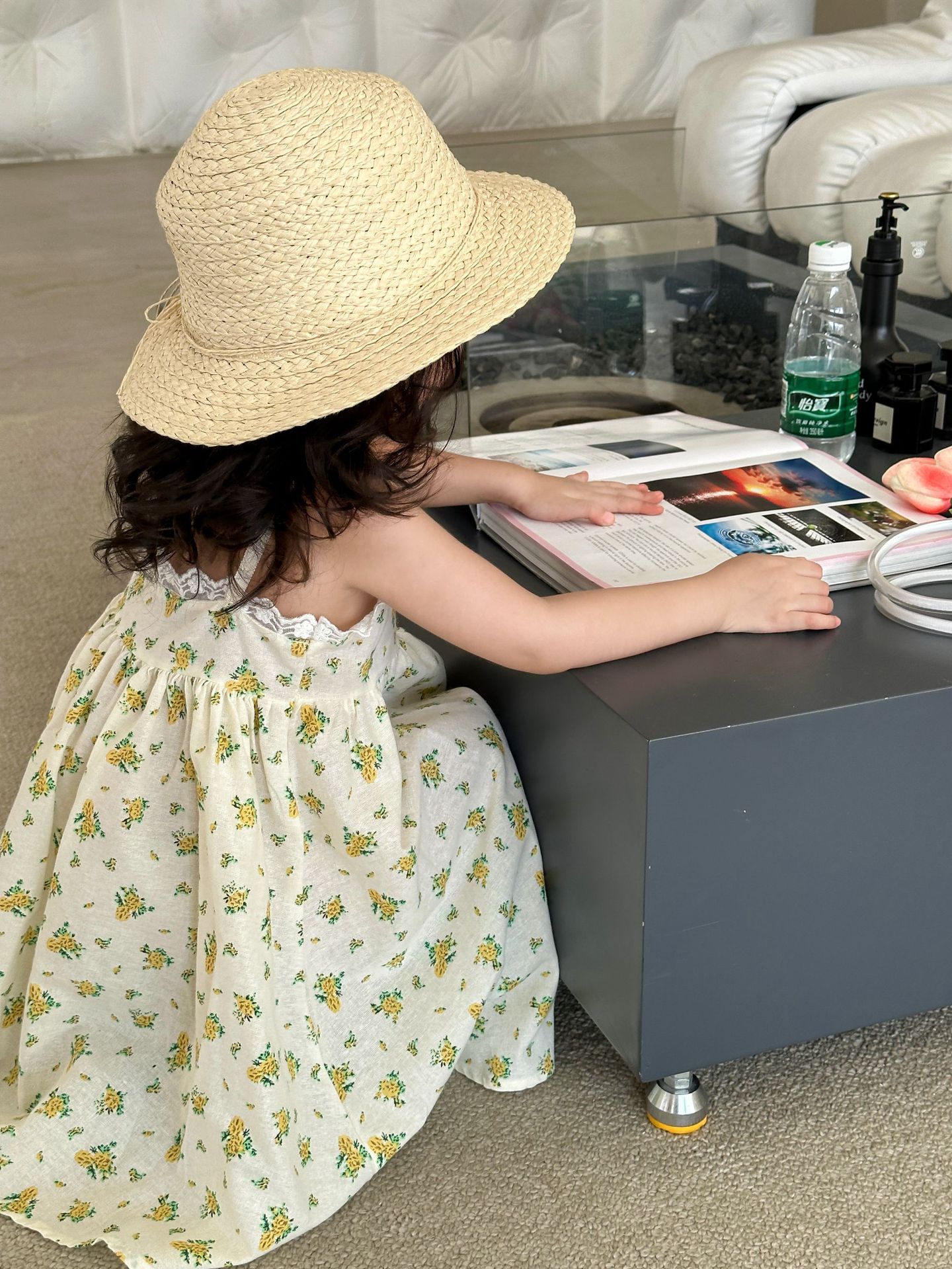 キッズ女の子に人気の花柄レースが可愛いロングワンピース。