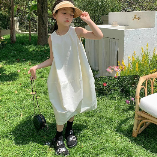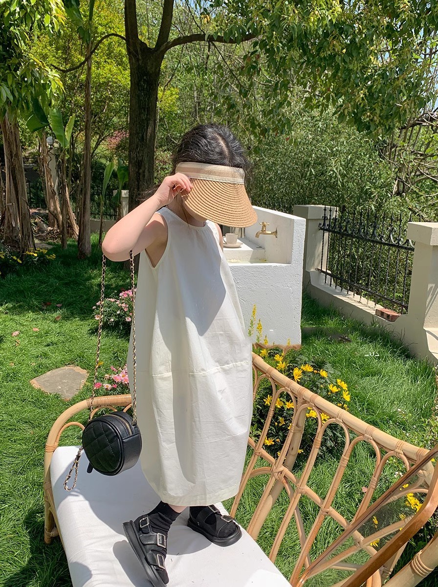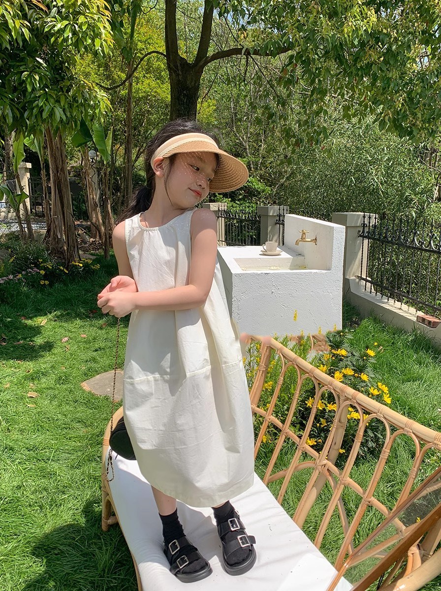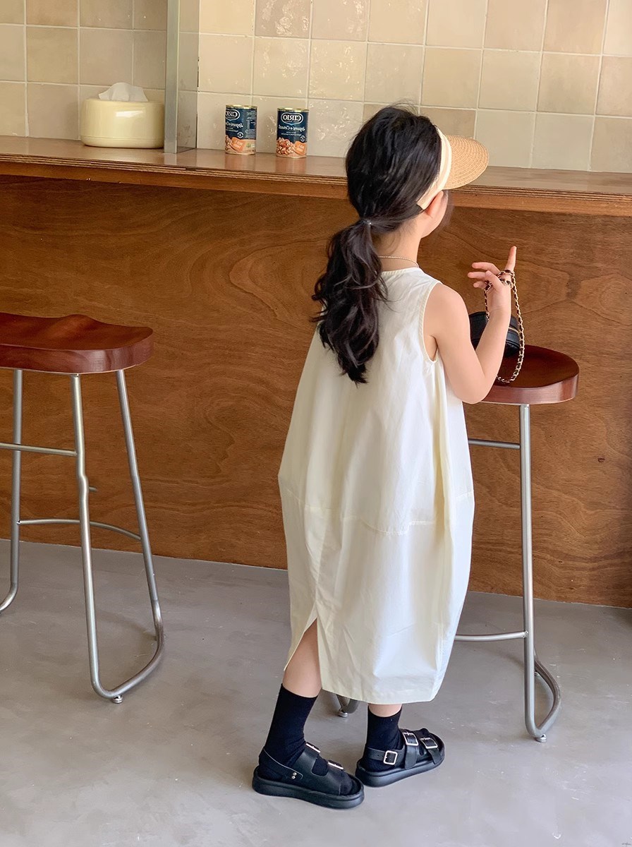 ■コメント ・シーズンムード漂う夏にピッタリなワンピース。 ・涼しく動きやすいノースリーブ。 ・シンプルで清涼感溢れるホワイトカラー。 ・バックにスリットが入って、お洒落です。 ・レイヤードコーデもおすすめです。 ■サイズ(単位:約cm) 90 総丈59.5 バスト66 適応身長95-100cm 100 総丈63.5 バスト69 適応身長100-105cm 110 総丈67.5 バスト72 適応身長105-115cm 120 総丈71.5 バスト75 適応身長115-120cm 130 総丈75.5 バスト78 適応身長120-130cm ■カラー 綿80%、ポリエステル20% ■伸縮性 なし ■裏地 なし ■生地の厚さ 普通 ■透け感 なし