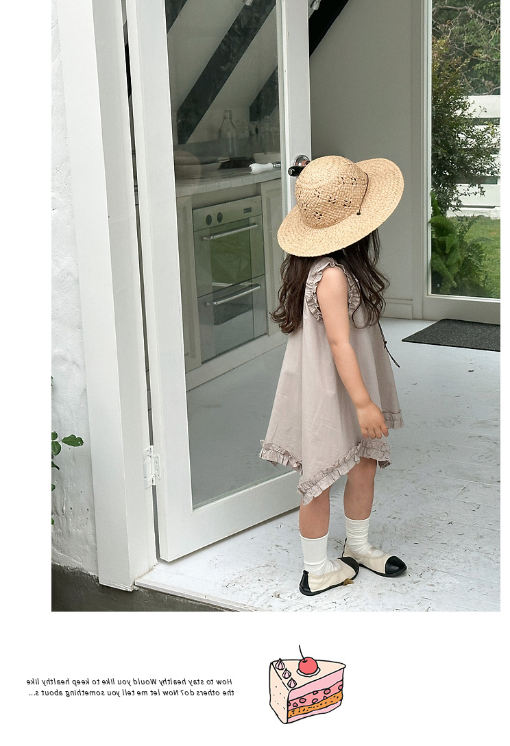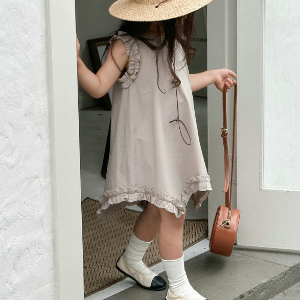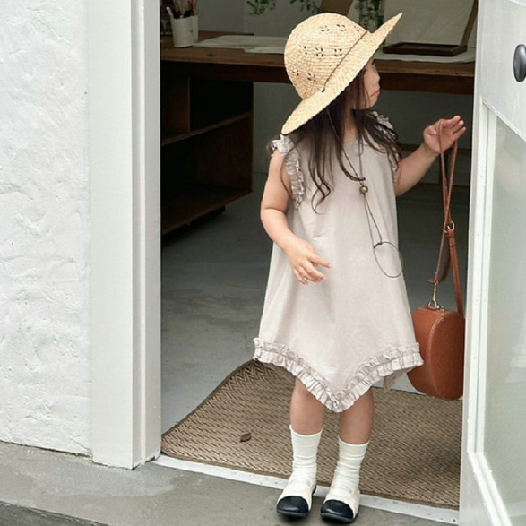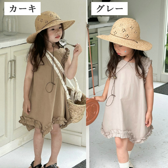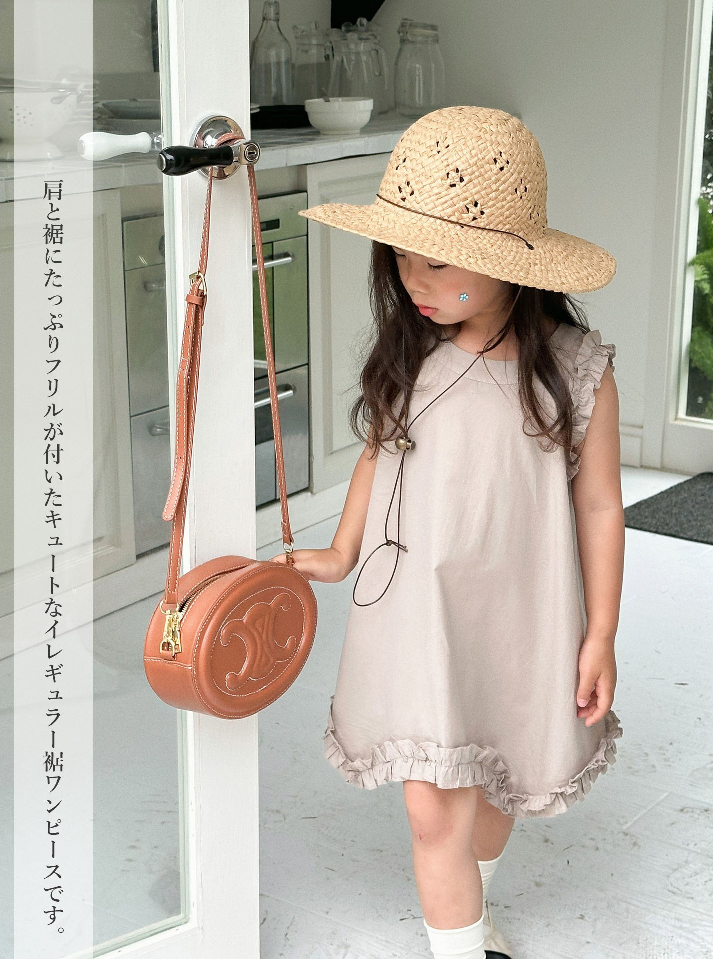 ■コメント ・肩と裾にたっぷりフリルが付いたキュートなイレギュラー裾ワンピースです。 ・肌に優しいコットン100%。 ・一枚着でも、ジーンズやプリーツパンツなどと合わせても◎。 ・日常から特別なお出かけまで幅広く大活躍できる1着です。 ■サイズ(単位:約cm) 90 総丈57 バスト72 100 総丈59 バスト76 110 総丈61 バスト80 120 総丈64 バスト84 130 総丈67 バスト86 ■カラー 綿100% ■伸縮性 なし ■裏地 なし ■生地の厚さ 普通 ■透け感 なし