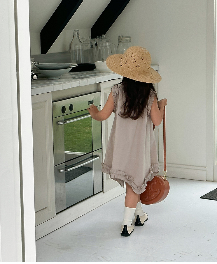 可愛らしい肩フリルが特徴的なキッズ用ロングワンピースです。