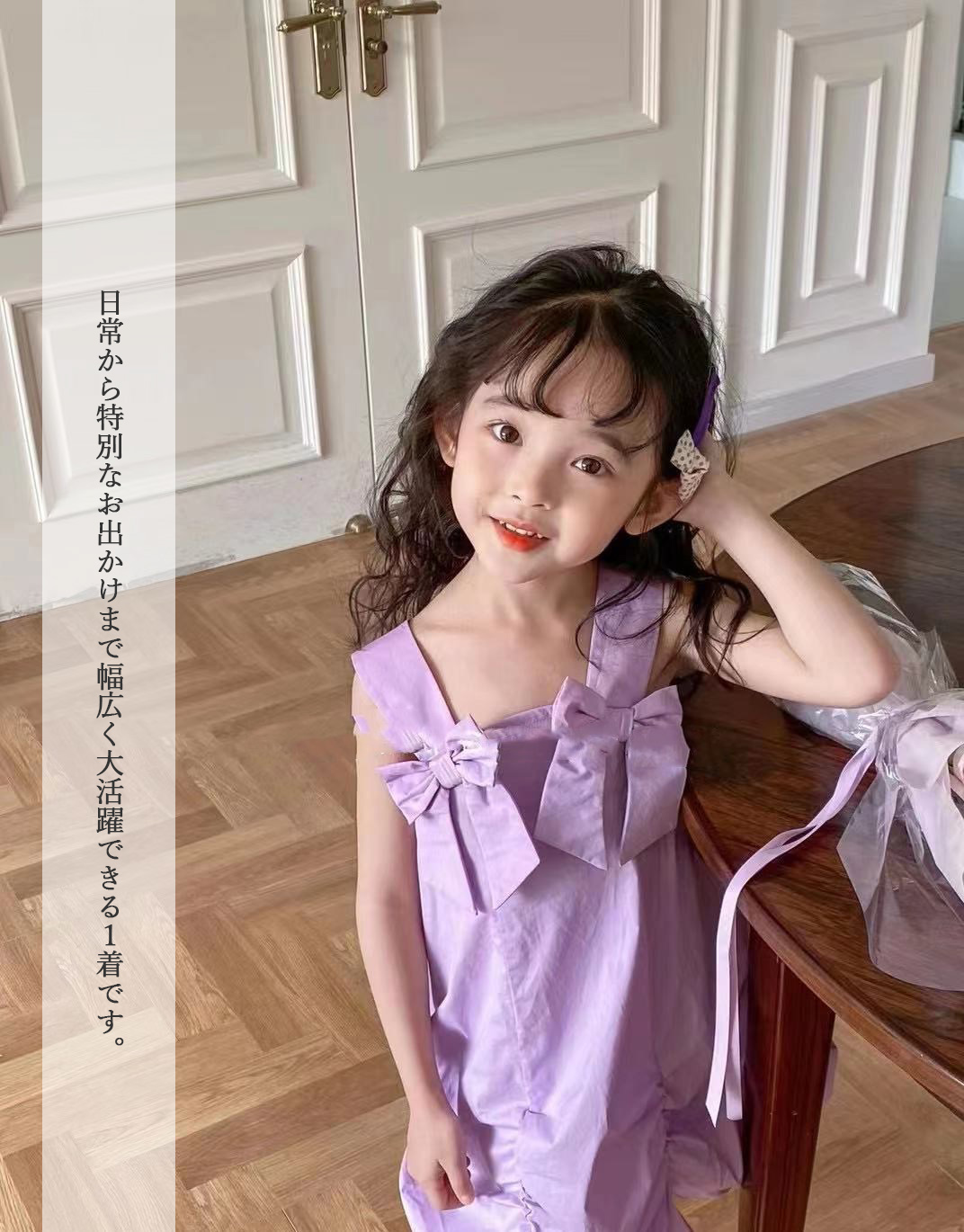 胸元の可愛いリボンが特徴的で、女の子らしい上品な仕上がりになっています。