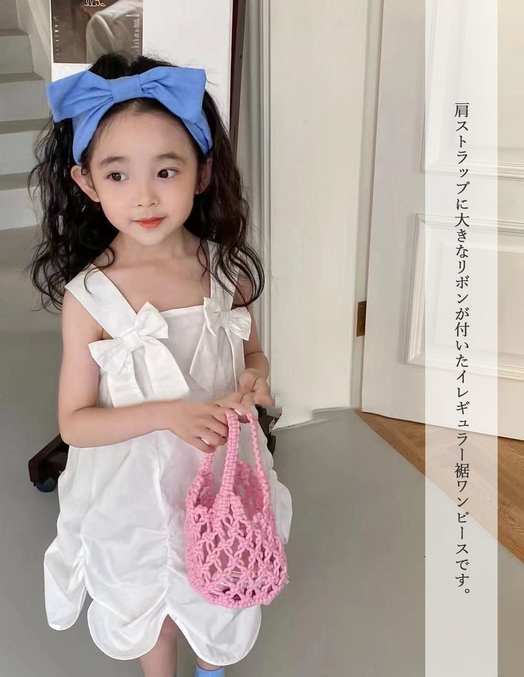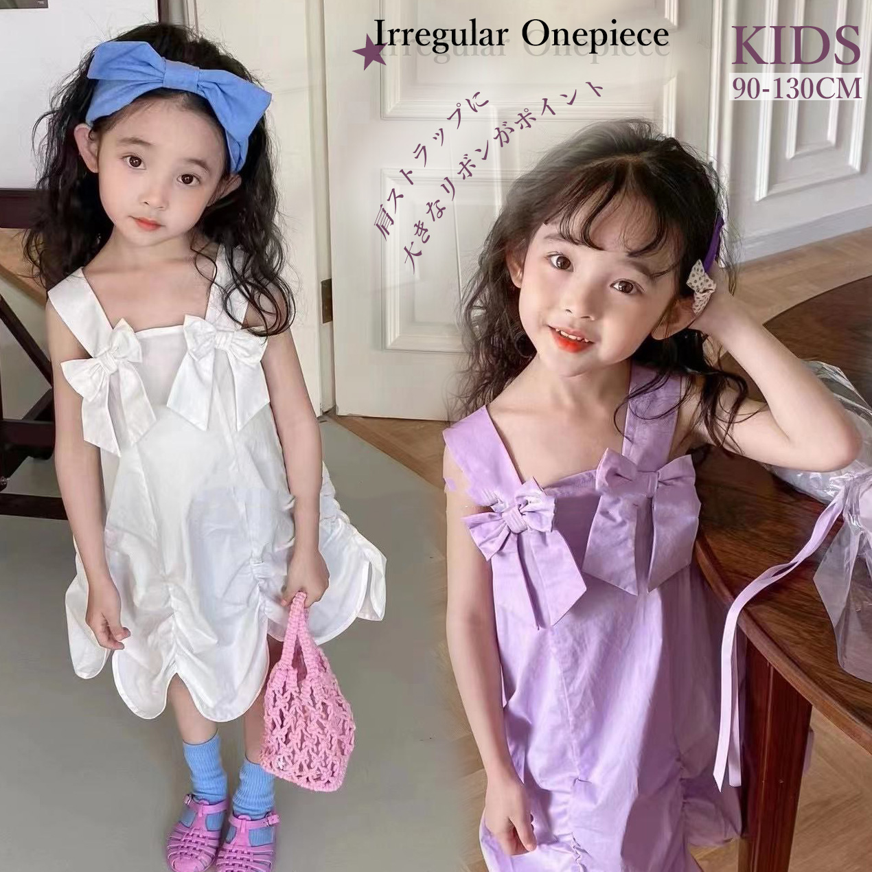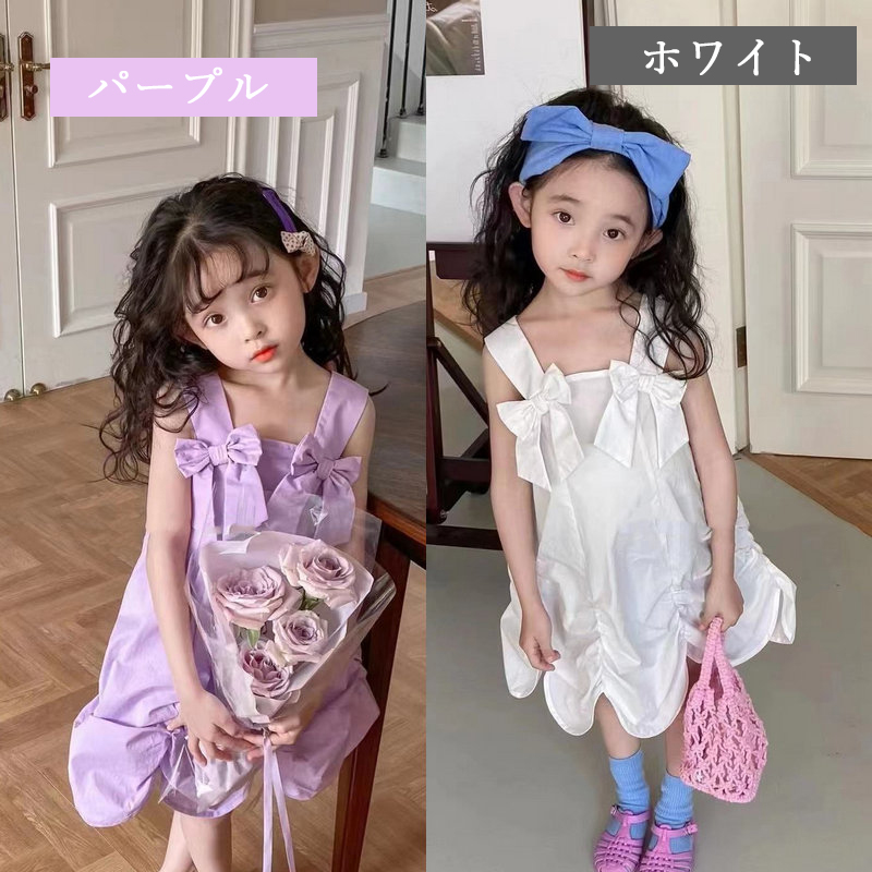 ■コメント ・肩ストラップに大きなリボンが付いたイレギュラー裾ワンピースです。 ・これ1枚で着ても、インナーにtシャツやタンクトップなどと合わせるレイヤードスタイルもキュート。 ・肌に優しいコットン100%。 ・日常から特別なお出かけまで幅広く大活躍できる1着です。 ■サイズ(単位:約cm) 90 総丈65 バスト66 100 総丈68 バスト68 110 総丈71 バスト70 120 総丈73 バスト74 130 総丈75 バスト78 ■カラー 綿100% ■伸縮性 なし ■裏地 なし ■生地の厚さ 普通 ■透け感 なし