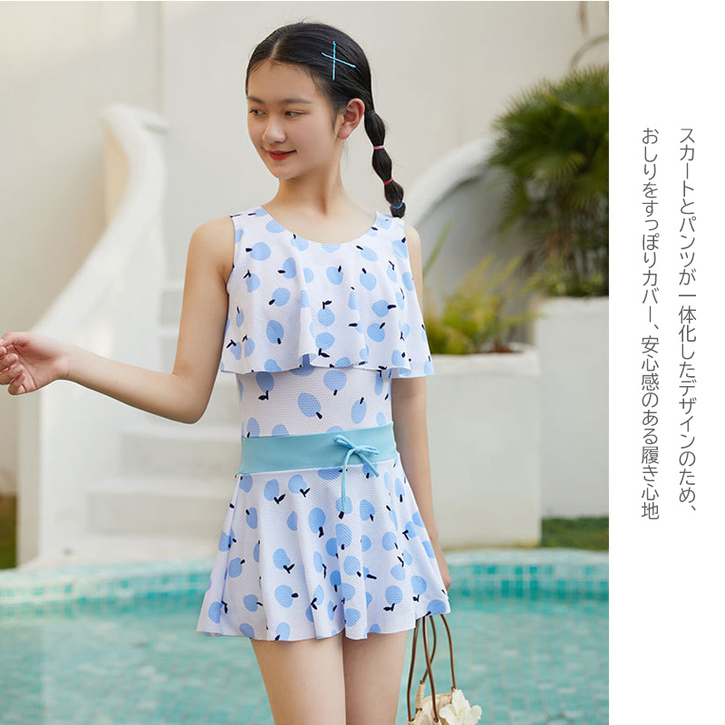 ■コメント ・露出が控えめなワンピース水着。 ・紫外線からお肌を守ります。 ・生地が柔らかく伸縮性抜群の上、軽くて丈夫! ・スカートとパンツが一体化したデザインのため、おしりをすっぽりカバー、安心感のある履き心地。 ・ふんわりとした洋服ようで、動いていても可愛らしく。 ■サイズ(単位:約cm) ワンサイズ(XL) 参考年齢9-14歳 参考体重25~38kg 参考体重120-155cm ■カラー 商品画像に記載 ■伸縮性 あり ■裏地 なし ■生地の厚さ 普通 ■透け感 あり ■素材 ポリエステル80%スパンデックス20% ■包装状況 OPP袋