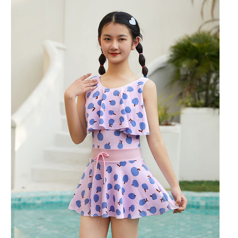夏の水遊びにぴったりなキッズ向け花柄水着ワンピースです。