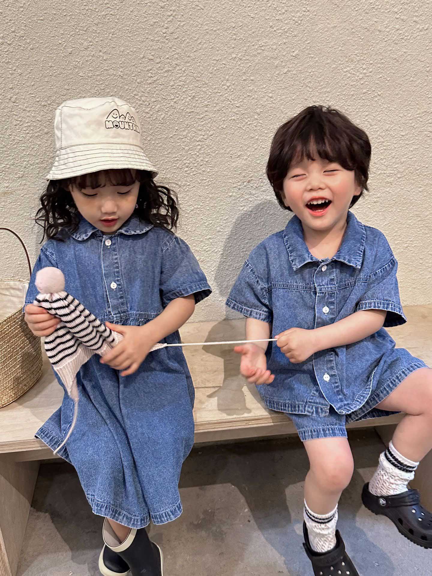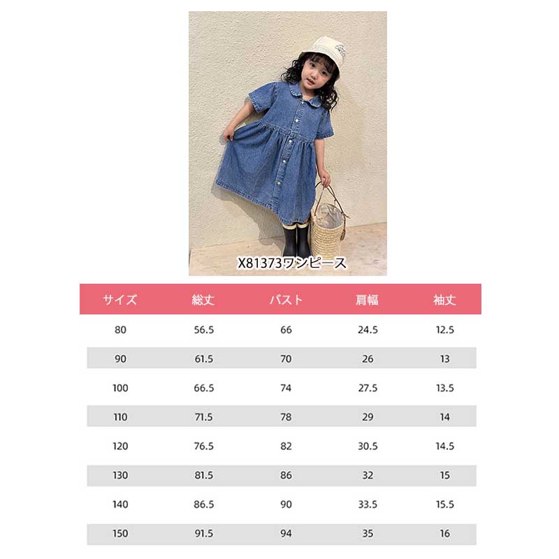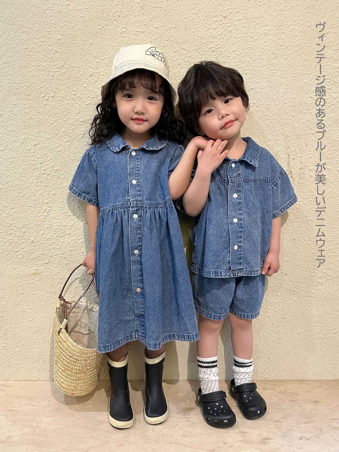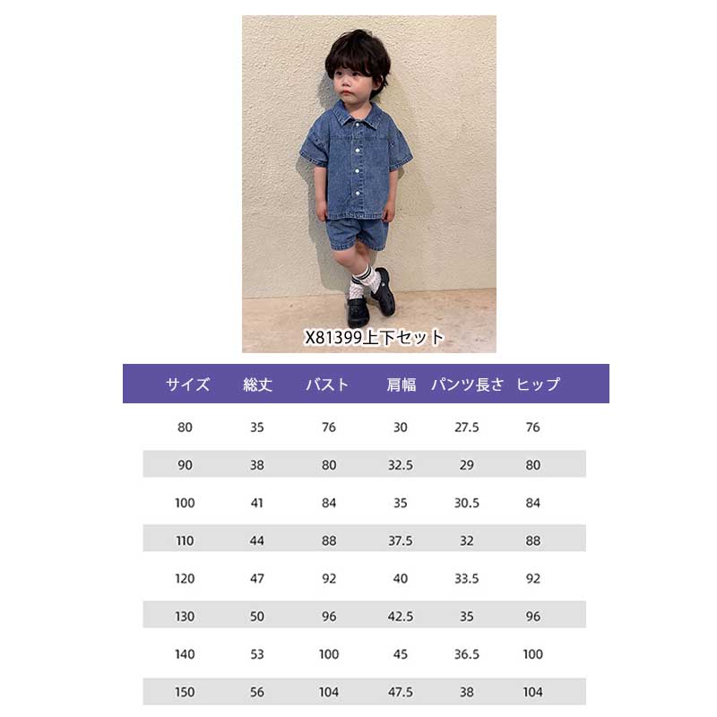 ※男の子の商品は上下セット商品です。八枚目の実物画像をご確認ください。 ■コメント ヴィンテージ感のあるブルーが美しいデニムウェアです。 《X81399上下セット≫ ・ゆったりの作りで窮屈感がなく動きやすいです。 ・上下別々に着られて色んなスタイルを楽しめます。 《X81373ワンピース≫ ・ボタンを閉じてワンピースとしても、外してアウターや羽織としても着られる2way。 ・ウエストラインが高い位置になるのでスカートがふんわりと広がりやすく可愛い雰囲気。 ・ゆったりな作りで動きやすい。 生産時期により、色・デザインが多少が異なる場合がございます。あらかじめ御了承下さい。 ■サイズ(単位:約cm) 画像に記載90cm(OK)100cm(OK)110cm(OK)140(OK)80(OK)150(OK) ■カラー 画像の色 ■素材 綿70% ポリエステル30% ■伸縮性 なし ■裏地 なし ■生地の厚さ 普通 ■透け感 なし