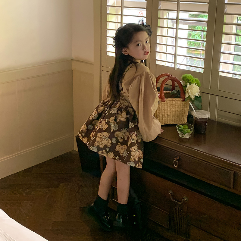 可愛いくま柄が印象的なキッズ向けロングワンピースセットです。