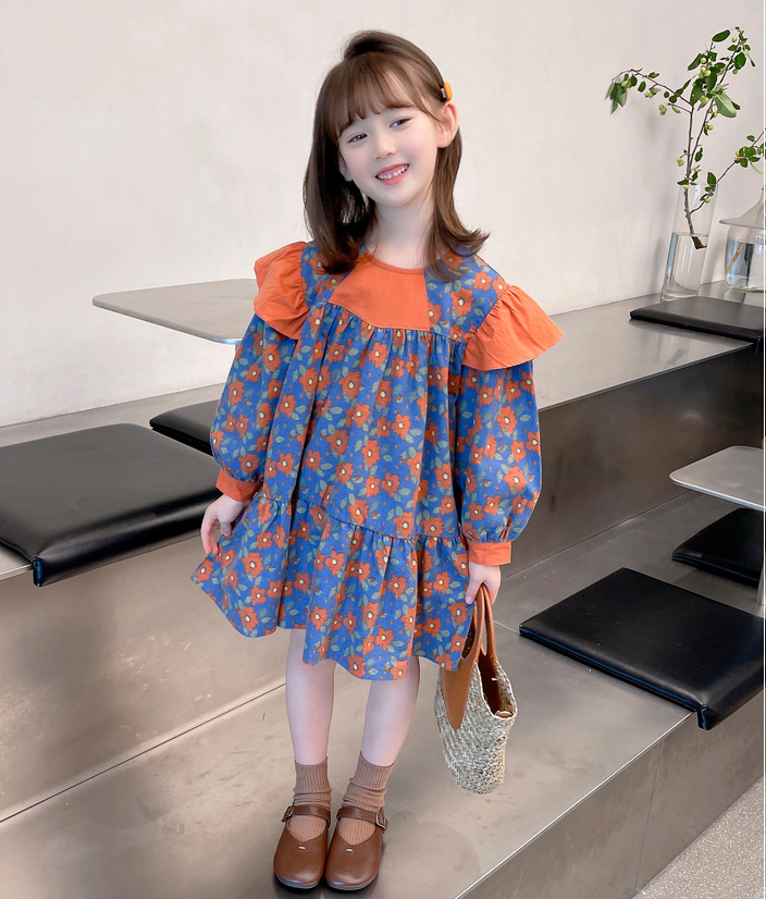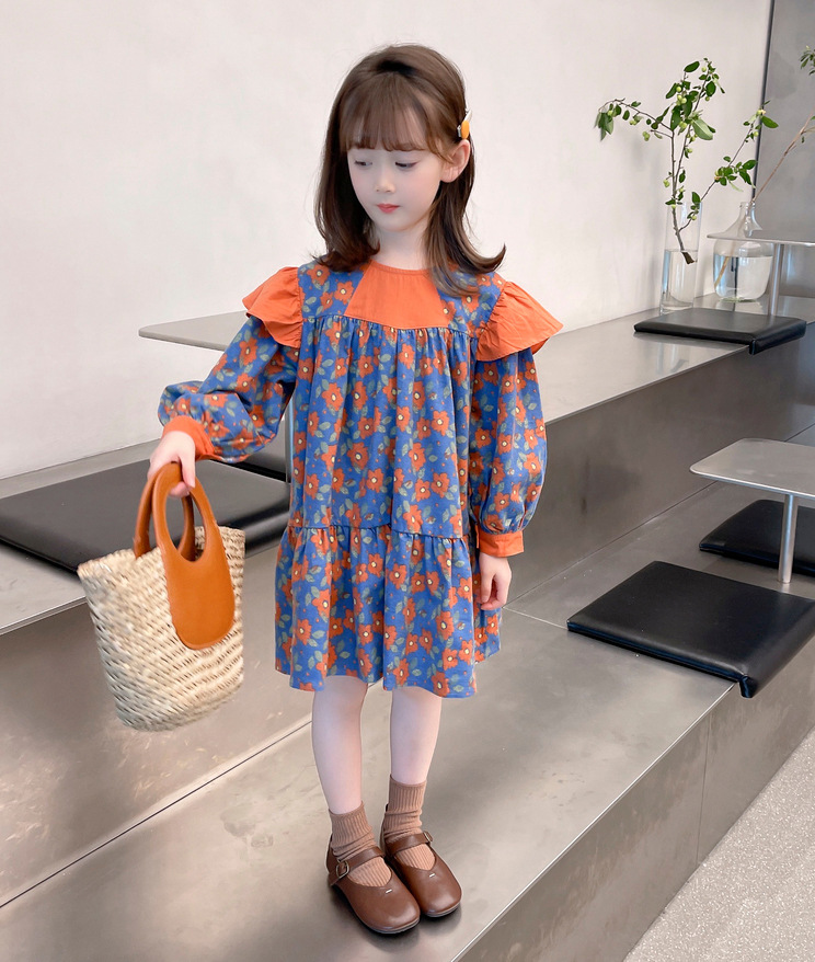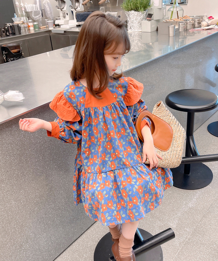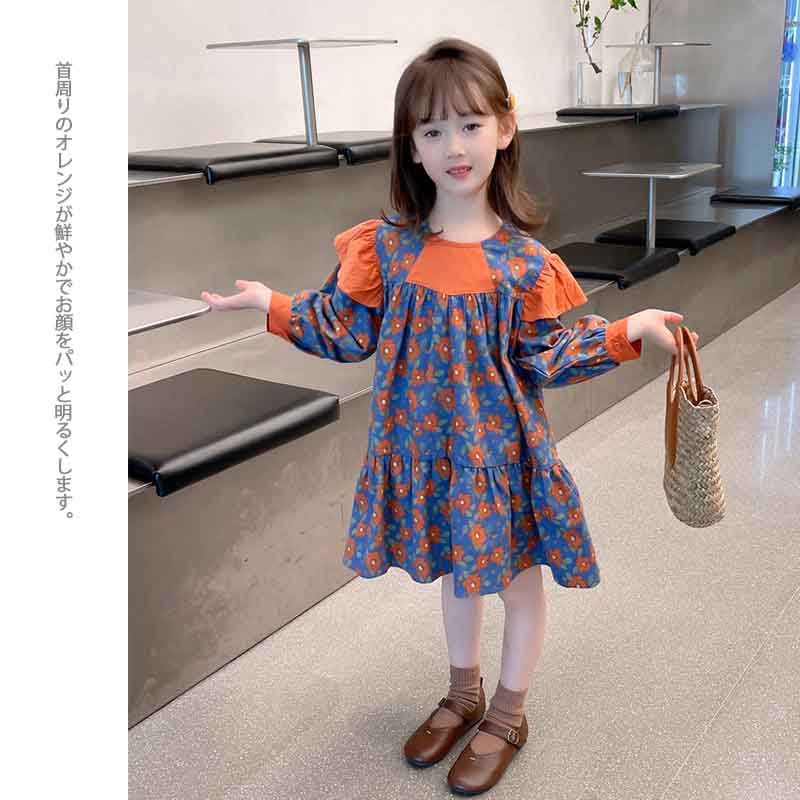可愛らしい花柄が印象的なキッズ向けロングワンピースです。