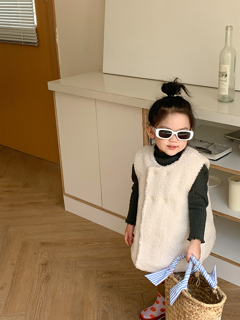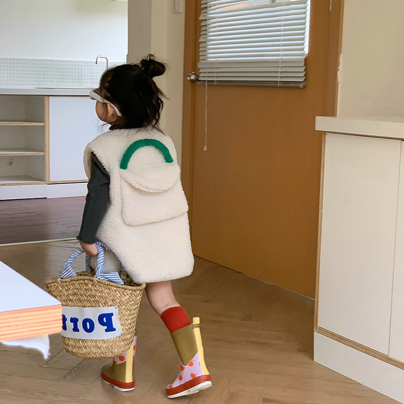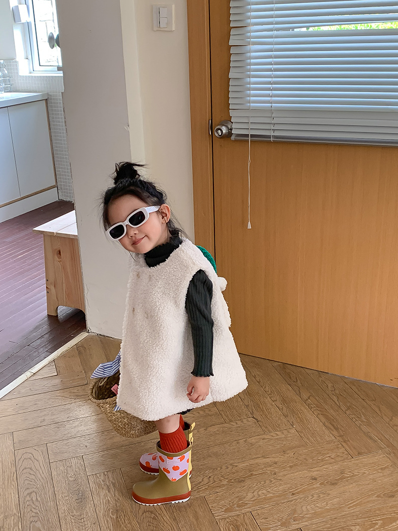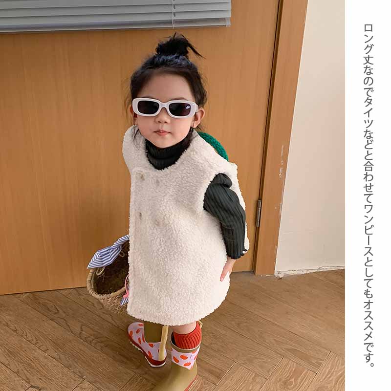 柔らかなボア素材で作られたキッズ用のもこもこベストです。