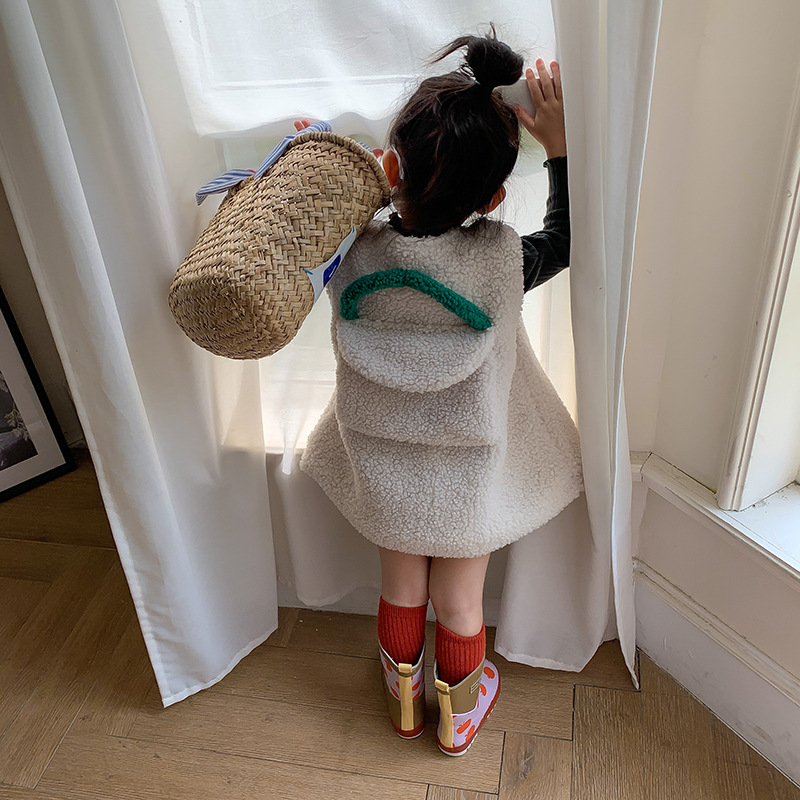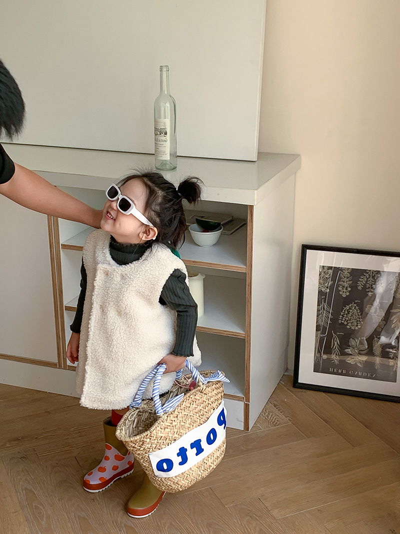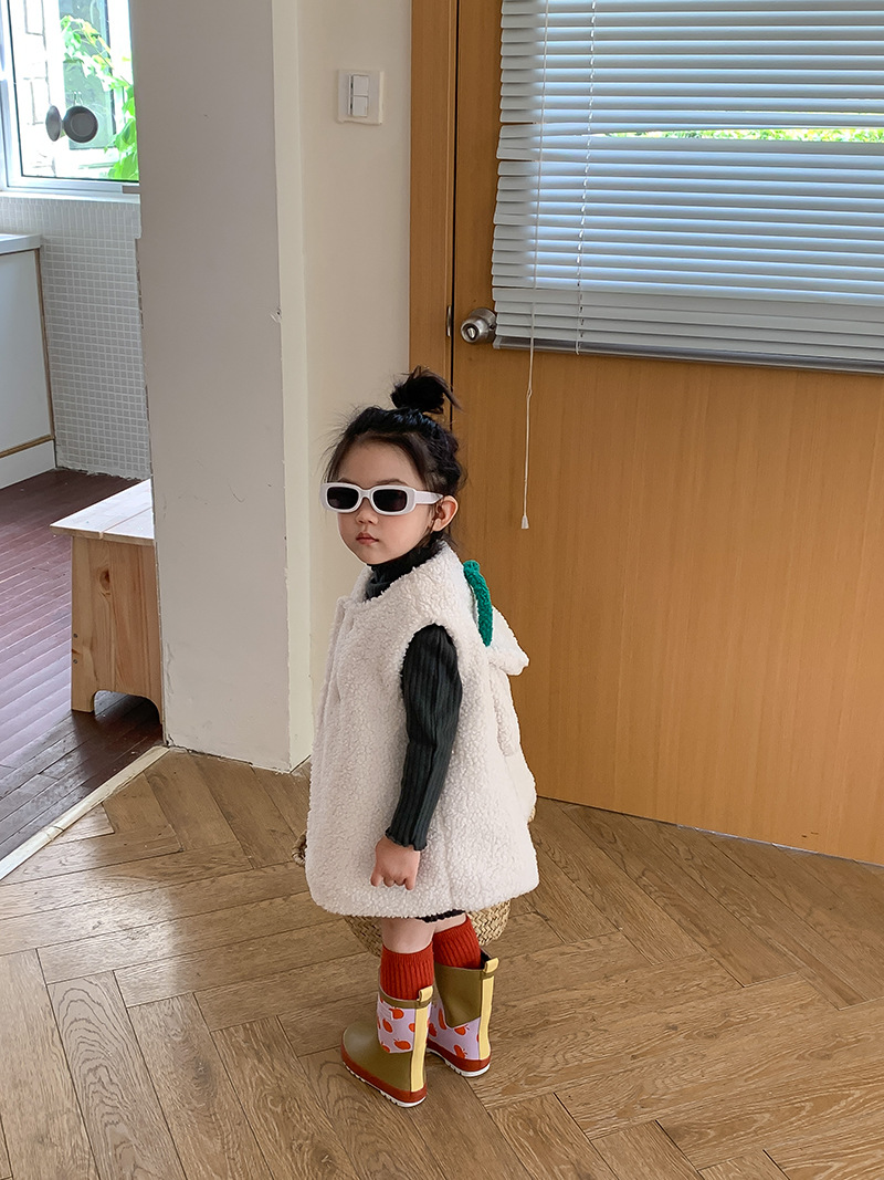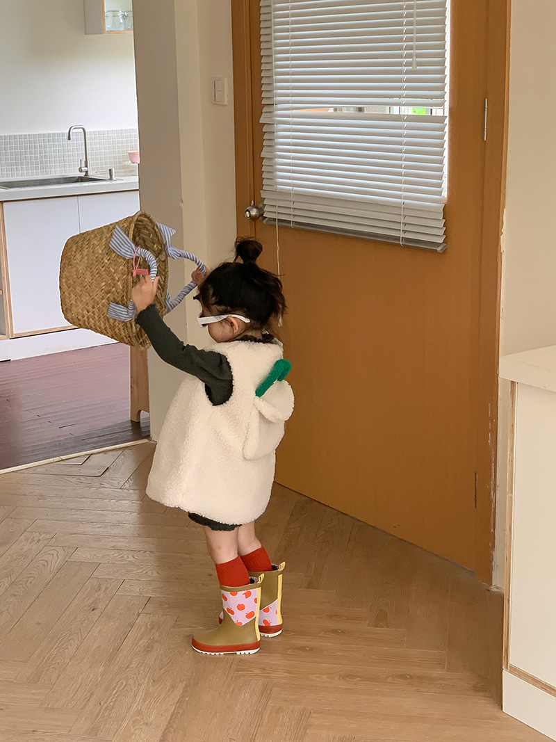 柔らかなボア素材で作られたキッズ用のもこもこベストです。