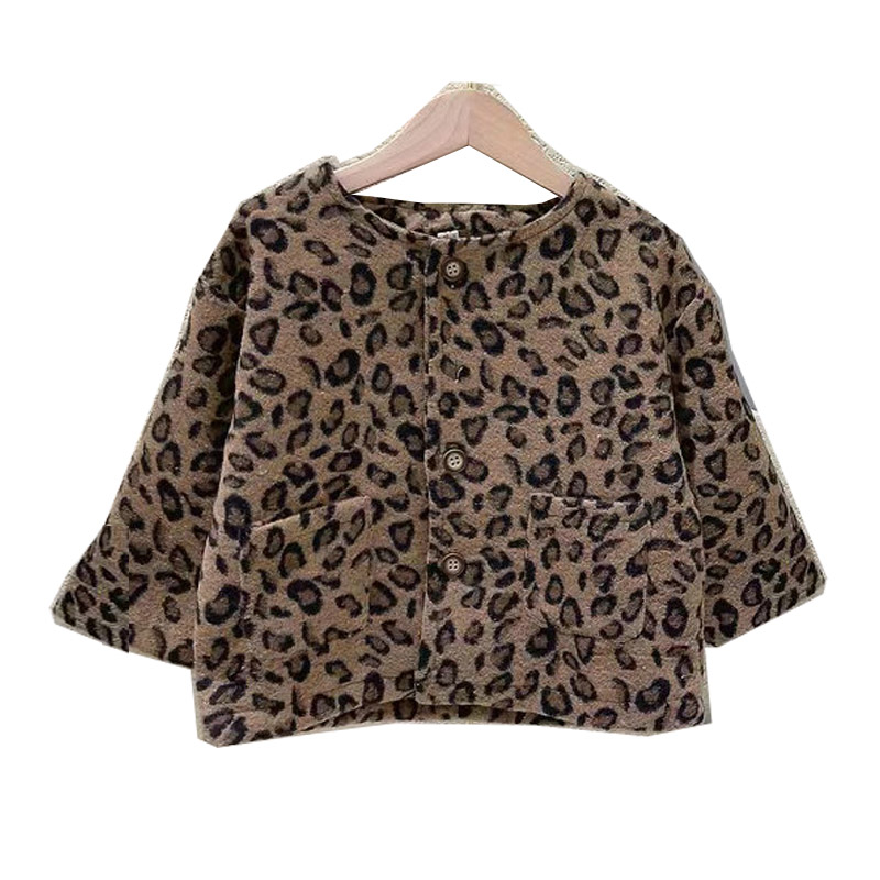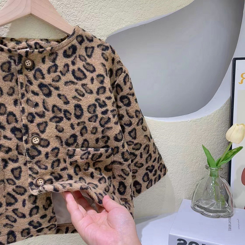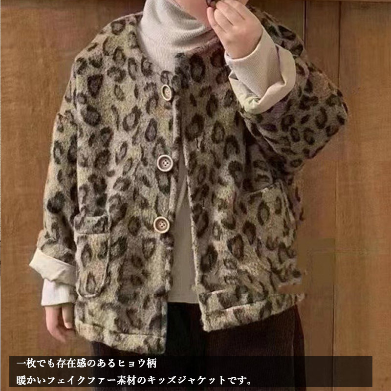 おしゃれなキッズ向け豹柄ボアジャケットです。