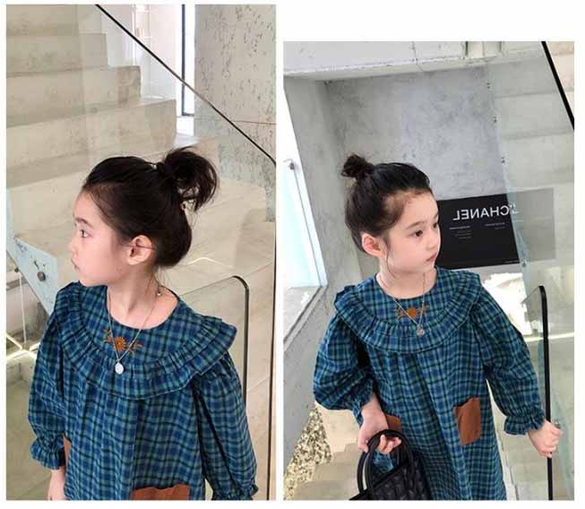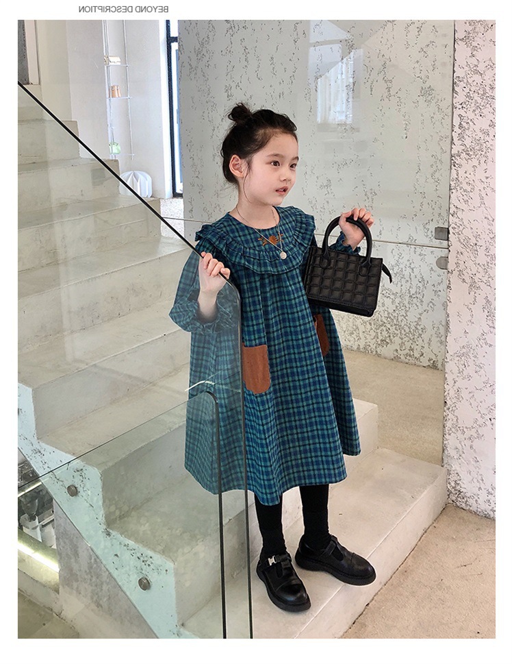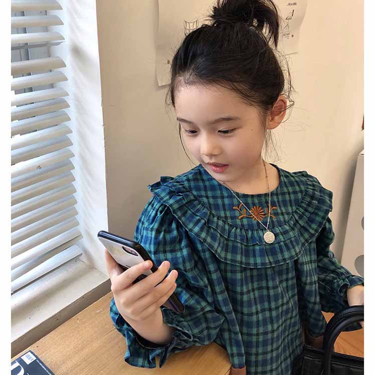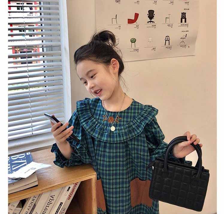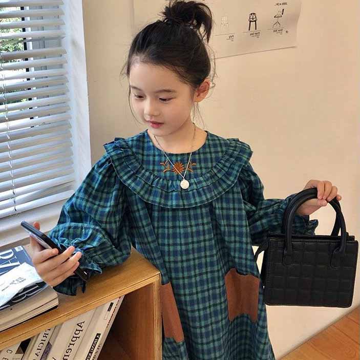 キッズ向けの可愛いチェック柄ロングワンピース。