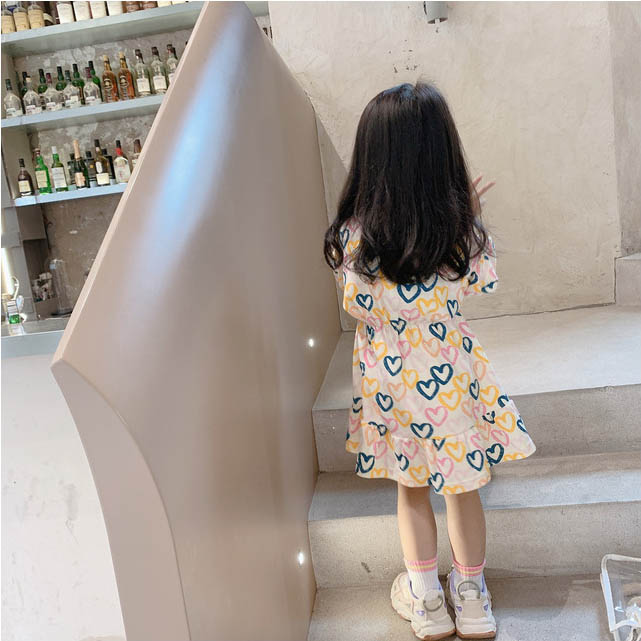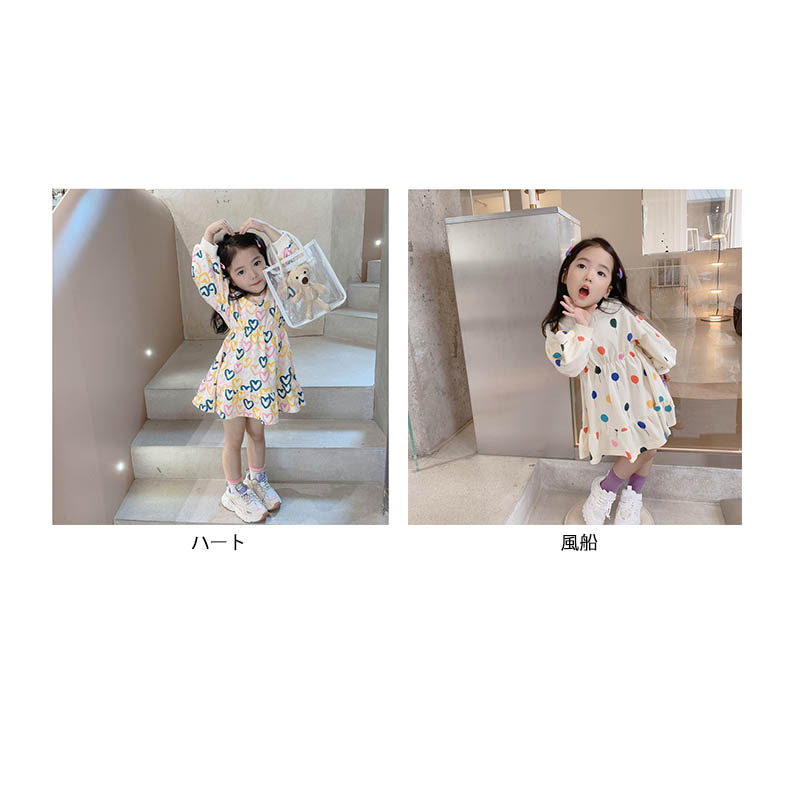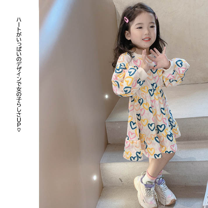 可愛いハート柄が散りばめられたキッズ向けロングワンピースです。