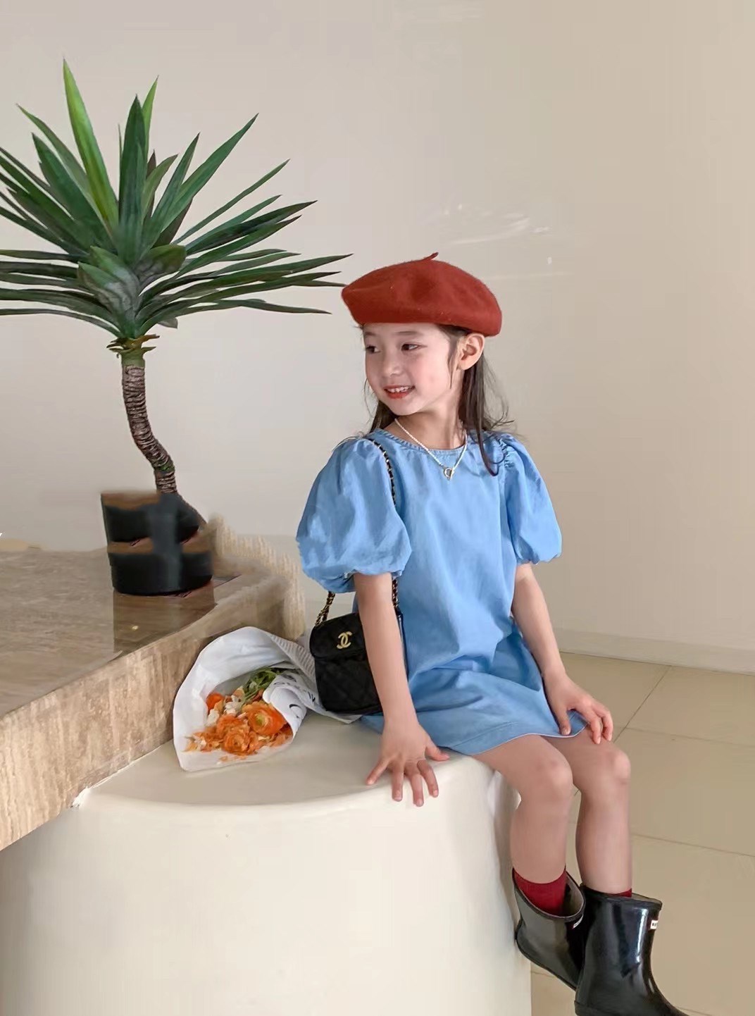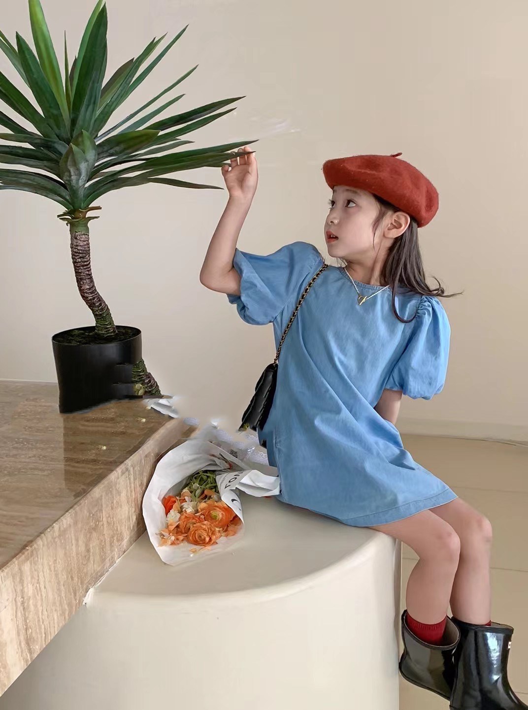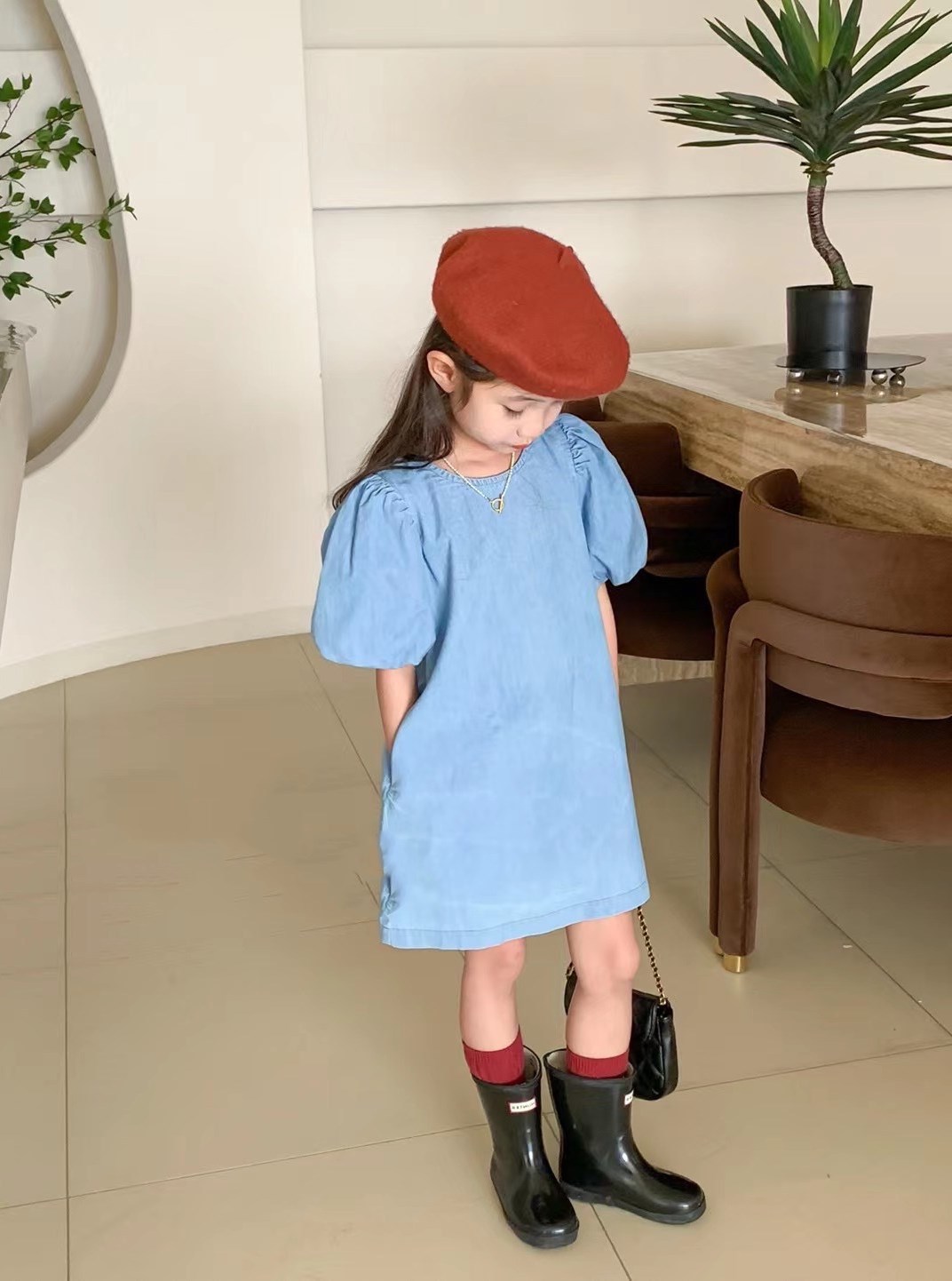 女の子らしいバルーン袖が特徴的で、爽やかなブルーカラーが春夏にぴったり。