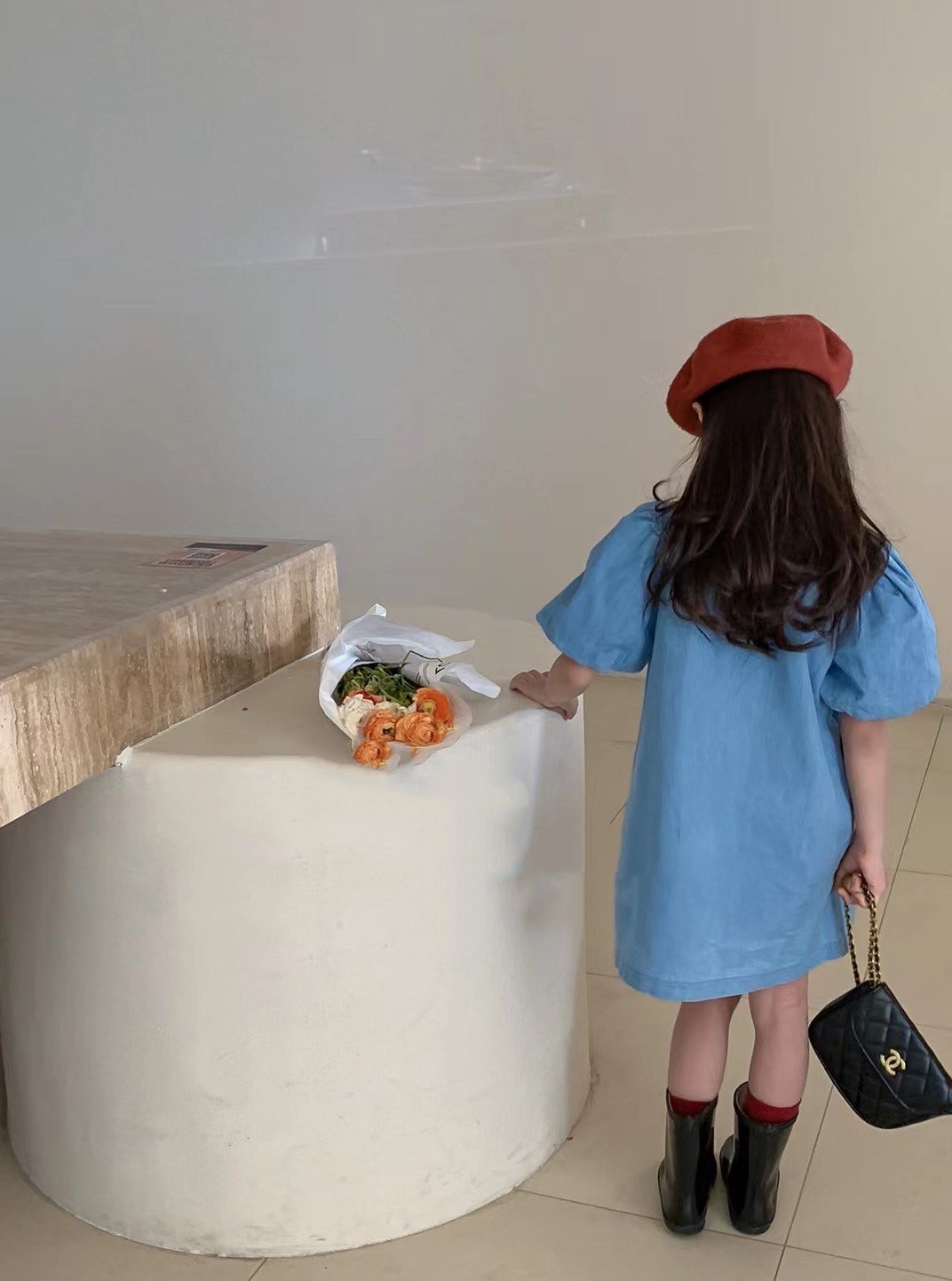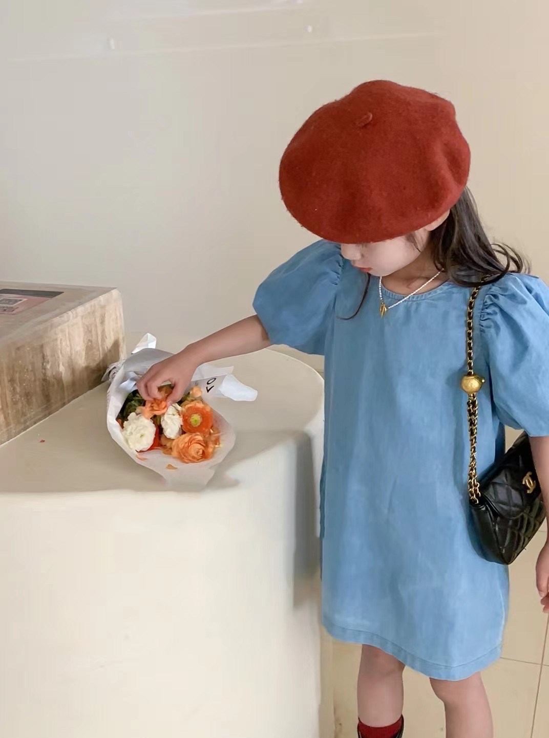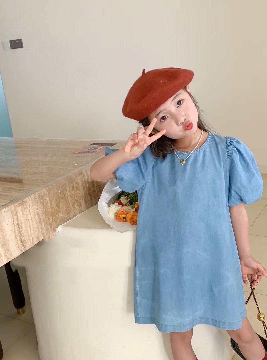 女の子らしいバルーン袖が特徴的で、爽やかなブルーカラーが春夏にぴったり。