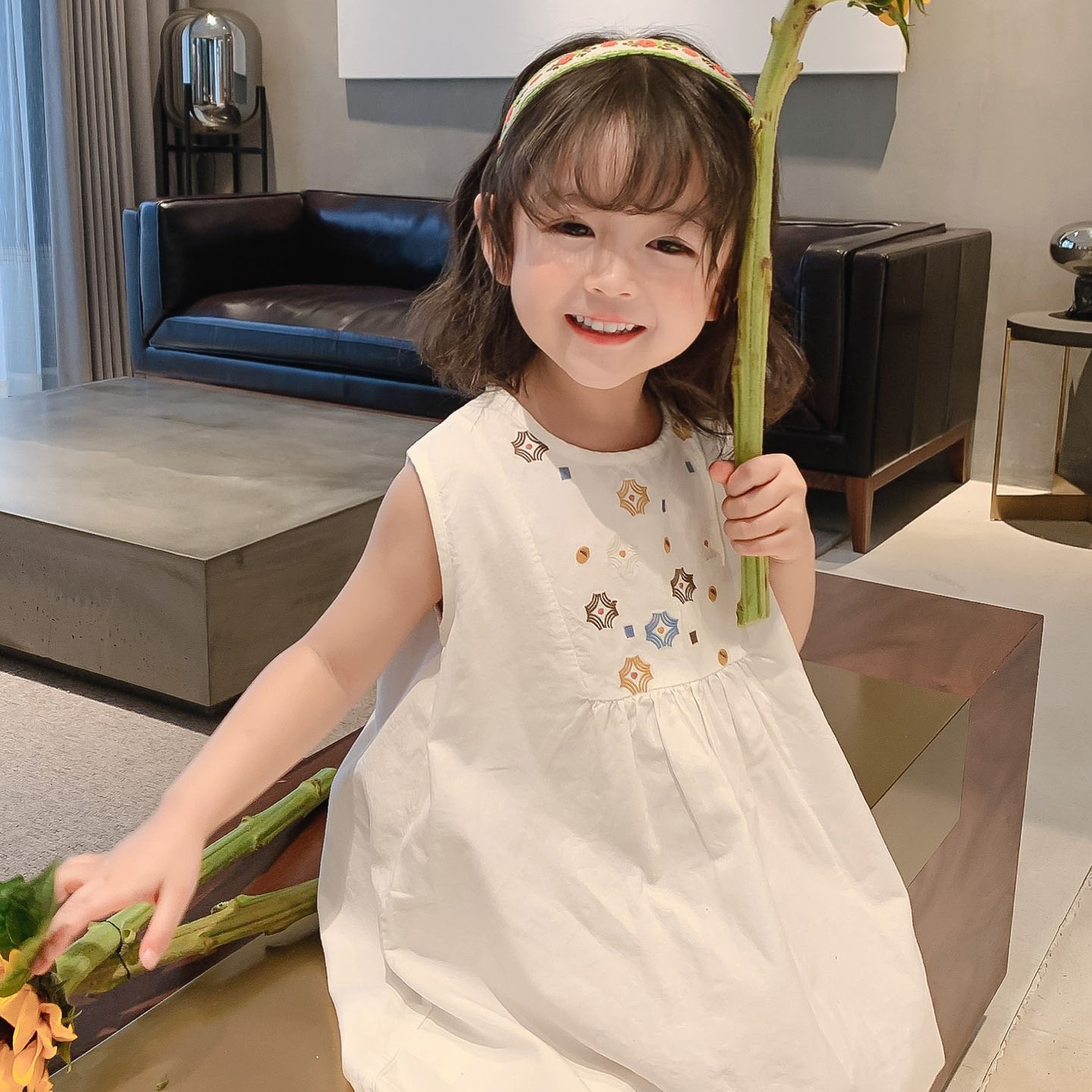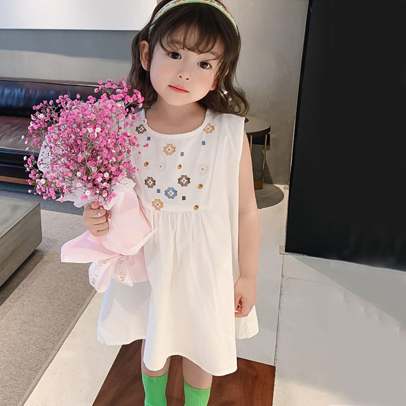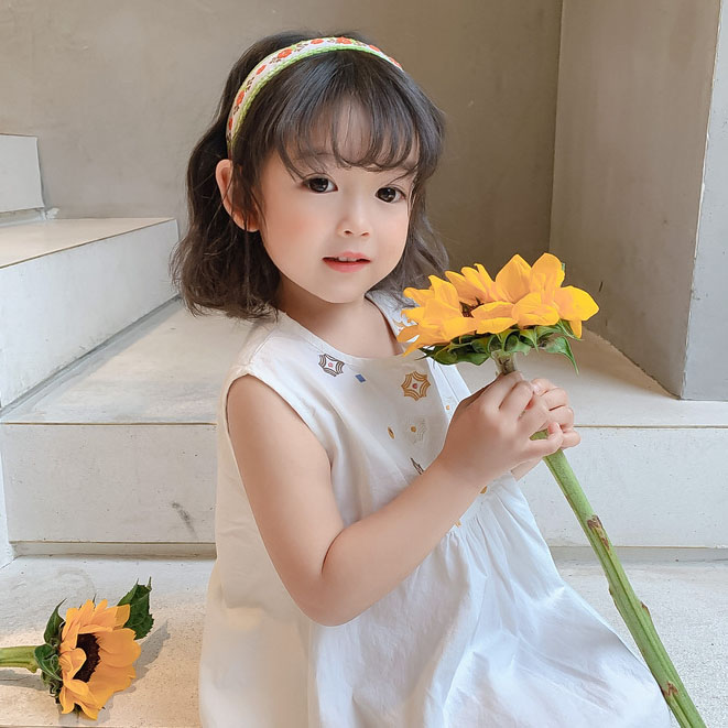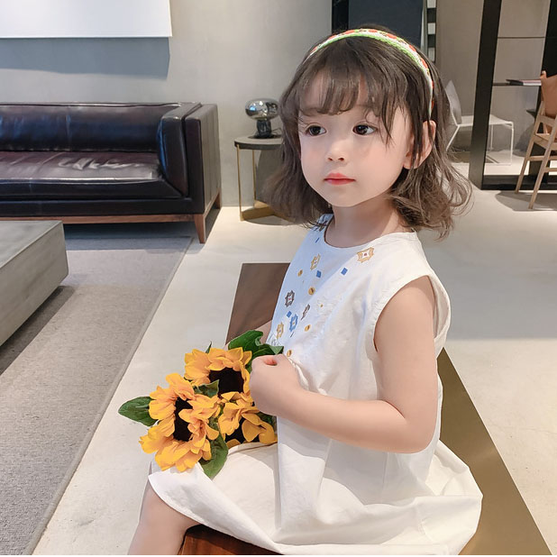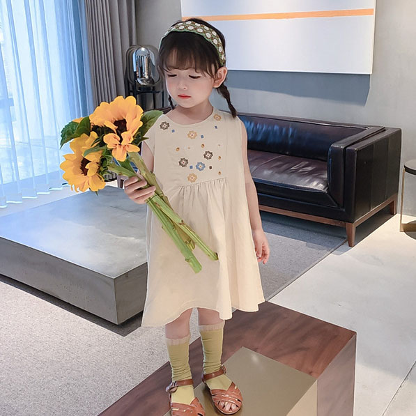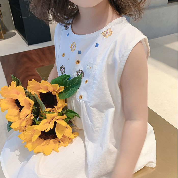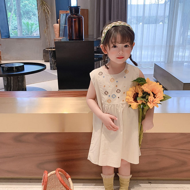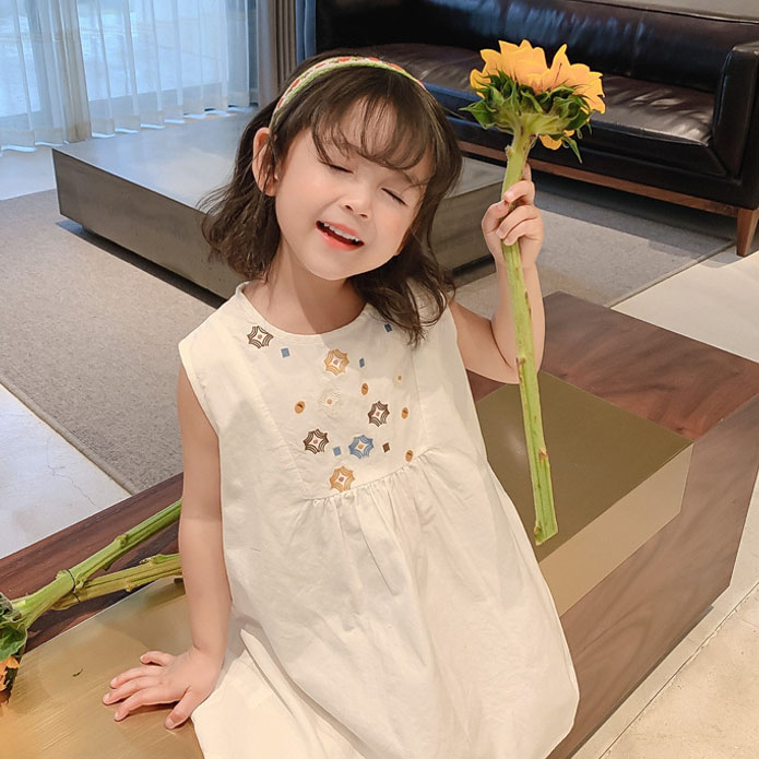 可愛い刺繍デザインが魅力的な韓国風キッズロングワンピース。