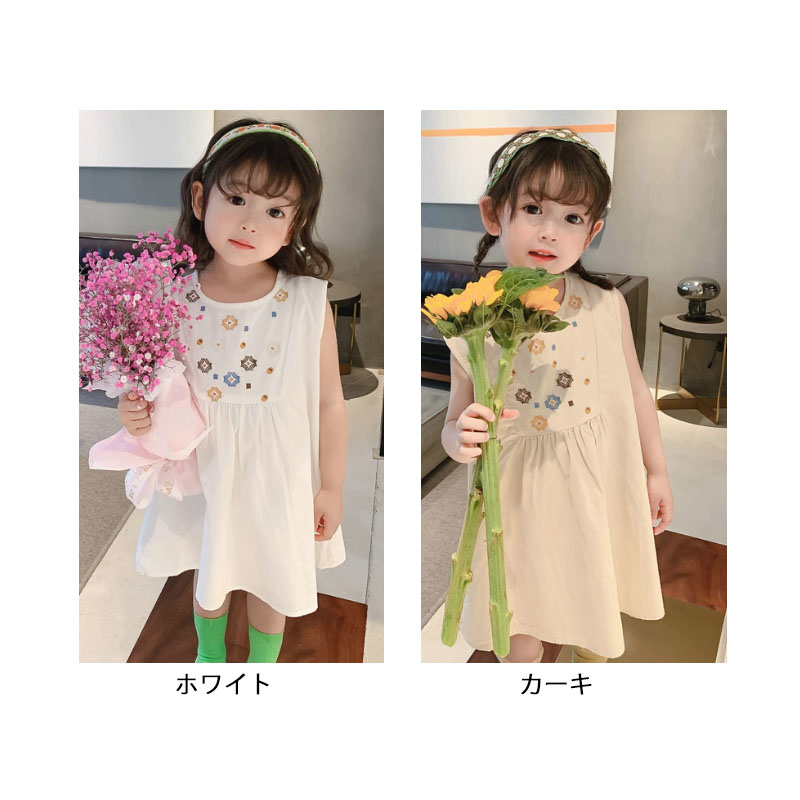 ■コメント ・シックの落ち着いた清楚系シンプルデザイン。 ・胸元の模様が控えめながらかわいいアクセントに◎ ・肌ざわりの良い生地。 ・動くたびスカートがふんわり広がります。 ■サイズ(単位:約cm) 90cm 着丈約52 バスト約68 100cm 着丈約56 バスト約72 110cm 着丈約60 バスト約74 120cm 着丈約64 バスト約78 130cm 着丈約68 バスト約81 ■カラー 画像に記載 ■伸縮性 あり ■裏地 なし ■生地の厚さ 普通 ■透け感 なし ■素材 綿85%、ポリエステル15%