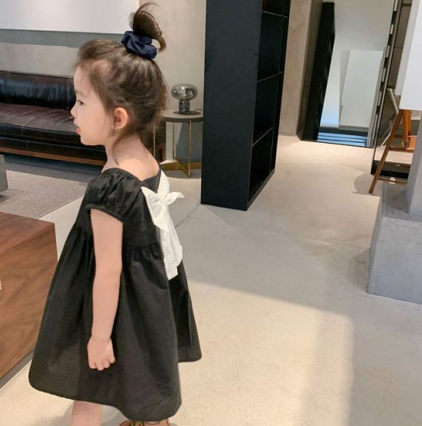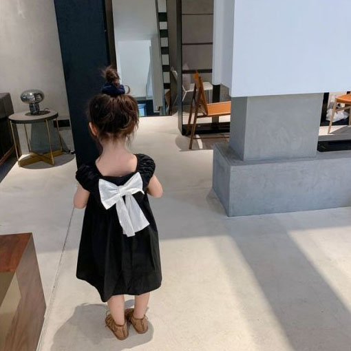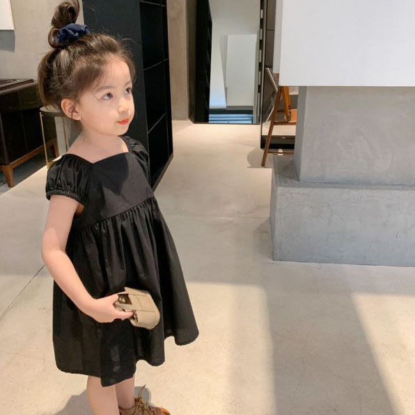 上品な黒色が印象的な韓国風キッズワンピースです。