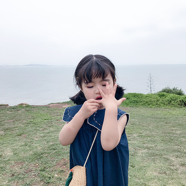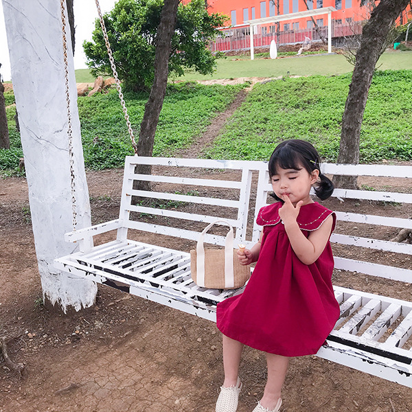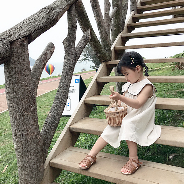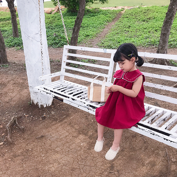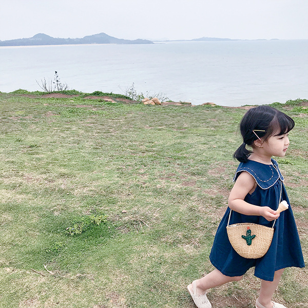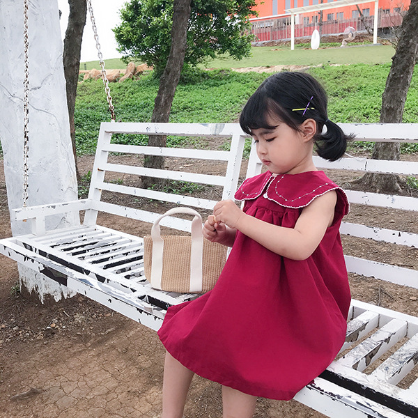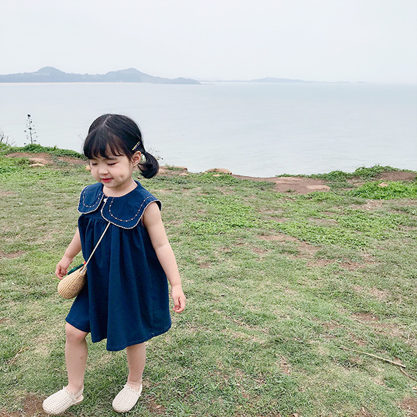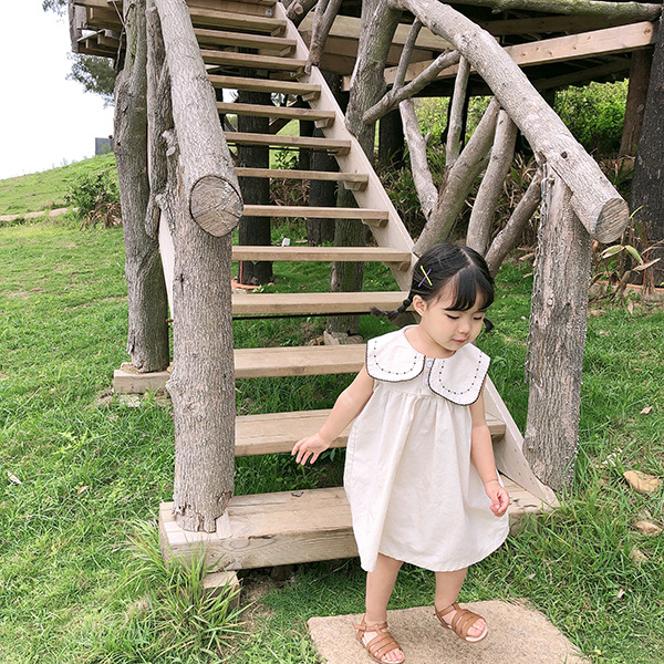 上品な刺繍が施されたキッズ向けの韓国風ワンピース。