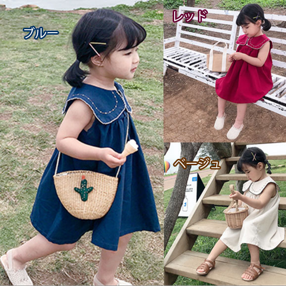 ■コメント ・厳選された肌触りの良い生地を使用♪ ・大きな刺繍襟がポイントで一枚で華やか ・カーディガンを羽織れば夏場以外にも春秋シーズンも使えます。 ・レギンスやデニム、オーバーオール等と合わせても可愛いです。 ■サイズ(単位:約cm) 7)95-100cm 着丈約51 9) 100-105cm 着丈約55(OK) 11)105-115cm 着丈約57 13) 115-120cm 着丈約60 15) 120-130cm 着丈約62 ■カラー 画像に記載 ■伸縮性 あり ■裏地 あり ■生地の厚さ 普通 ■透け感 なし ■素材 綿100% ■包装状況 OPP袋
