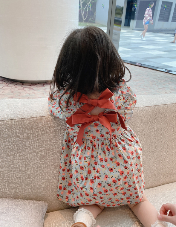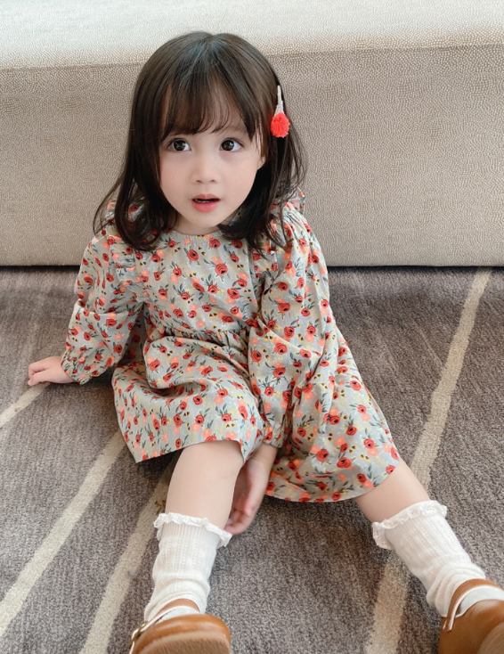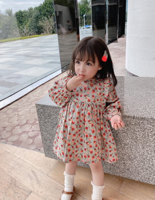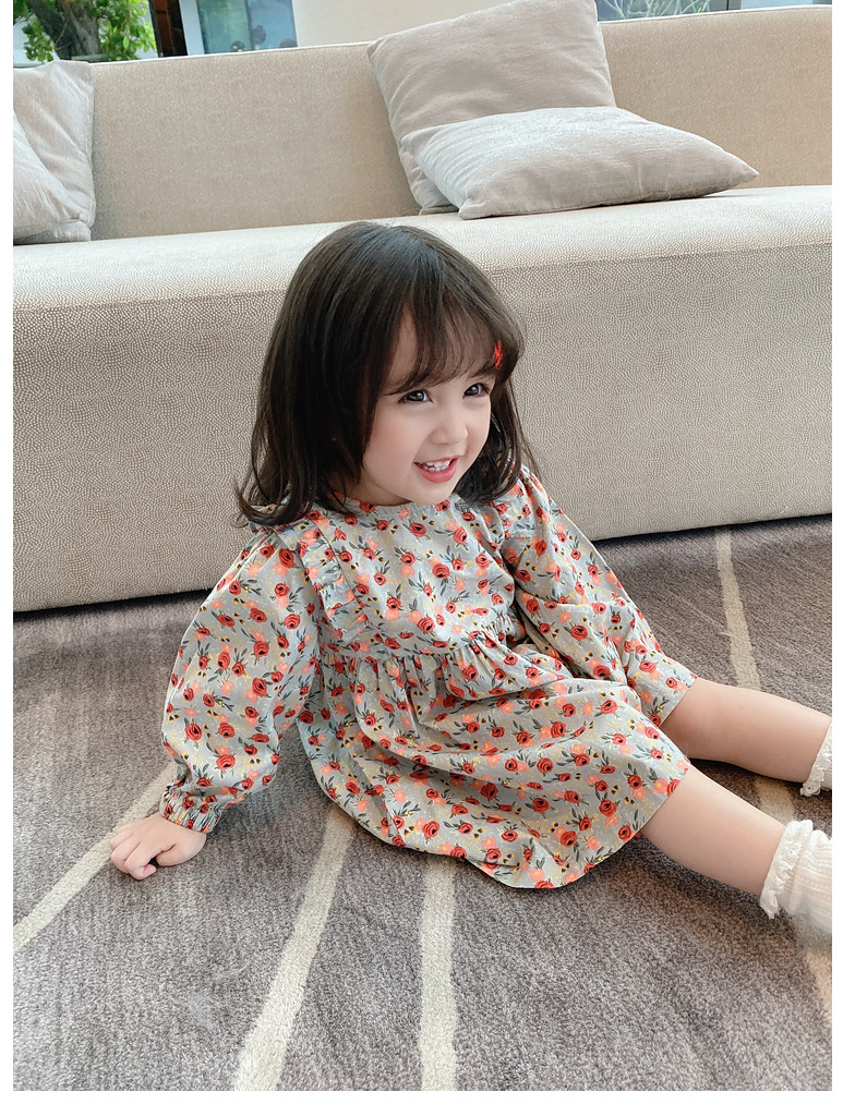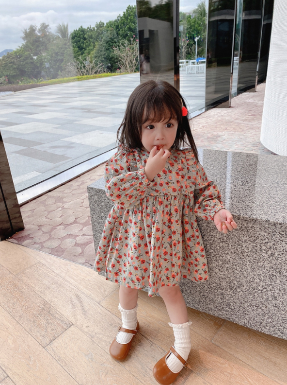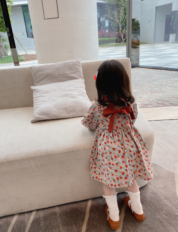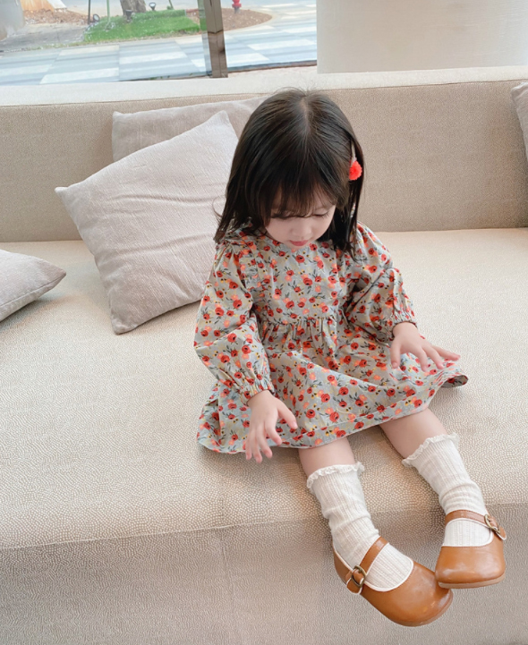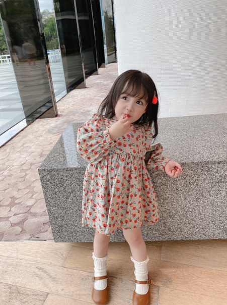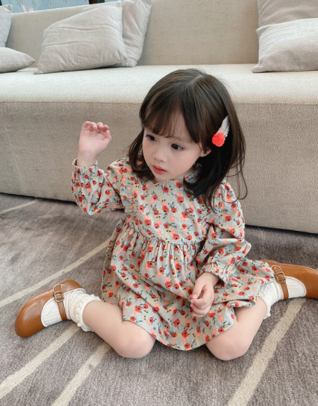 秋冬にぴったりのキッズ女の子向け花柄ロングワンピースです。