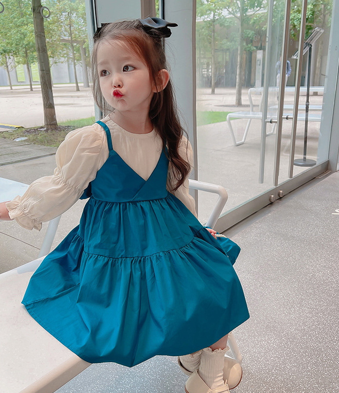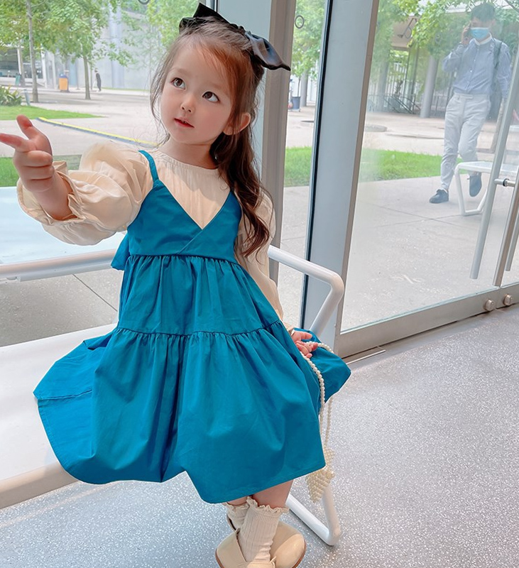 韓国風デザインが可愛いキッズ用ロングワンピースです。