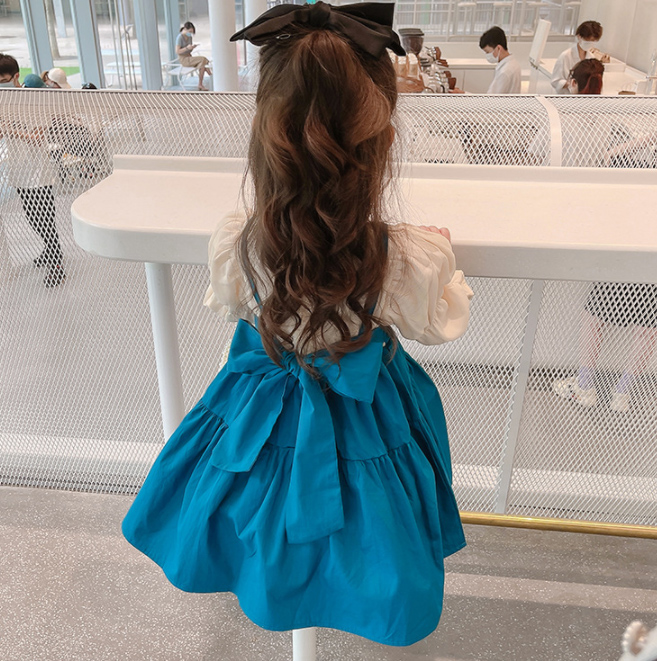 ブルーとホワイトの配色が爽やかで、女の子らしい優雅なシルエットが魅力的。