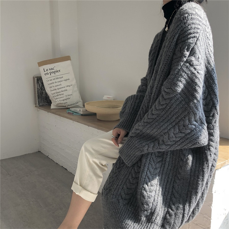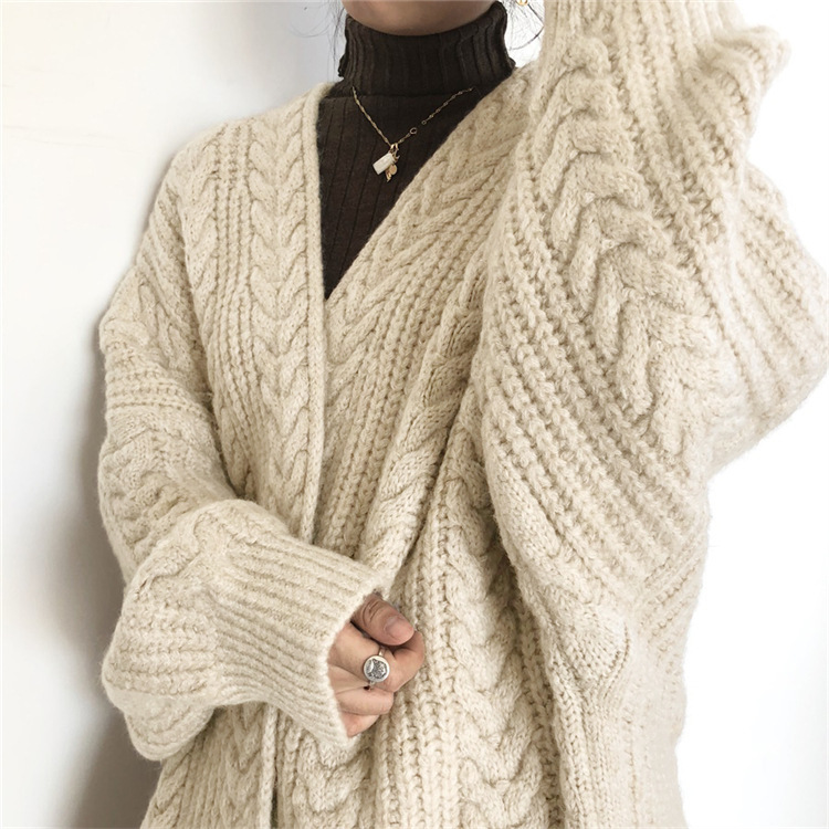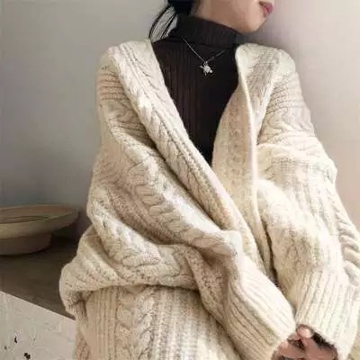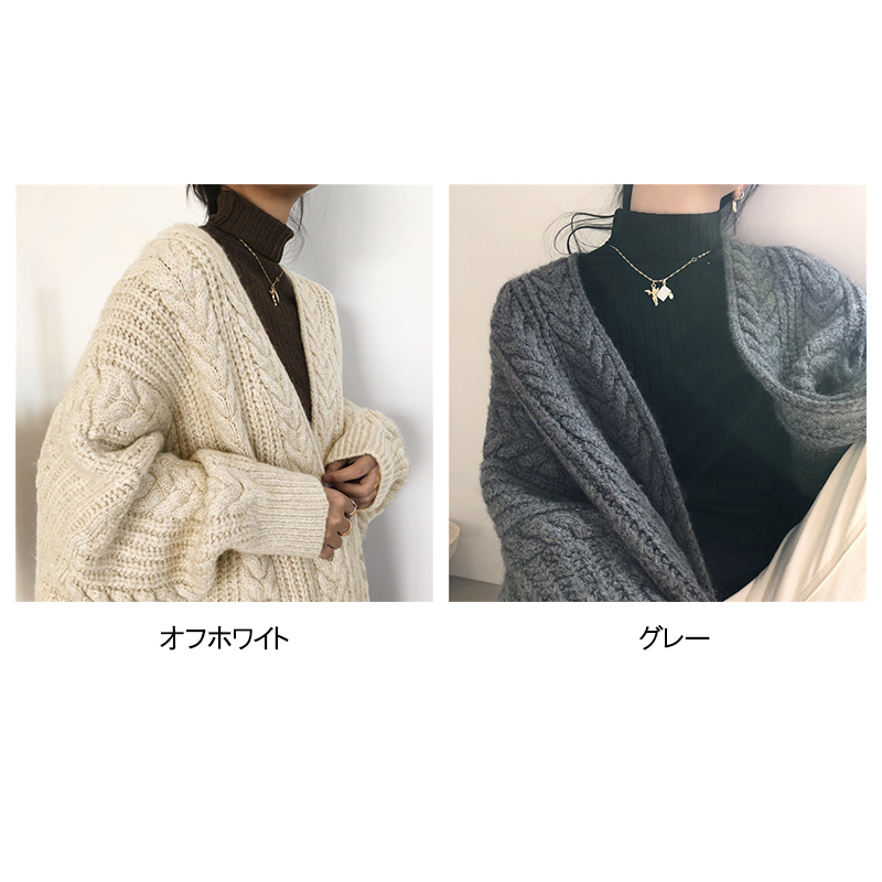 立体的なケーブル編みが美しいニット羽織りです。