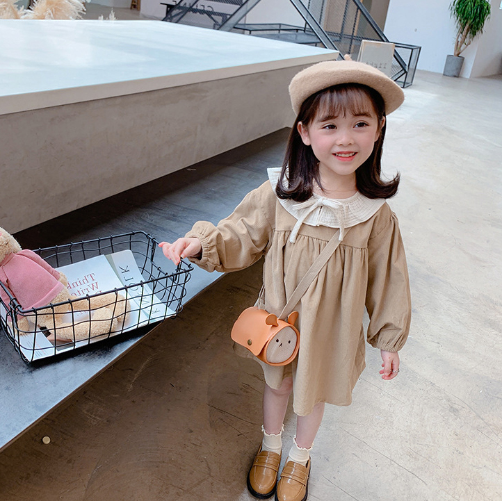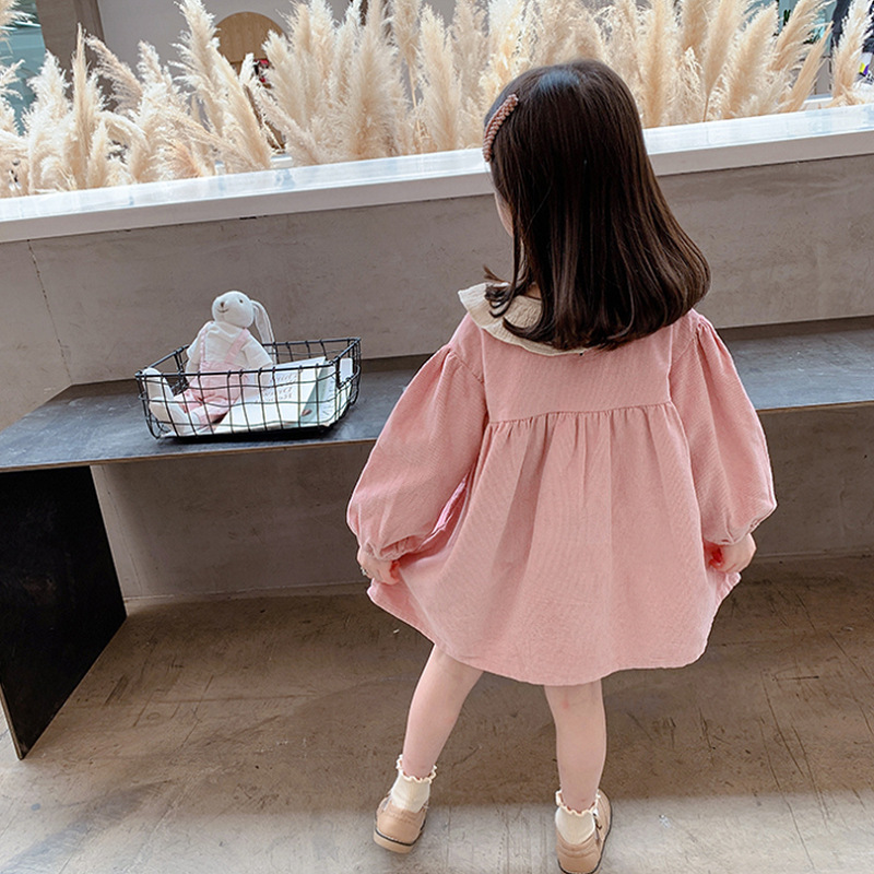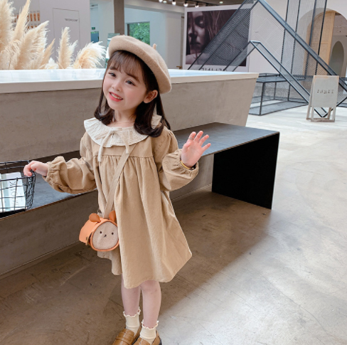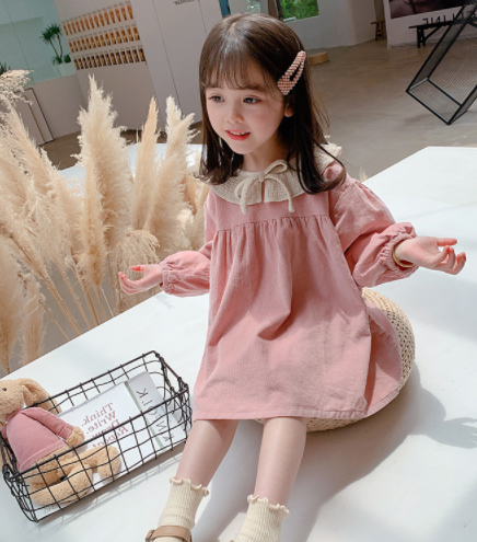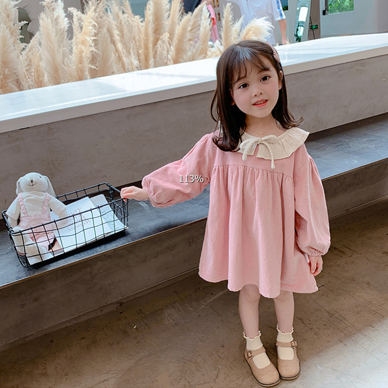 白いレース襟がアクセントの韓国風デザインで、女の子らしい可愛さを引き立てます。