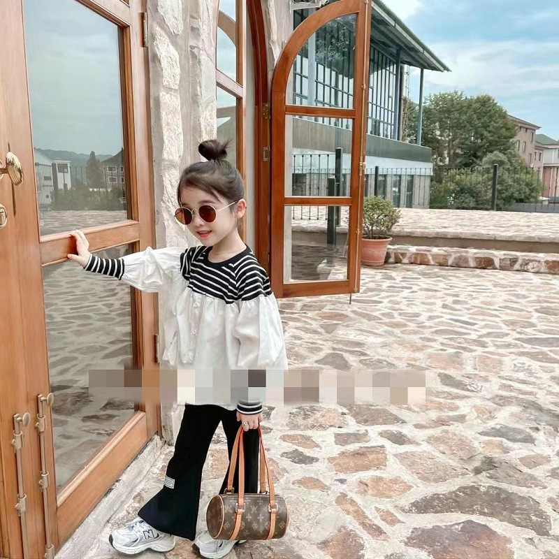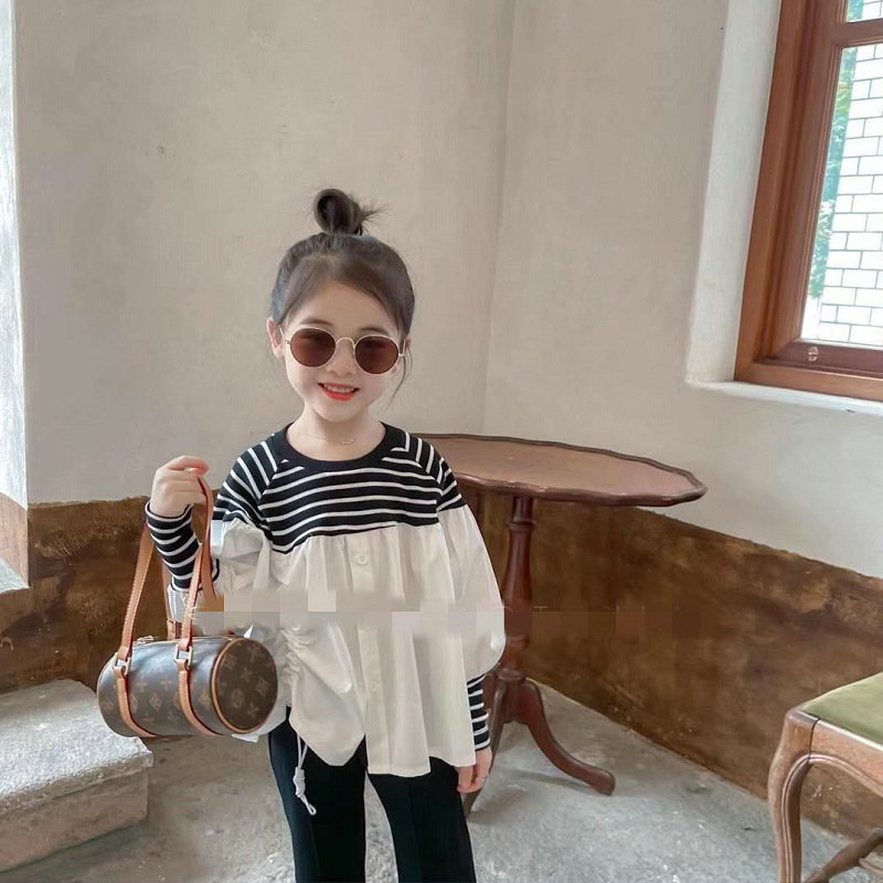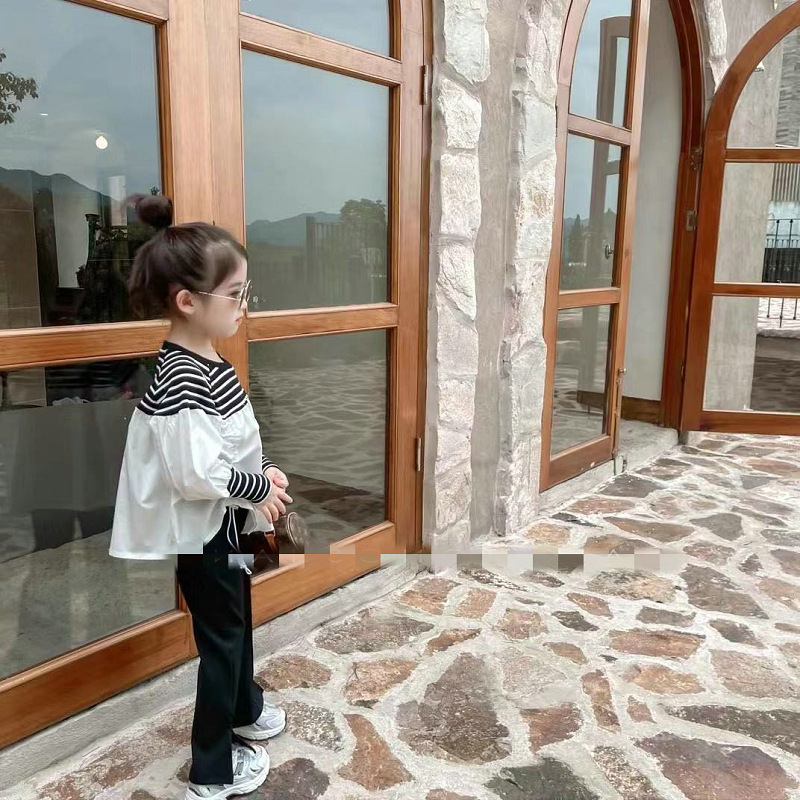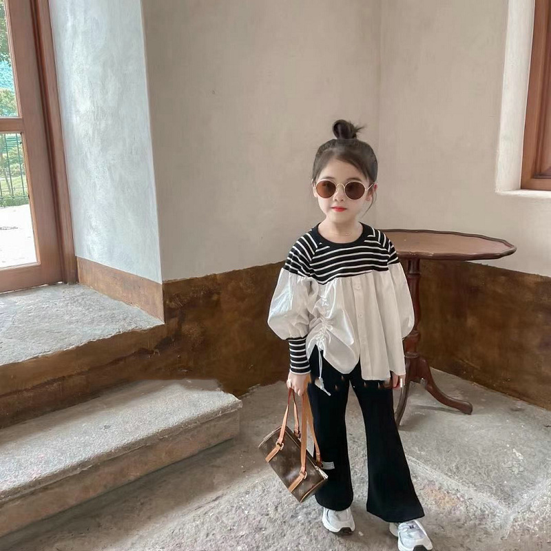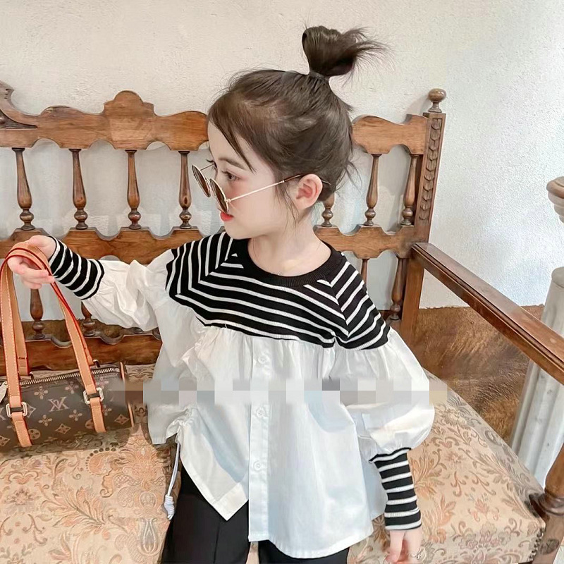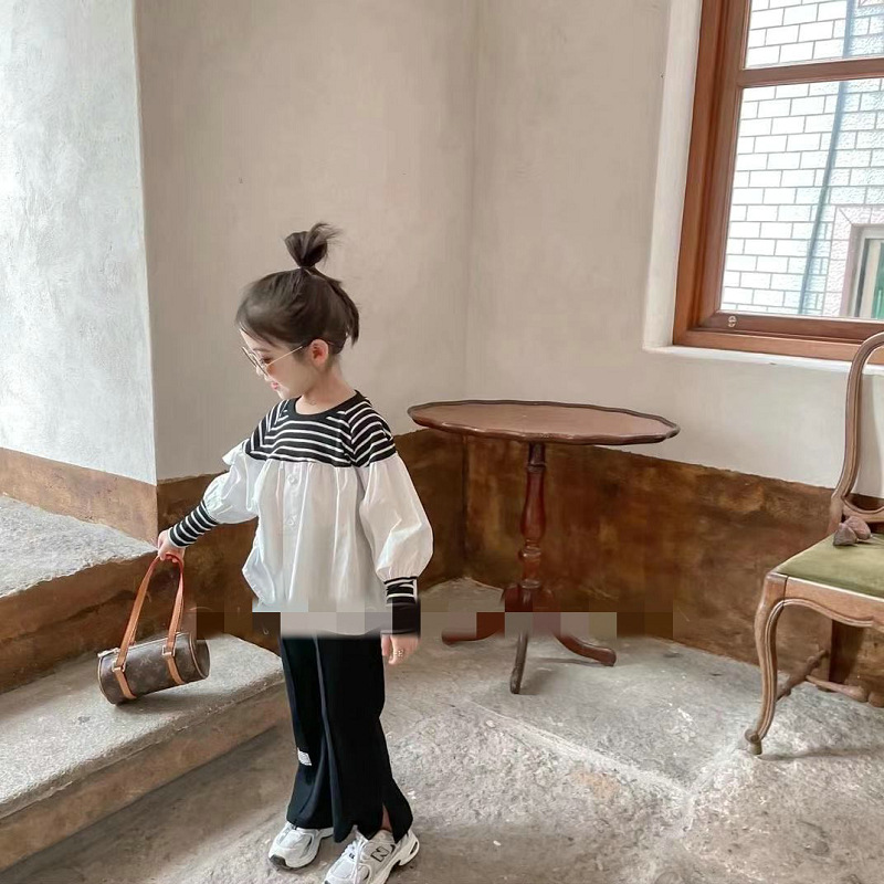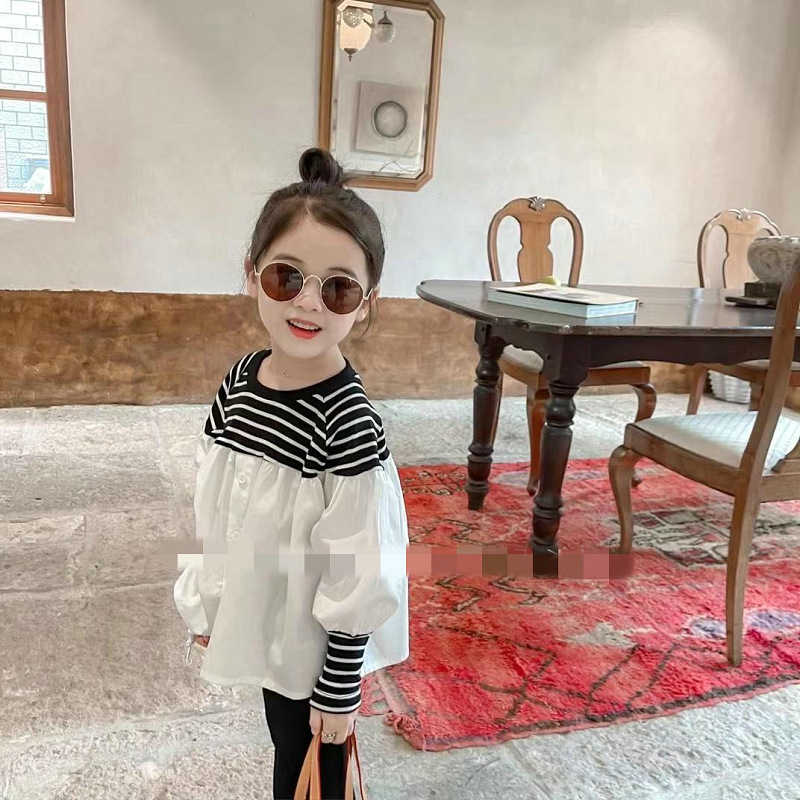 可愛いキッズ女の子におすすめの韓国風ボーダー切替ブラウスです。