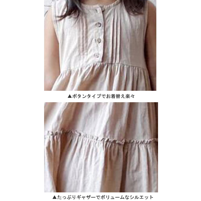 ※キッズ服のサイズはデザインによって、サイズが異なる恐れがあります。 再度、サイズの詳細をご確認ください。 ■コメント ◇トレンドのティアードデザインで、存在感◎お姫様気分になる一着です。 ◇ボタンタイプで、お着替えも楽々、裾に向かってギャザーたっぷりのデザインでボリュームなシルエットです。 ◇夏場は一枚そのまま、春秋シーズンはブラウスを重ね着したり、カーディガンを羽織っても可愛いです。 ■サイズ(単位:約cm) 80cm 着丈:約55cm 身幅:約28cm 90cm 着丈:約60cm 身幅:約29cm 100cm 着丈:約65cm 身幅:約30cm 110cm 着丈:約70cm 身幅:約31cm 120cm 着丈:約75cm 身幅:約32m 130cm 着丈:約80cm 身幅:約33cm ■カラー 画像に記載 ■伸縮性 なし ■裏地 なし ■生地の厚さ 普通 ■透け感 ややあり ■素材 綿85%、麻15%