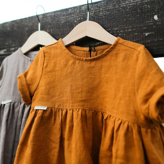 可愛らしいキッズ向けの綿麻素材ロングワンピースです。