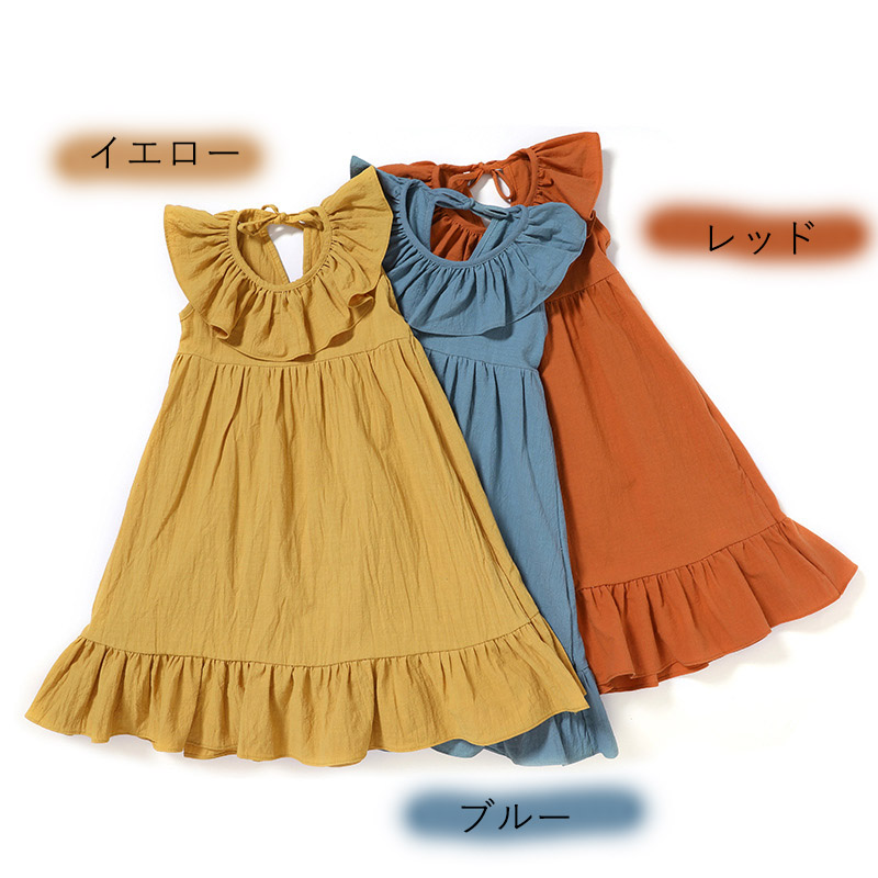 ※キッズ服のサイズはデザインによって、サイズが異なる恐れがあります。 再度、サイズの詳細をご確認ください。 ※写真はイメージのため実際のお色と多少異なる場合がござい ますが、予めご了承ください。 ■コメント ◇ひよこのような、ひまわりのような可愛い黄色が華やかなノースリーブワンピースです。 ◇トレンドのティアードデザインで、存在感◎お姫様気分になる一着です。 ◇すぐ成長する子供たち、丈が短くなったら、デニムを合わせてチュニックとしてコーデしても可愛いです。 ■サイズ(単位:約cm) ■サイズ(単位:約cm) 平置き採寸のため誤差あり 80cm / 胸囲54cm 総丈56cm 90cm / 胸囲58cm 総丈61cm(OK) 100cm / 胸囲62cm 総丈67cm 110cm / 胸囲66cm 総丈73cm 120cm 胸囲70cm 総丈79cm ■カラー 画像に記載 ■伸縮性 なし ■裏地 なし ■生地の厚さ やや薄い ■透け感 なし ■素材 綿100%