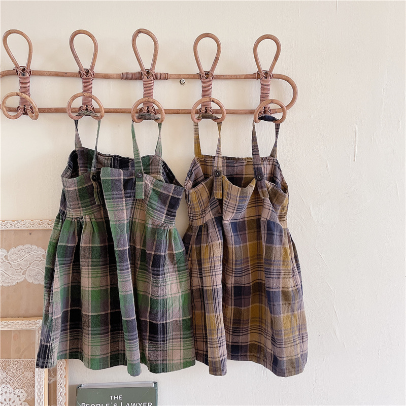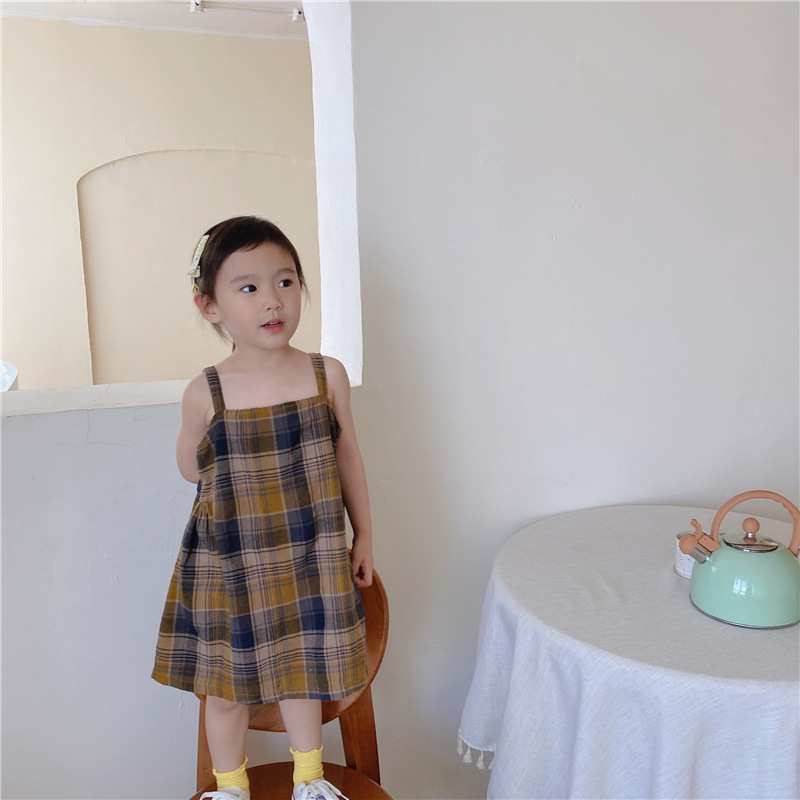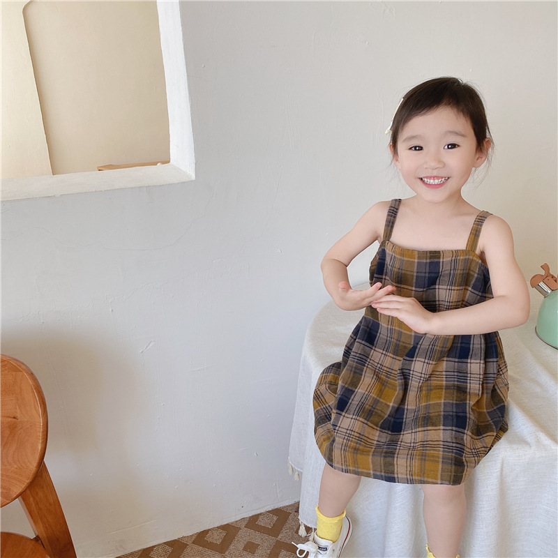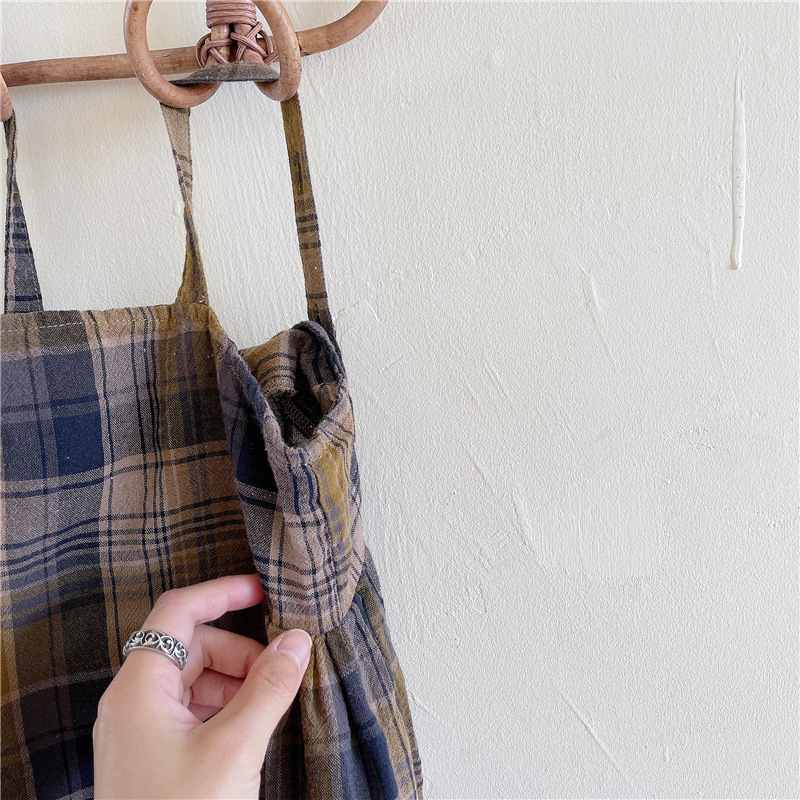 韓国風デザインのおしゃれなキッズ用チェック柄ワンピースです。