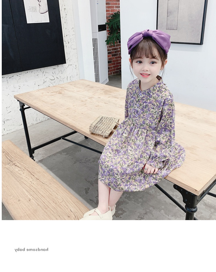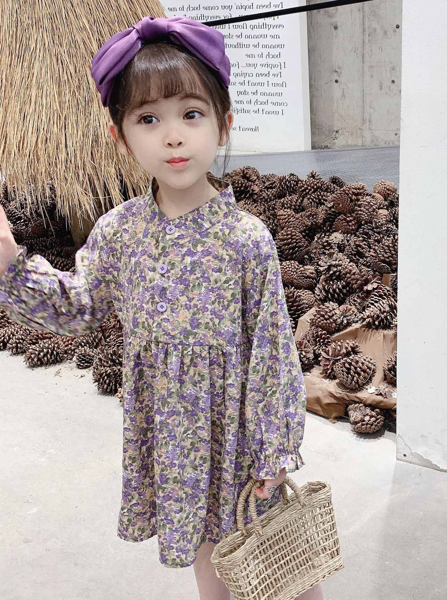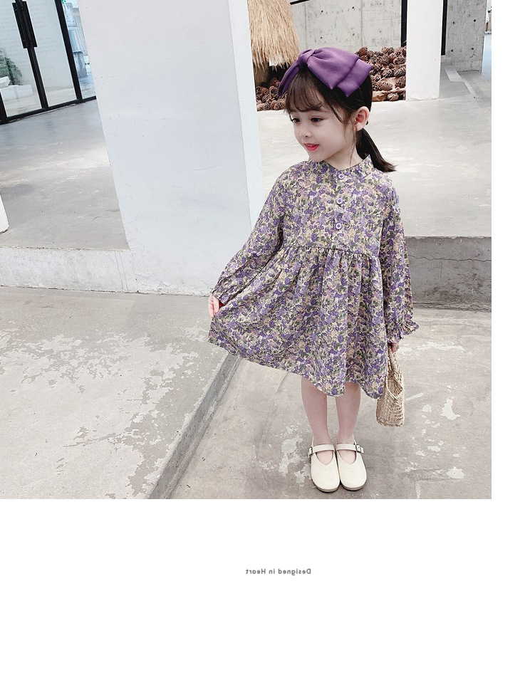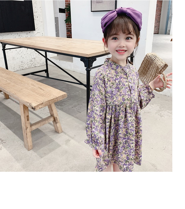 上品な紫色の小花柄が可愛いキッズ用ロングワンピースです。