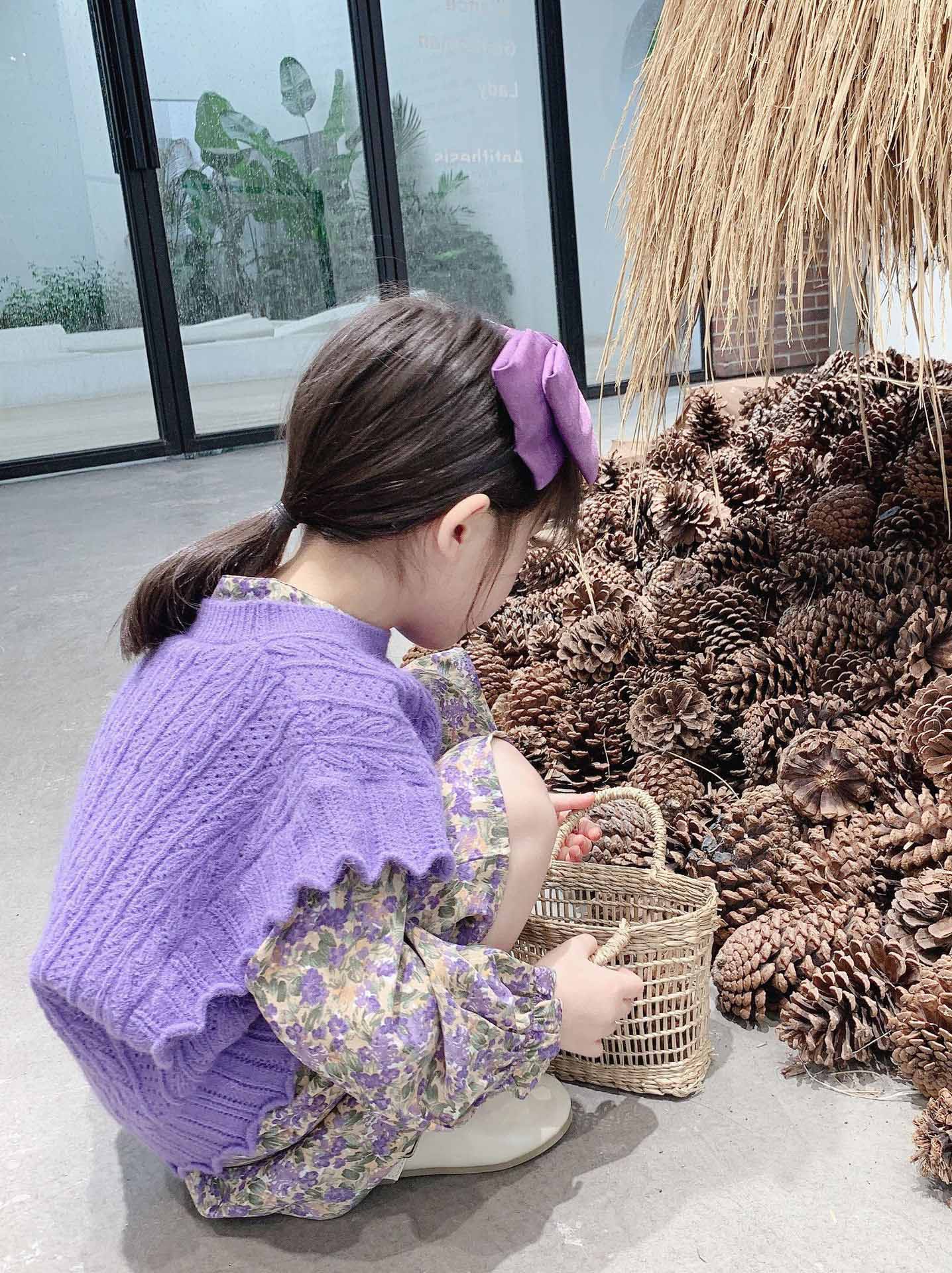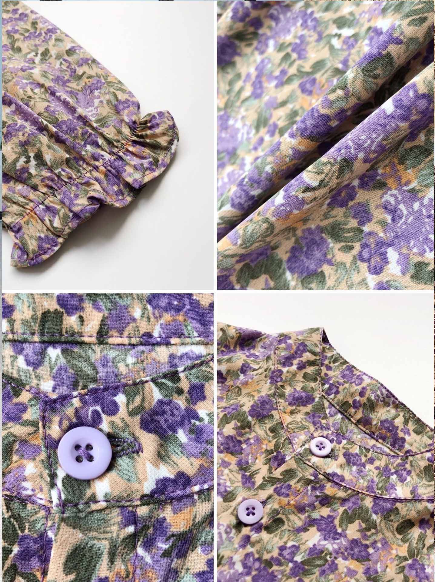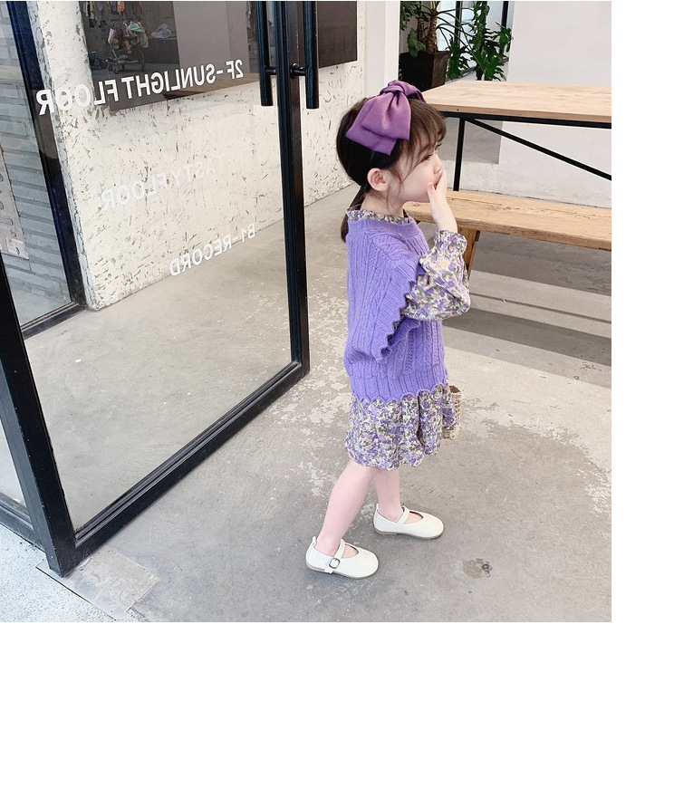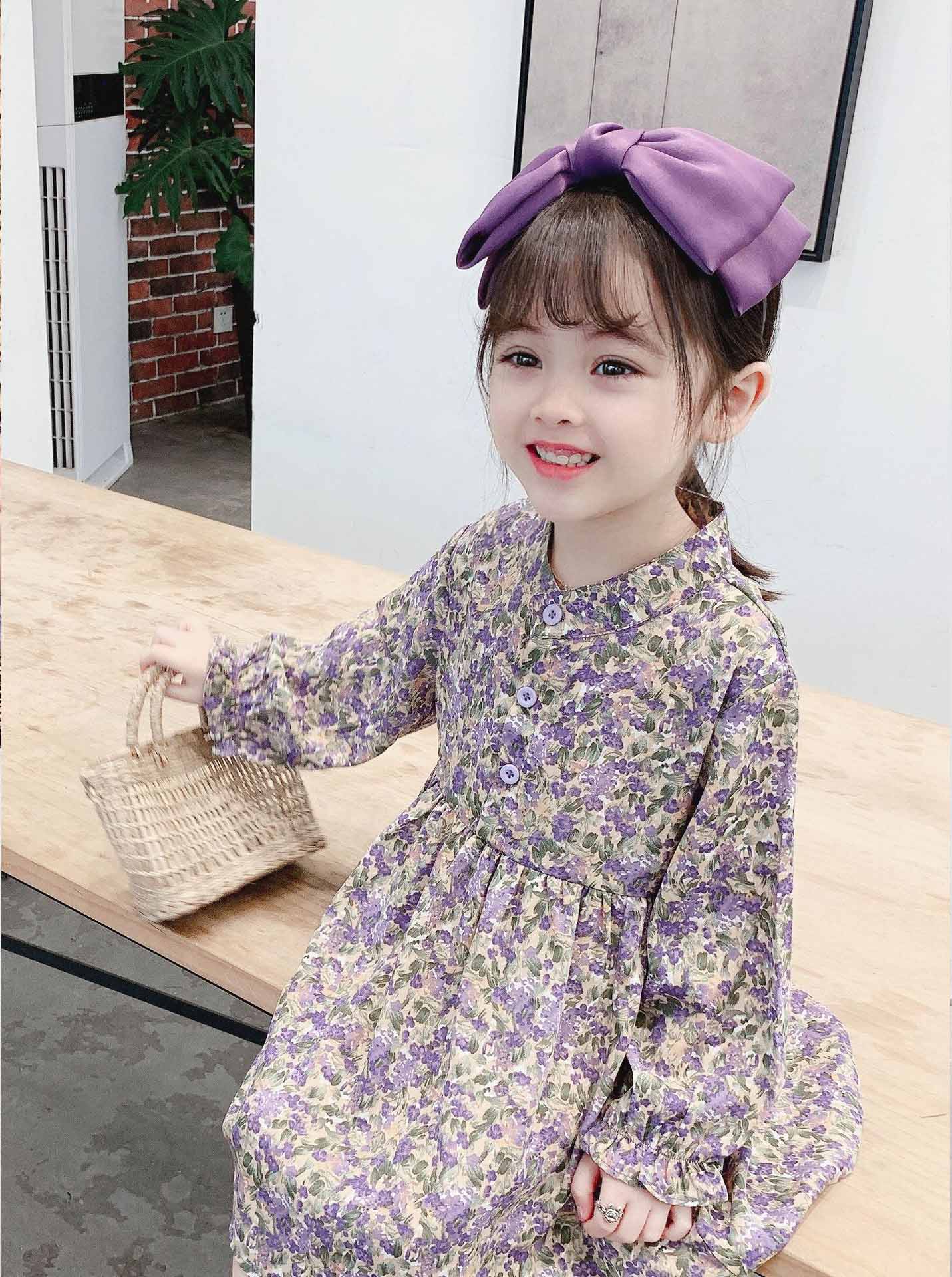上品な紫色の小花柄が可愛いキッズ用ロングワンピースです。