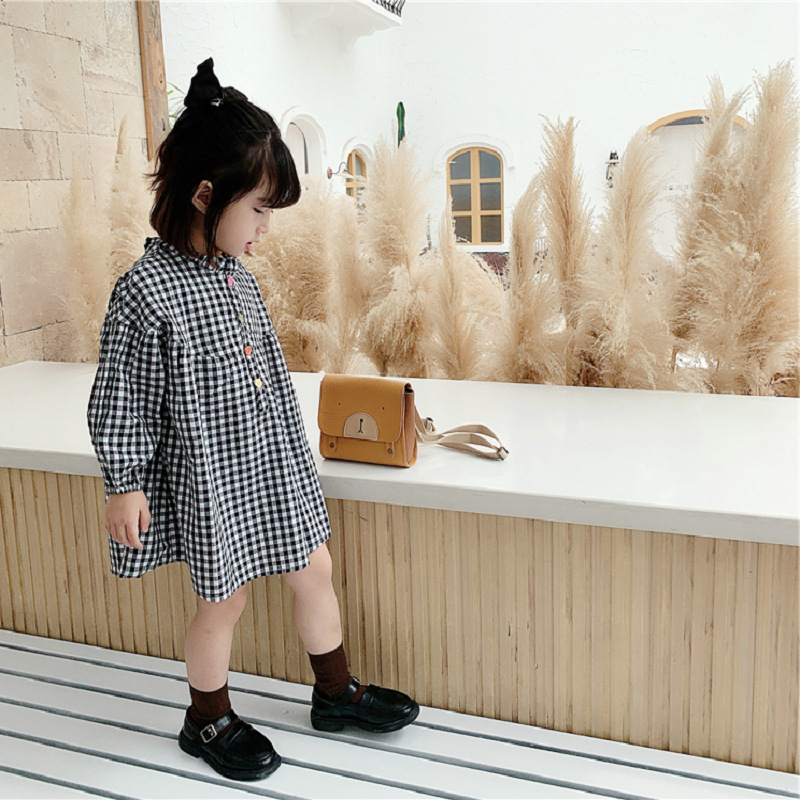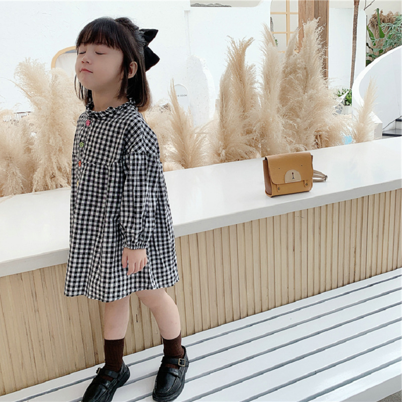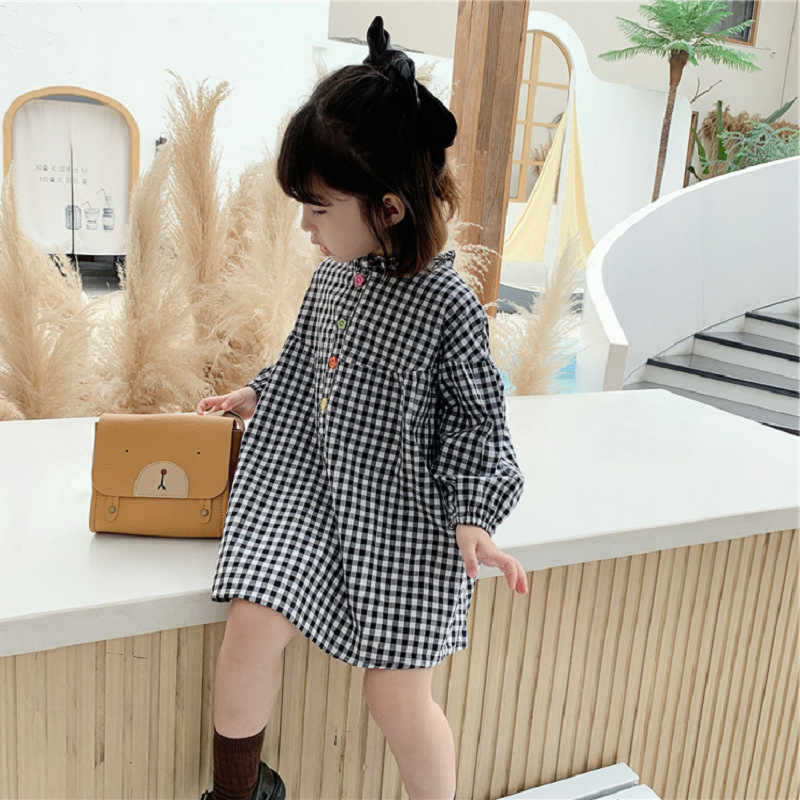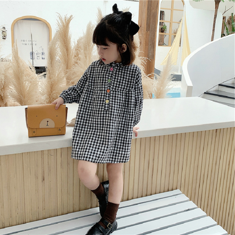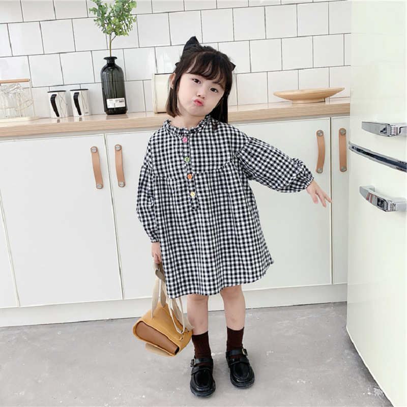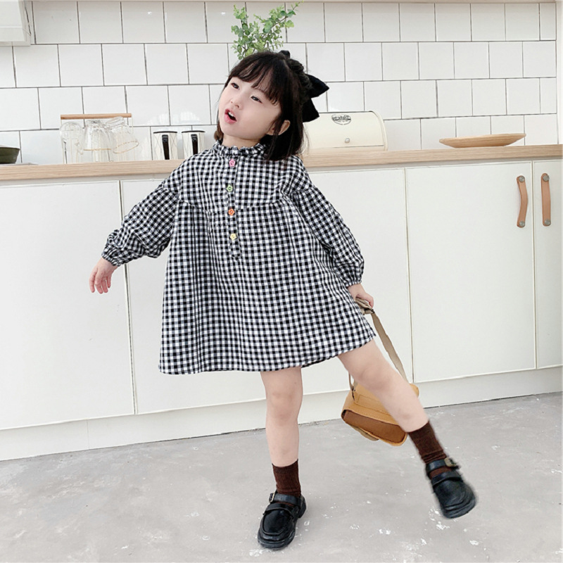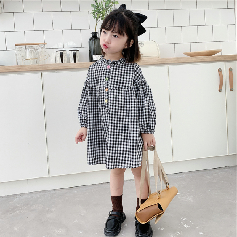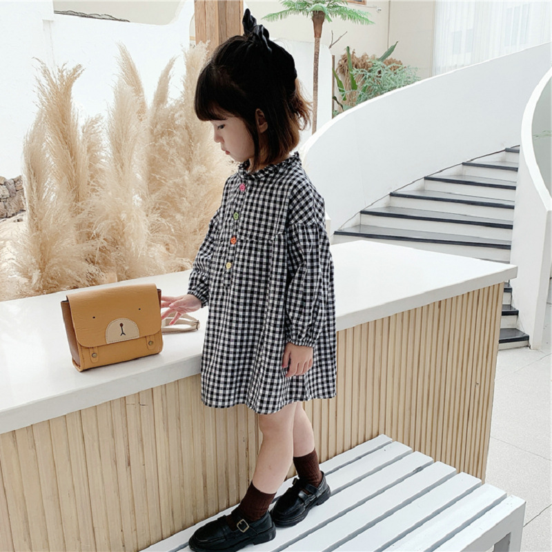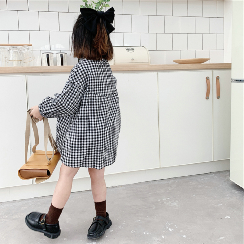 可愛らしいギンガムチェック柄が魅力的なキッズ用ロングワンピース。