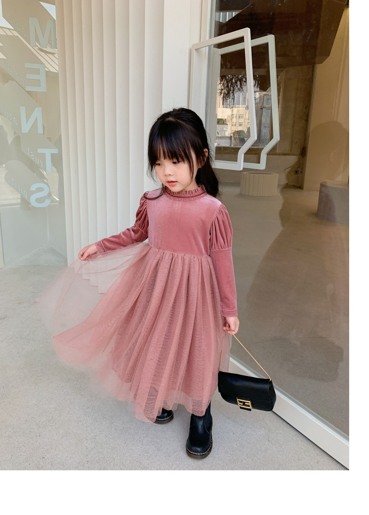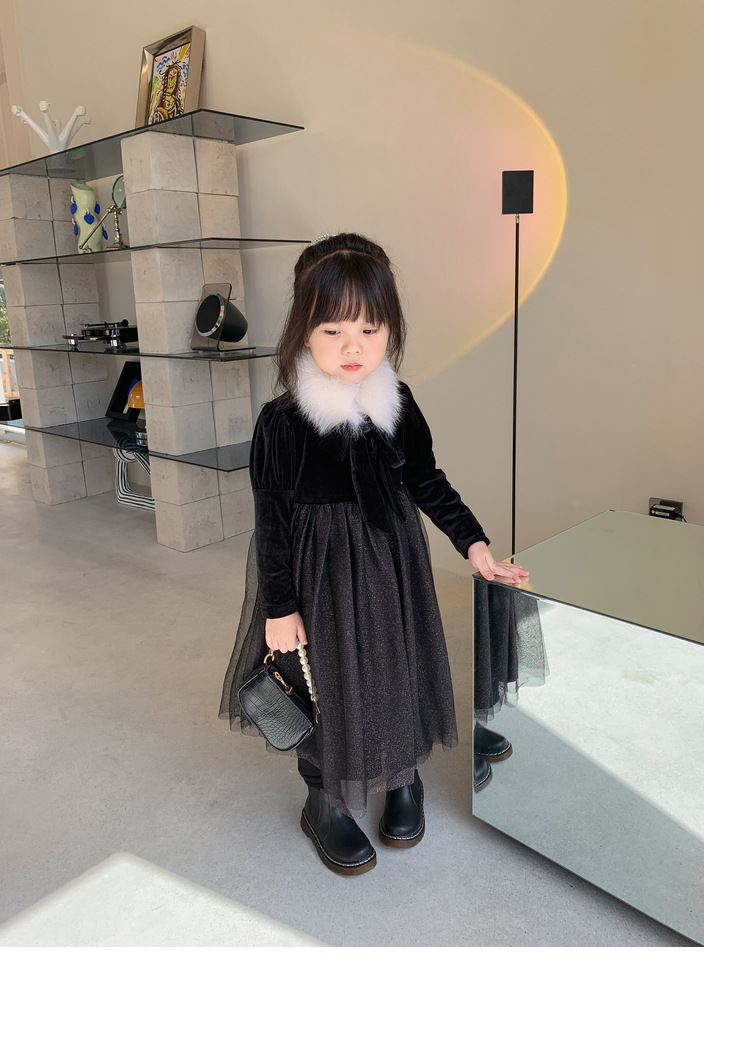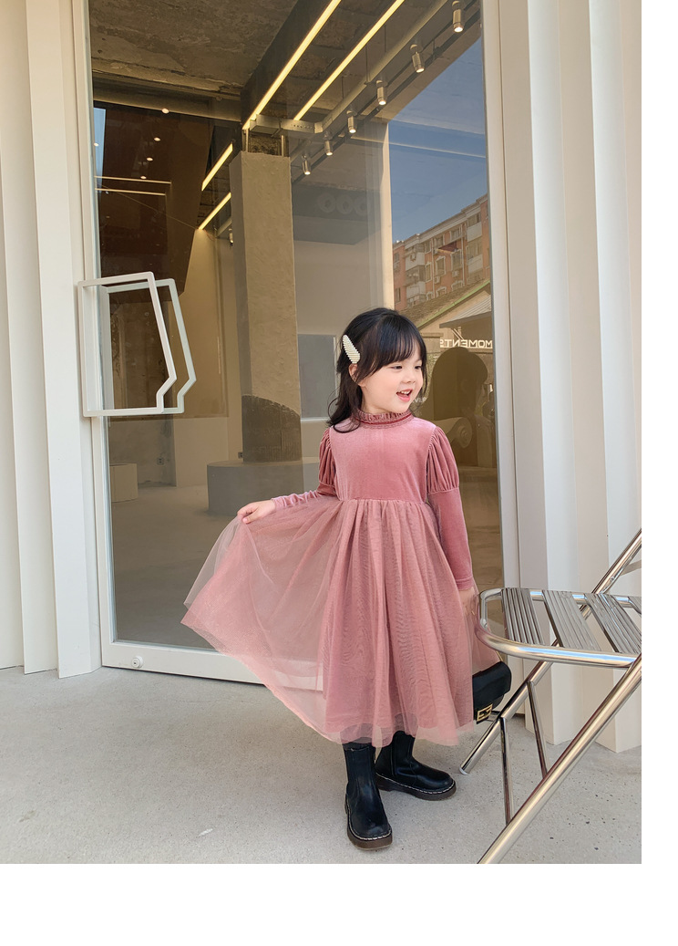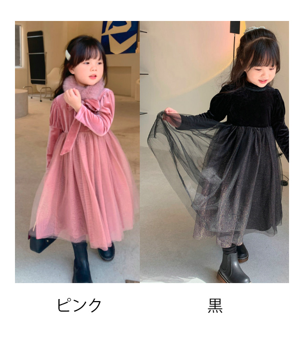 上品な韓国風デザインが魅力的なキッズ用ロングワンピースです。