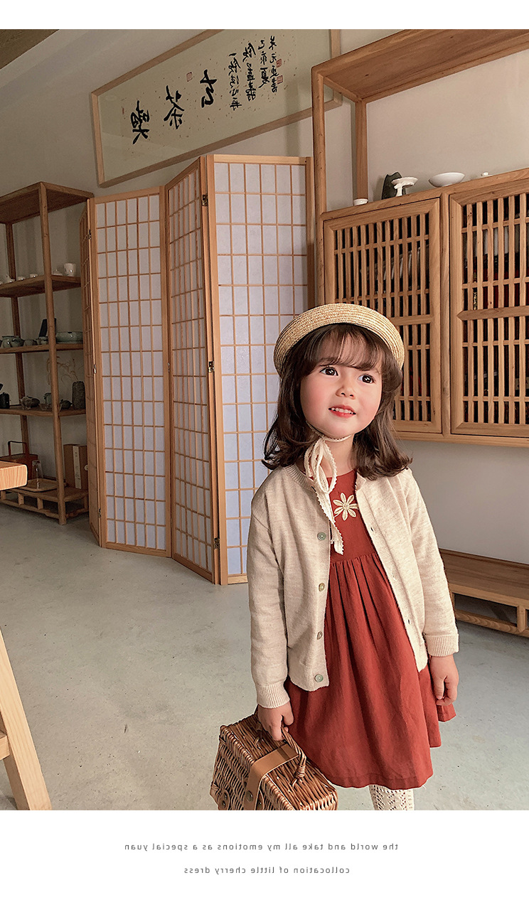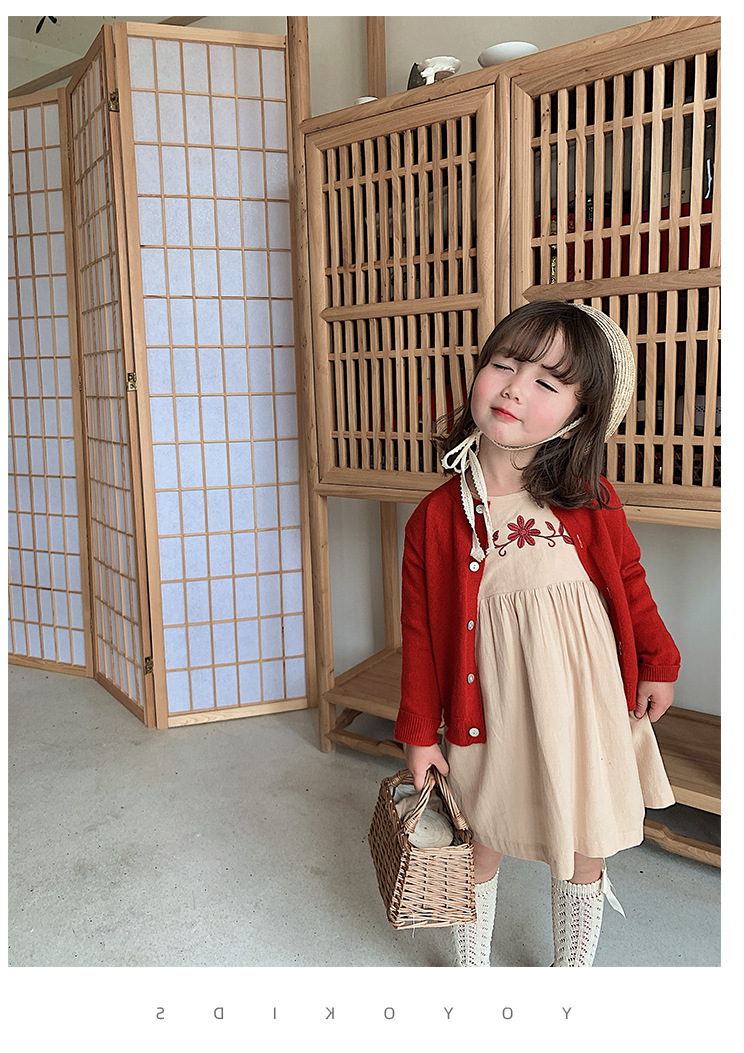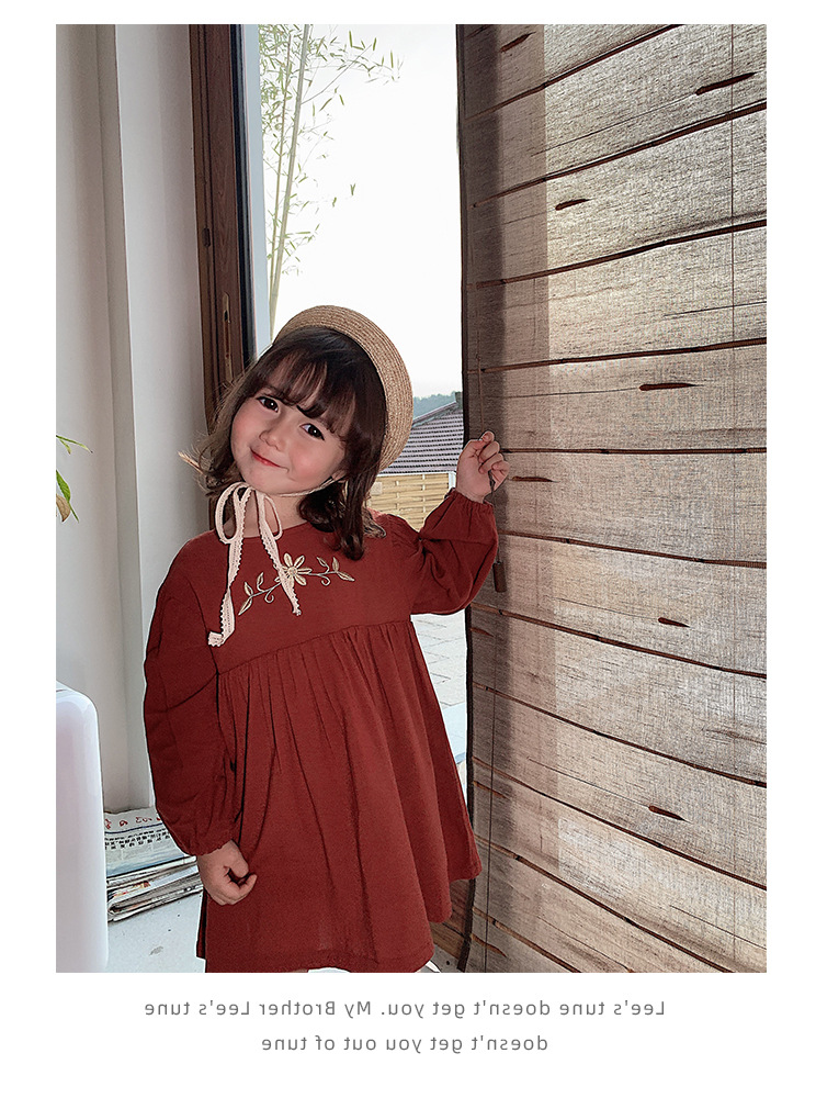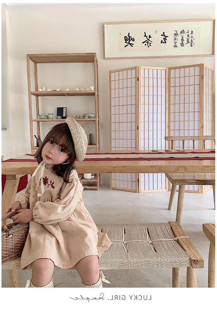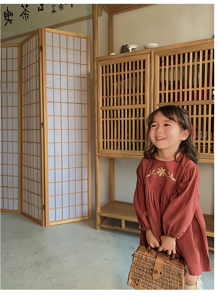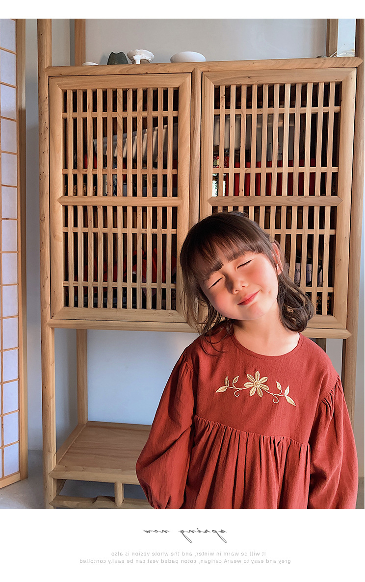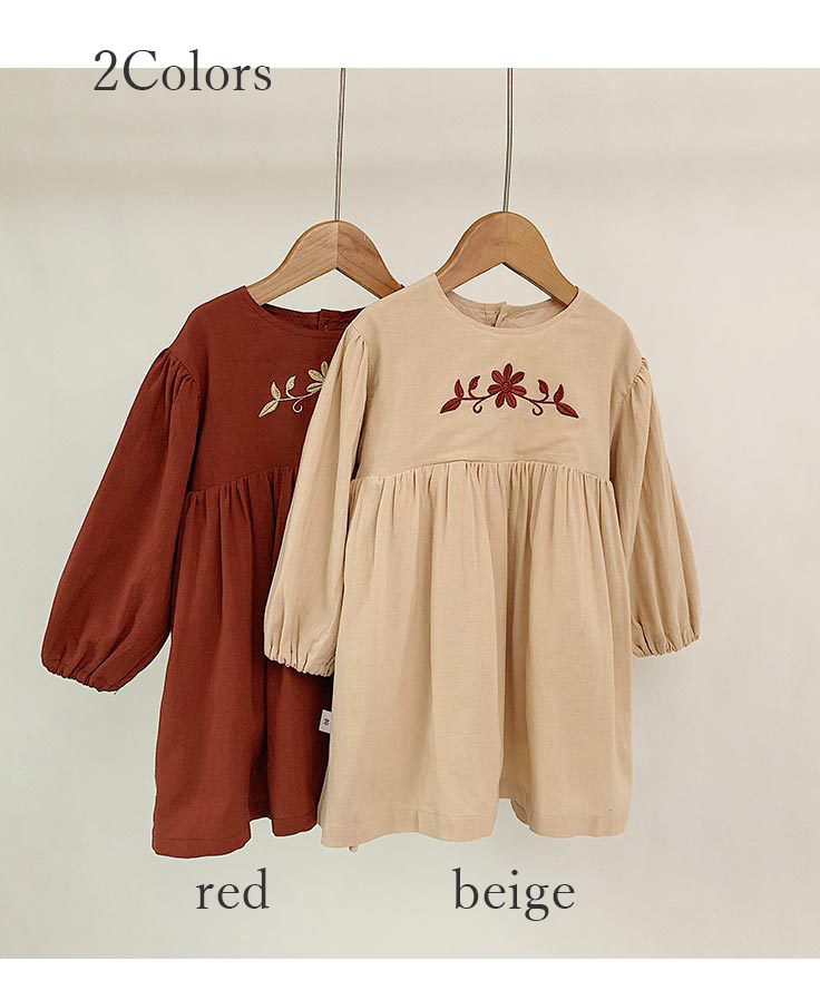 上品な花の刺繍が映える、キッズ女の子のための長袖ロングワンピースです。