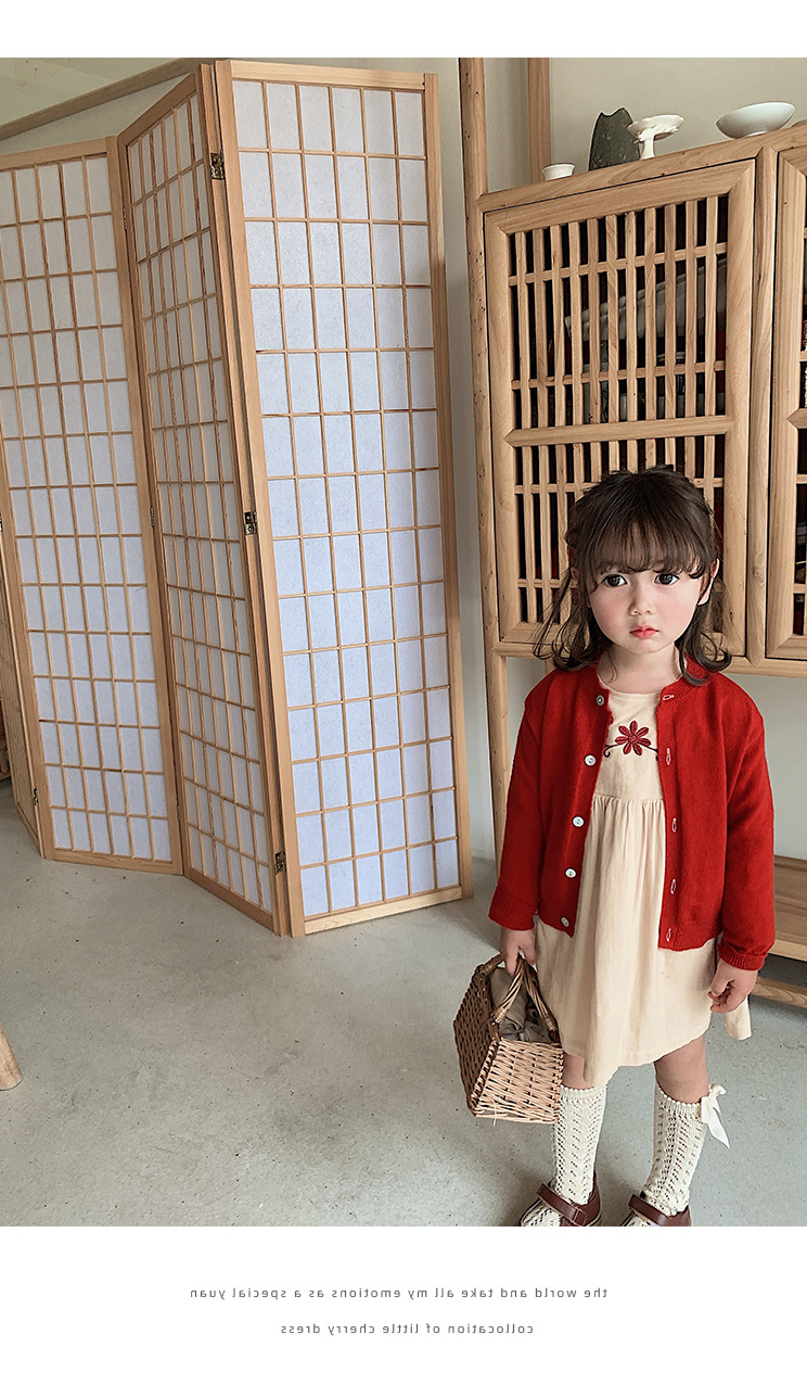 韓国風の可愛らしいデザインで、胸元の繊細な刺繍とギャザーが特徴的。