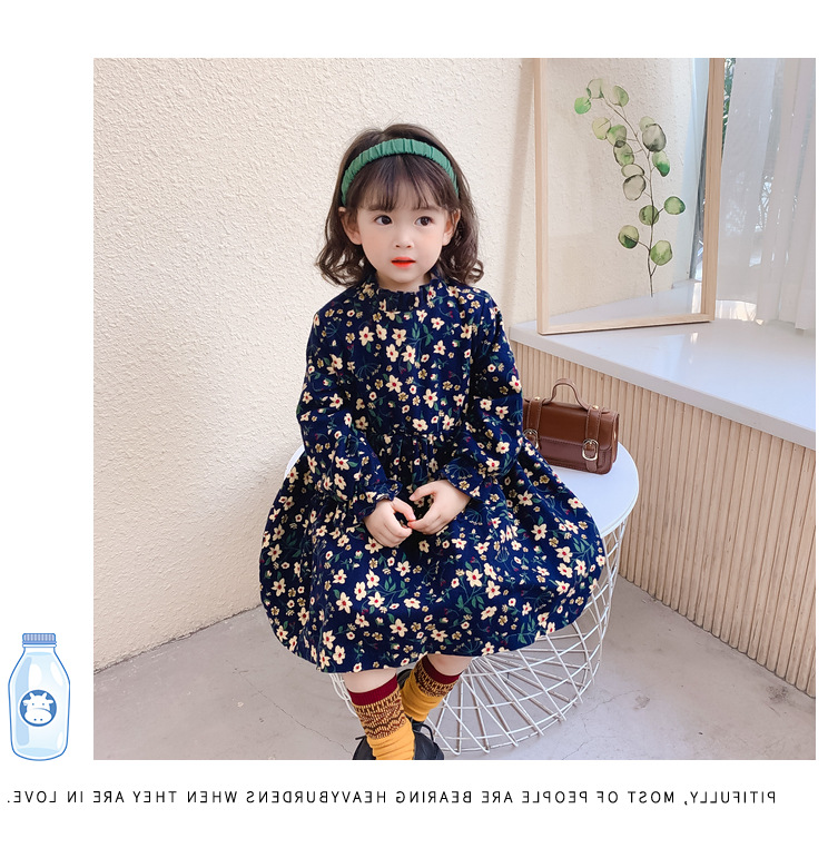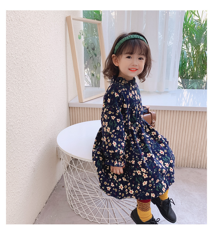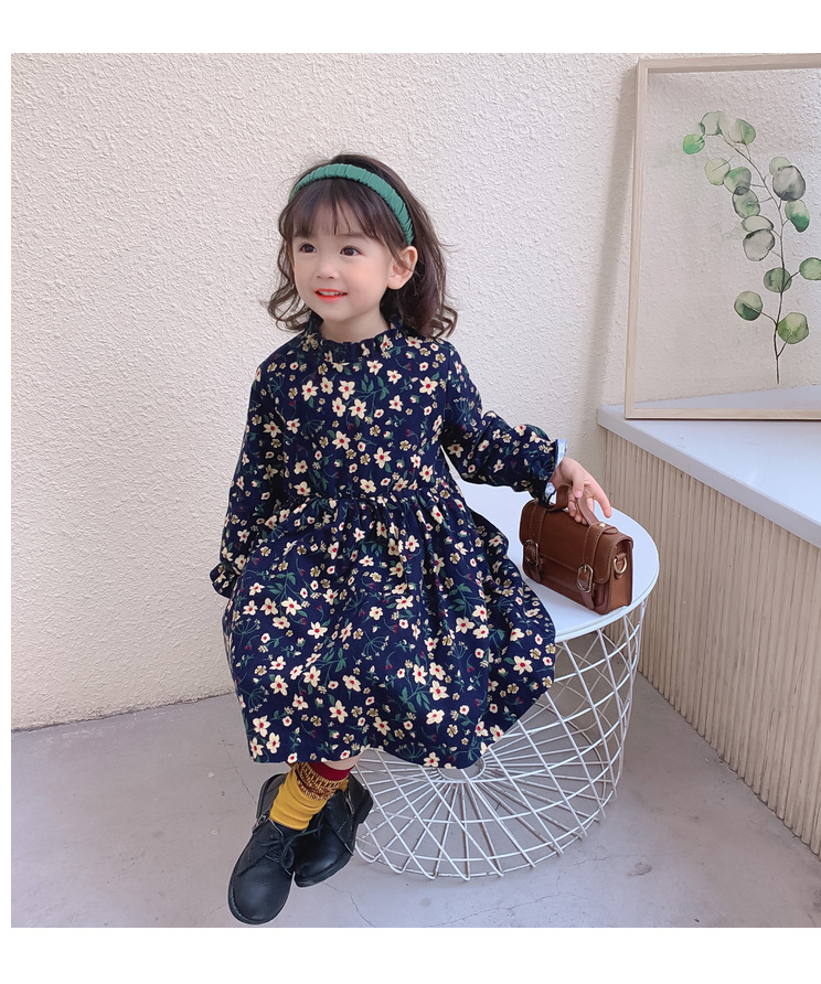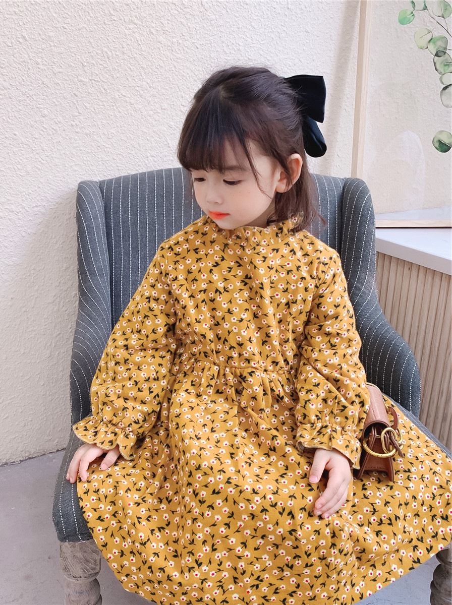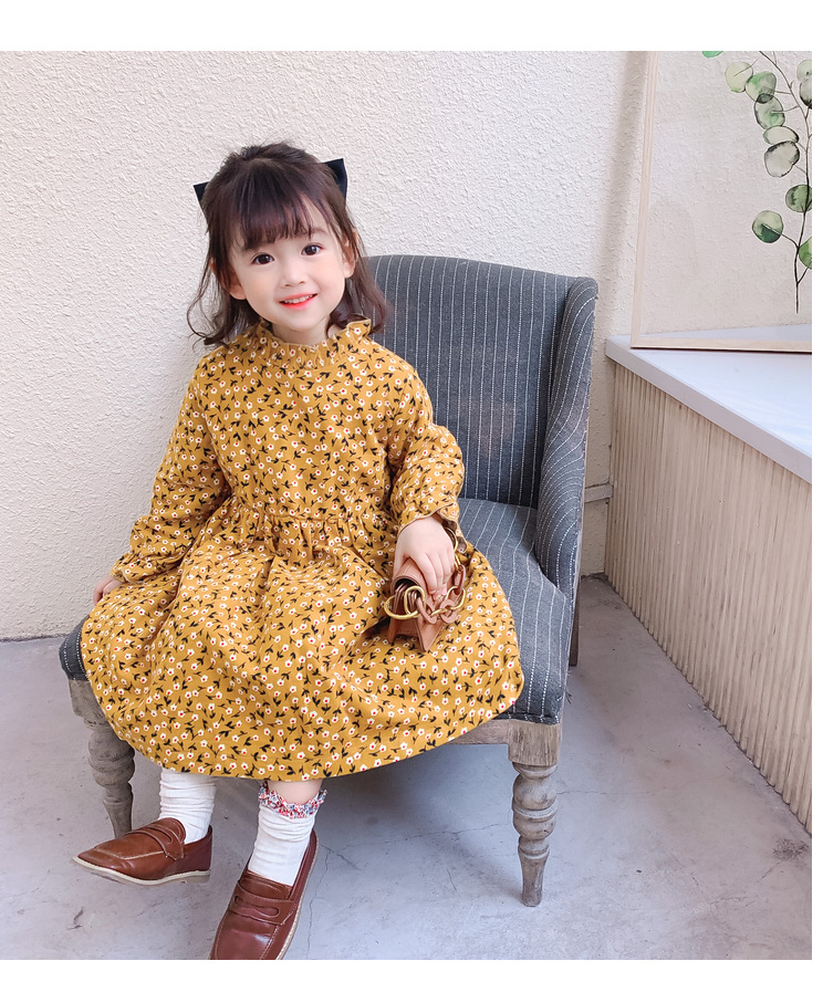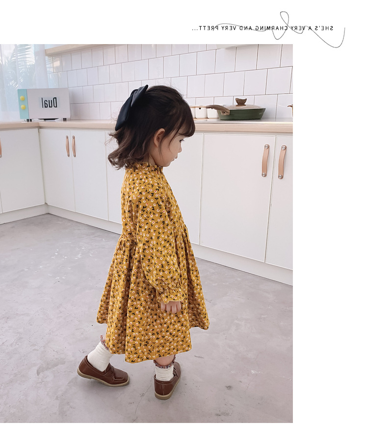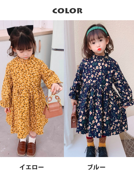 可愛い小花柄が印象的な韓国風キッズ用ロングワンピースです。