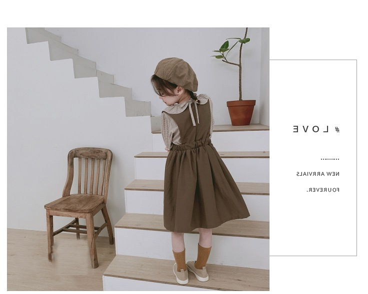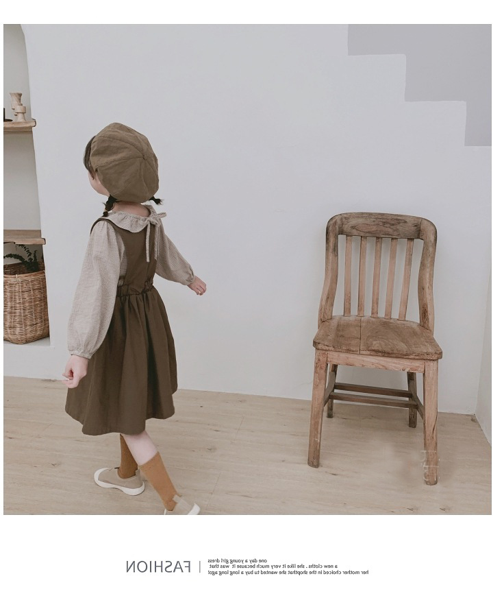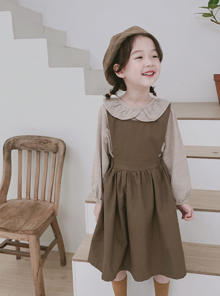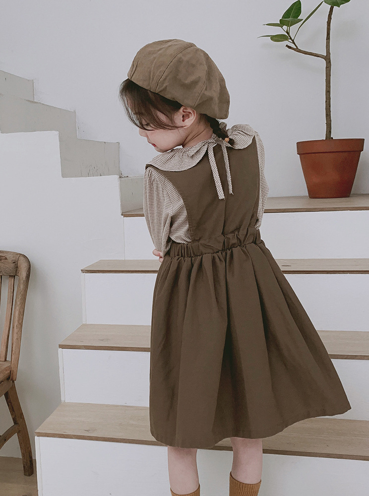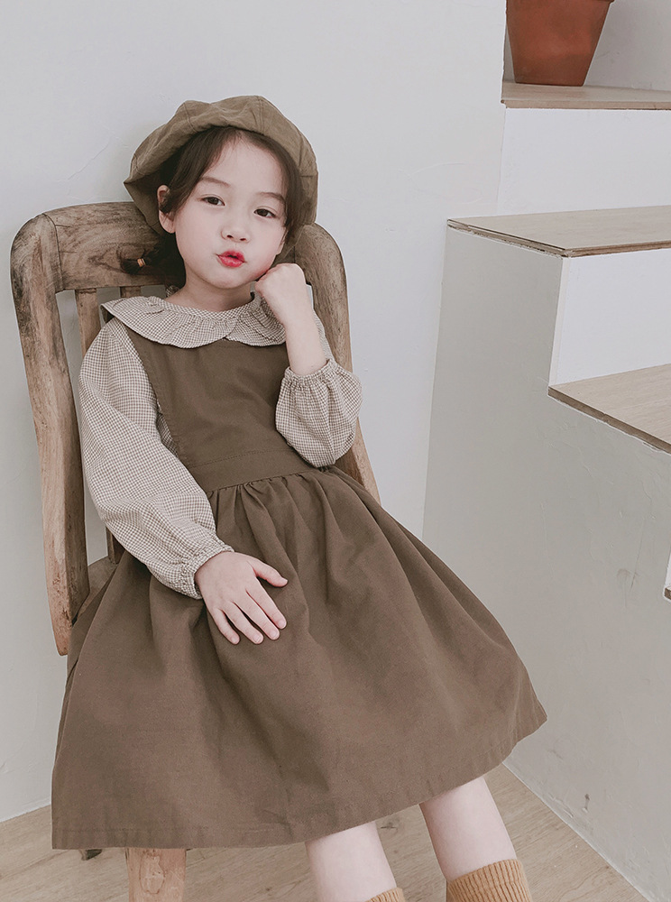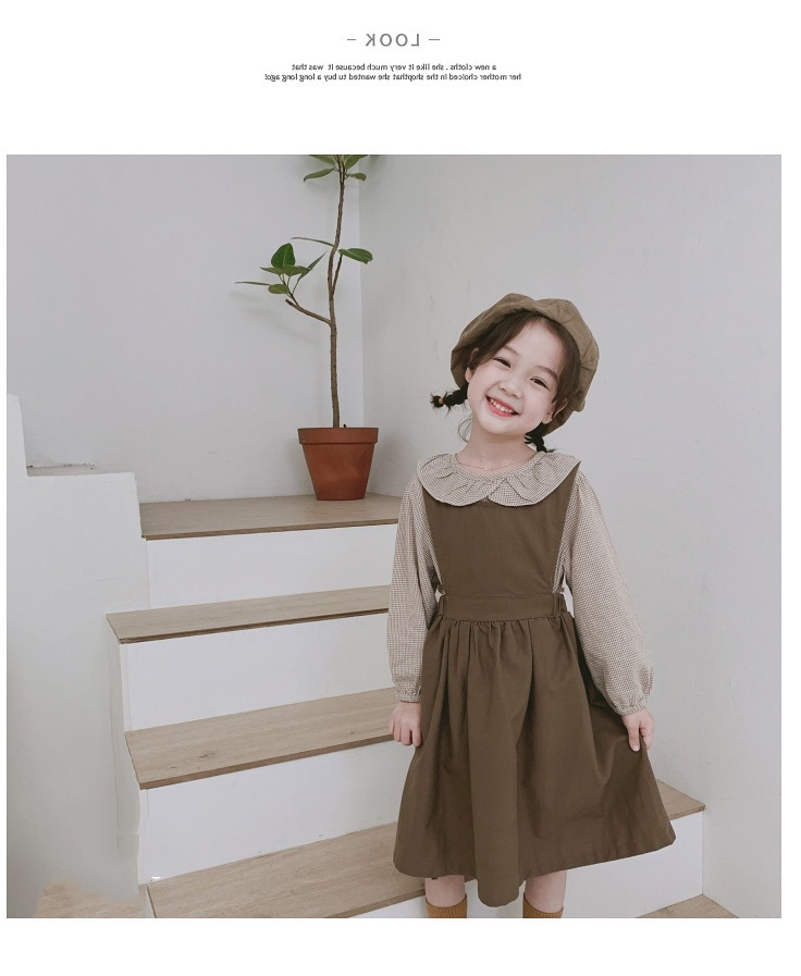 可愛らしい襟付きチェック柄ブラウスとシンプルなロングワンピースのキッズ向け二点セットです。