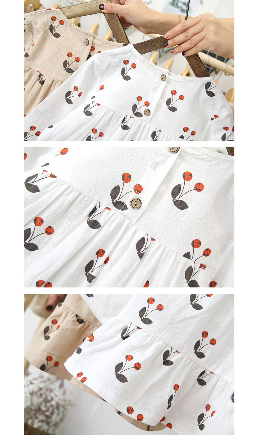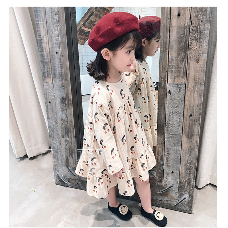 可愛らしいチェリー柄が印象的なキッズ向けロングワンピースです。