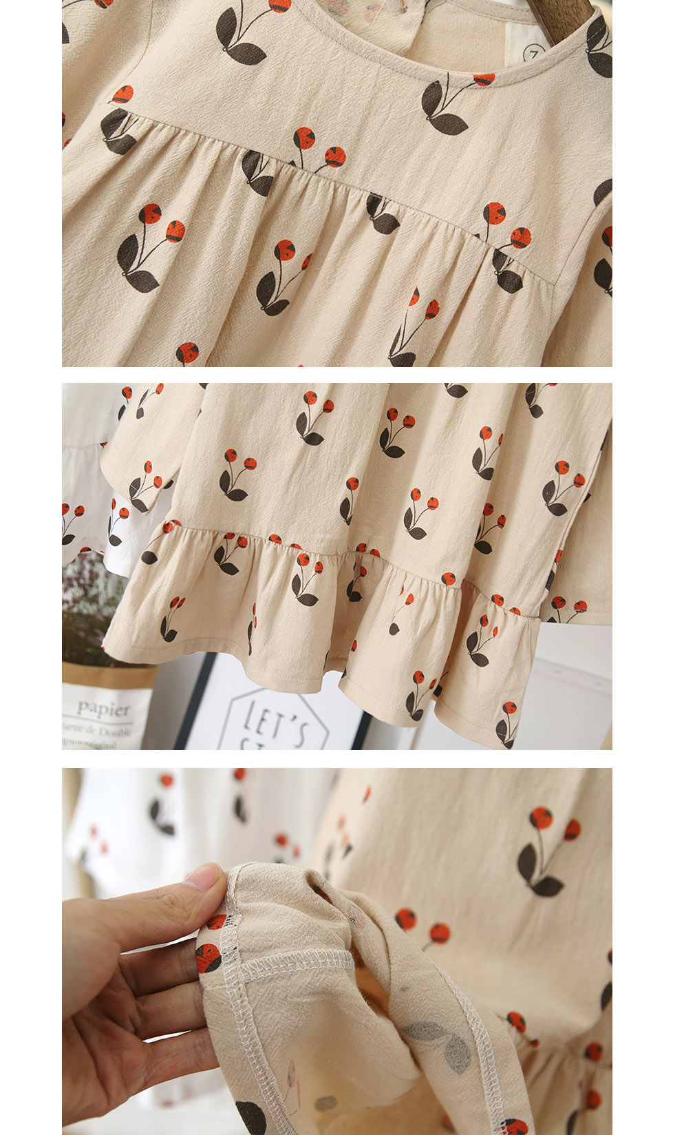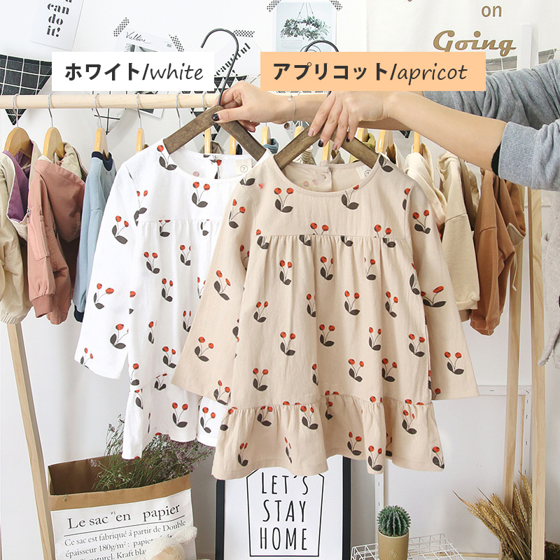 裾のフリルが女の子らしさを演出し、普段着からお出かけまで幅広くご活用いただけます。