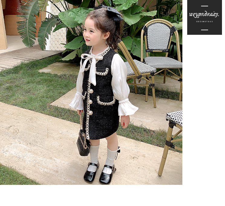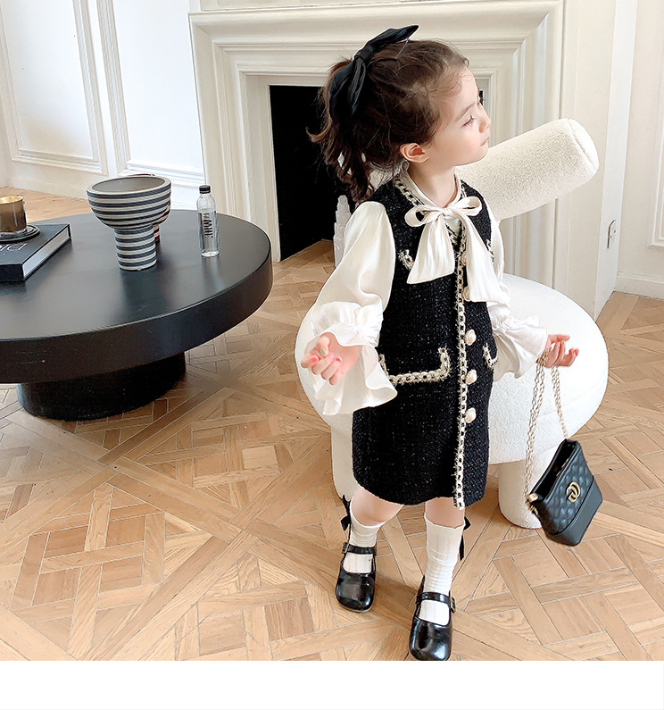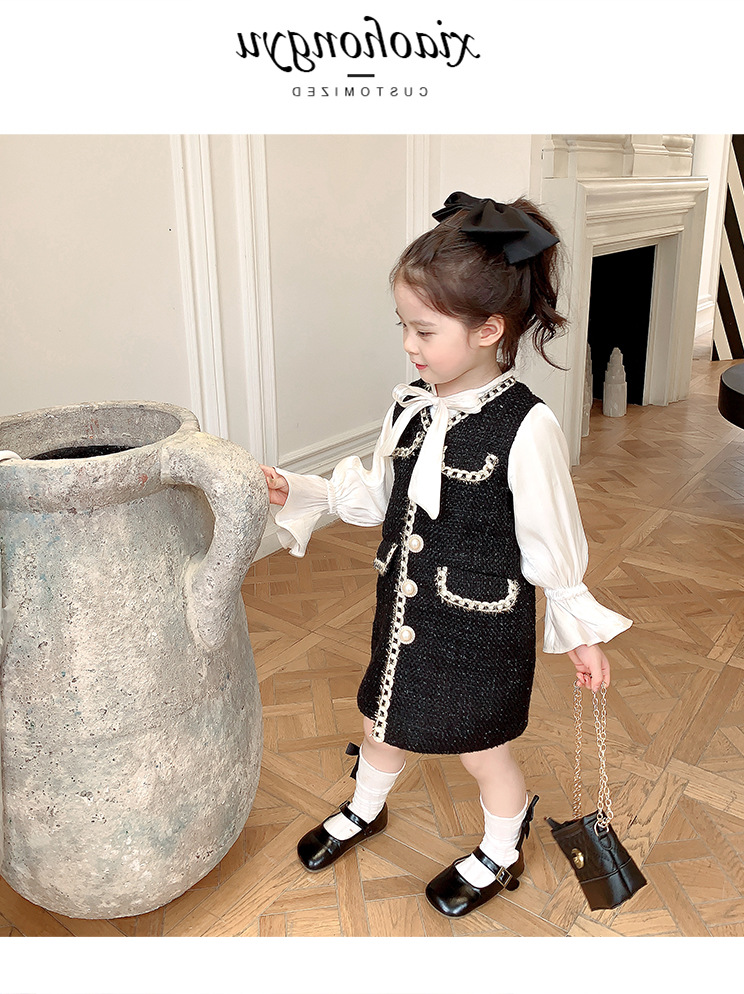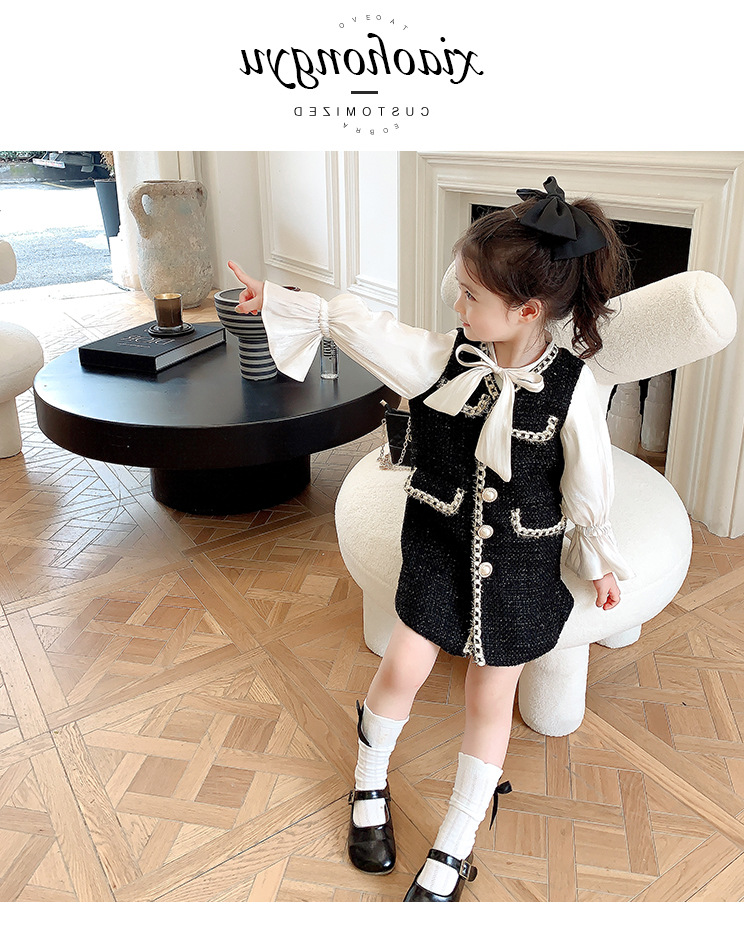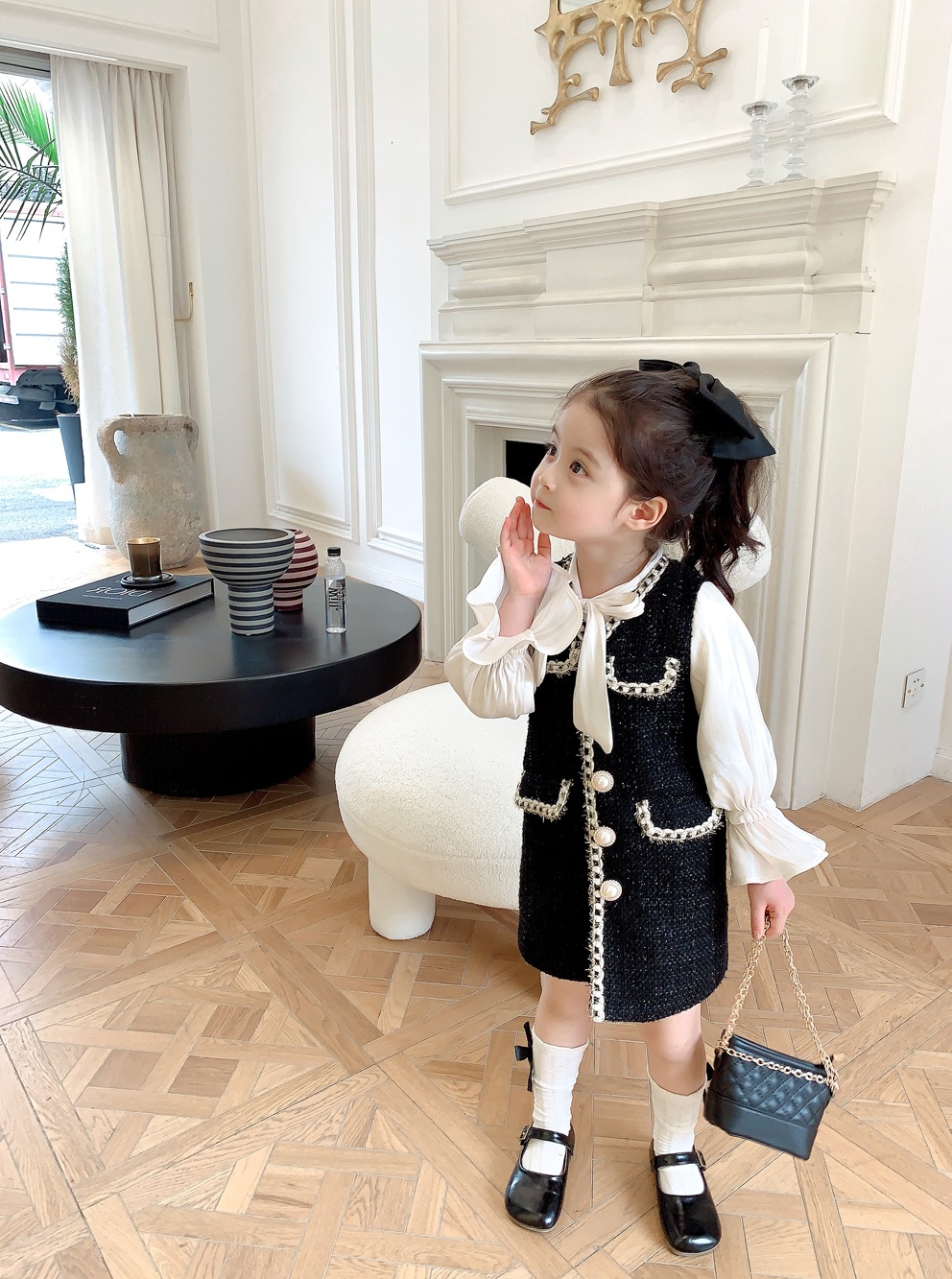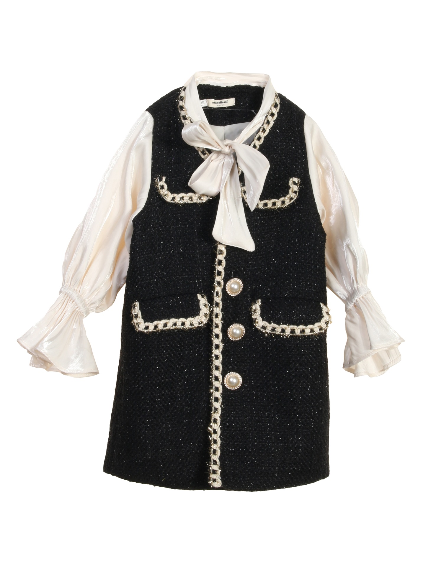 上品なツイード調素材を使用したキッズ向けワンピースセットです。