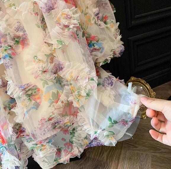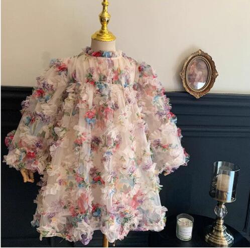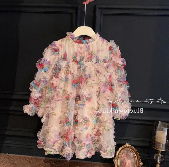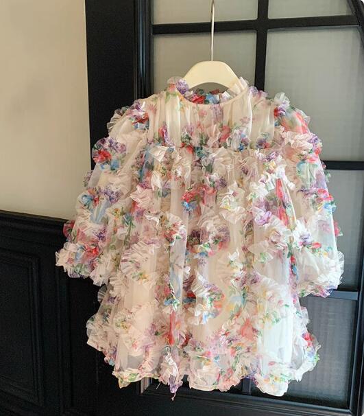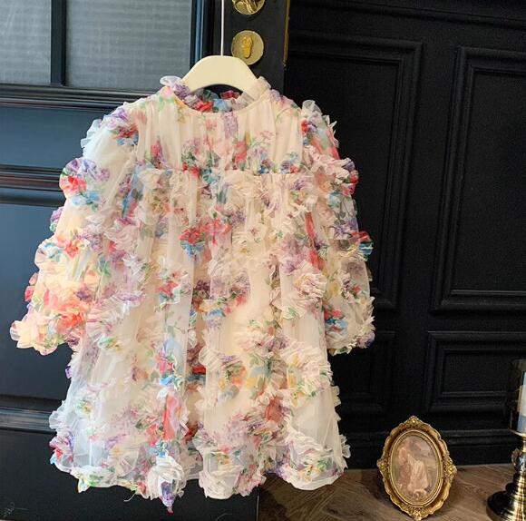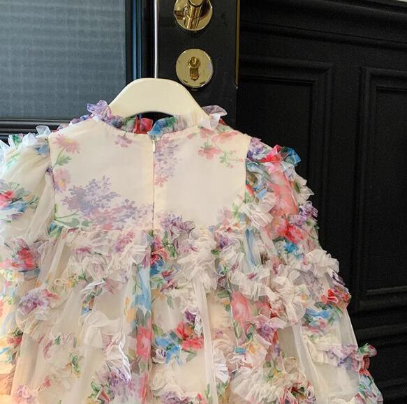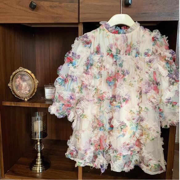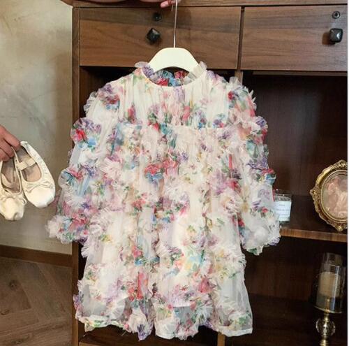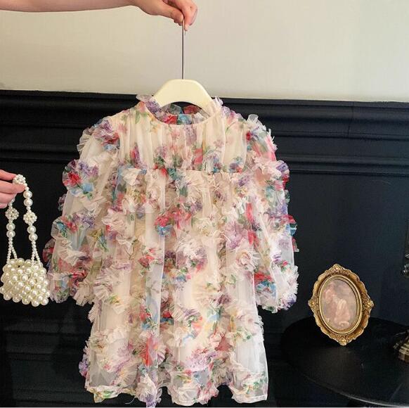 キッズ向けの華やかな花柄ロングワンピースです。