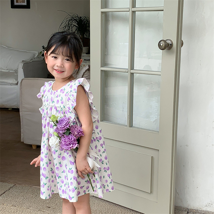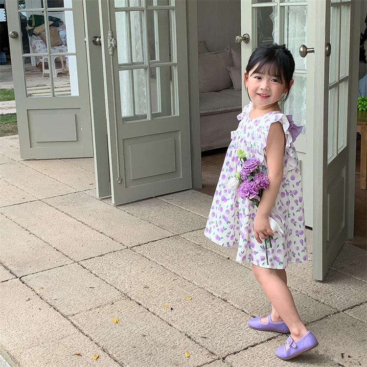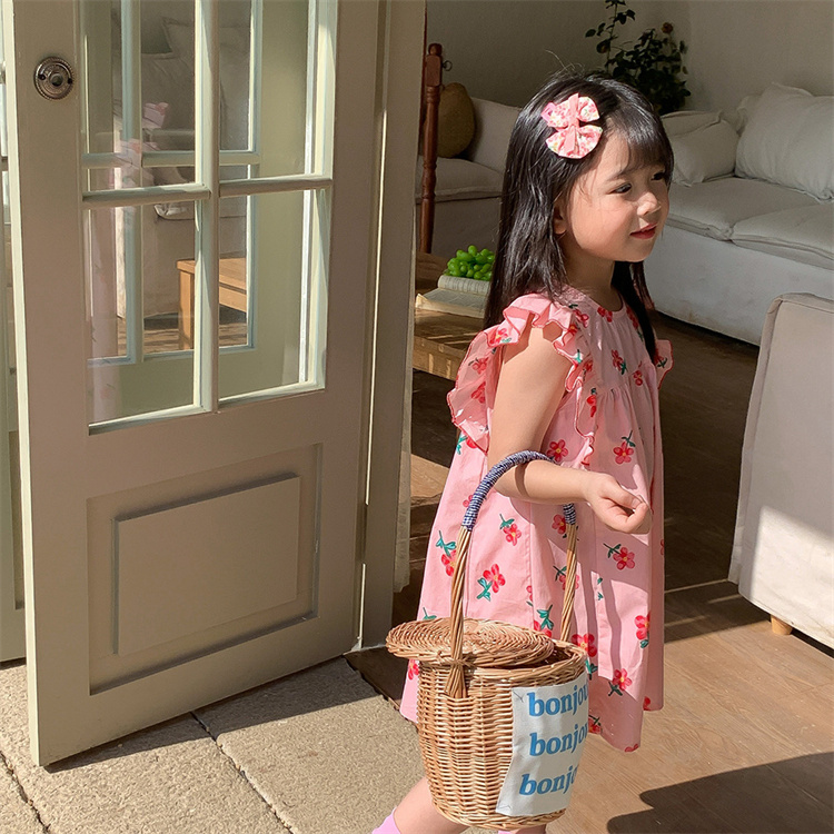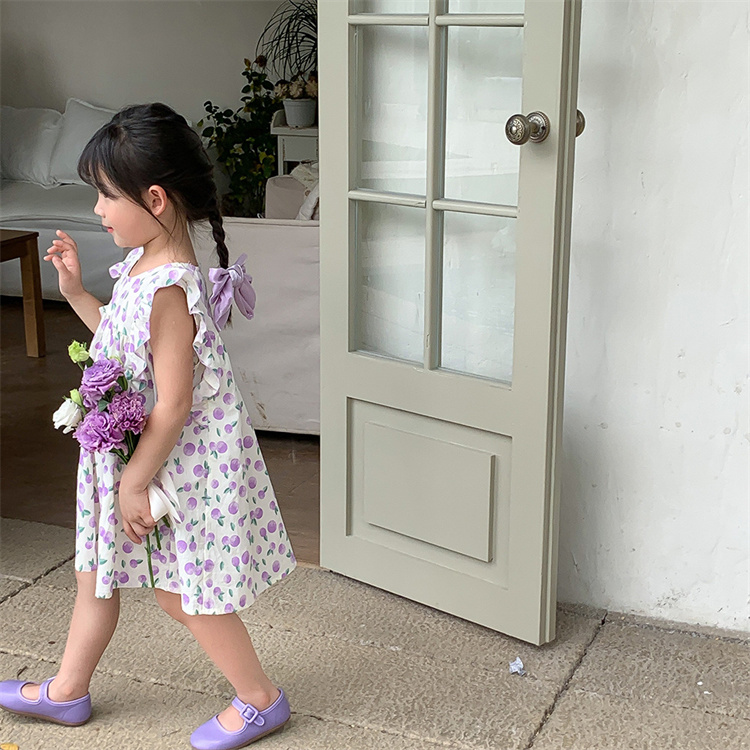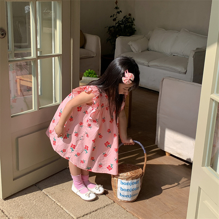 キッズ女の子向けの可愛い花柄ロングワンピースです。