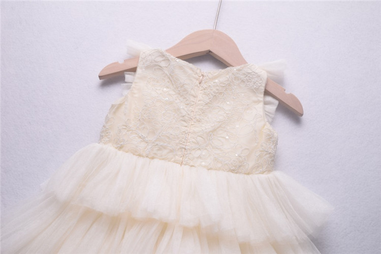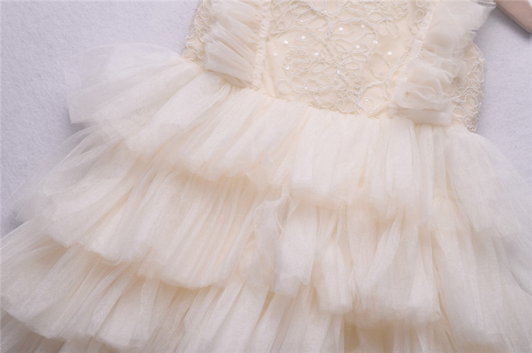 キッズ向けお姫様風のロングワンピースです。 上品なレース装飾と多層チュールスカートで特別な日にぴったり。 素材はポリエステルとコットンで着心地も抜群です。 カラーはエレガントなクリーム色をご用意しております。