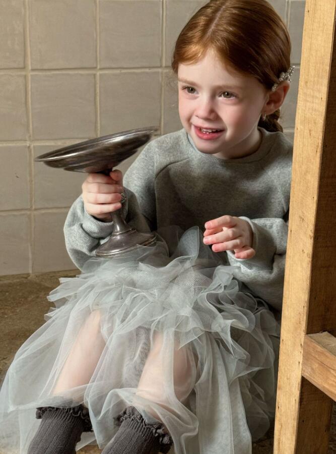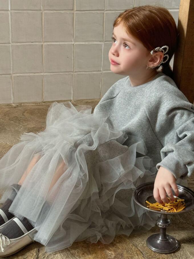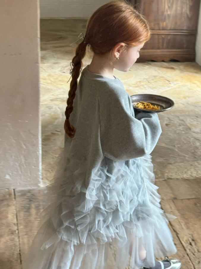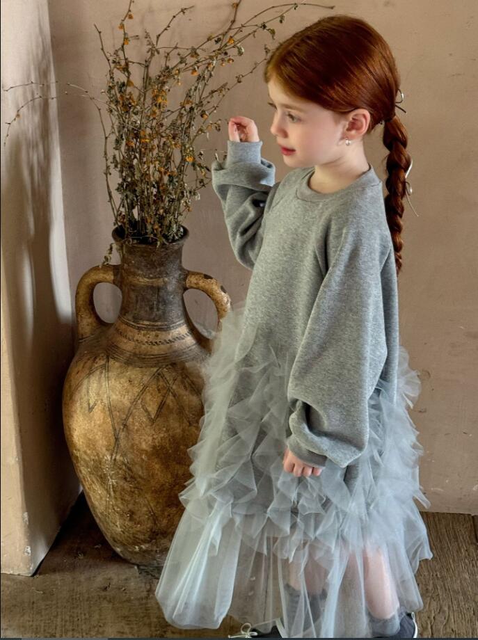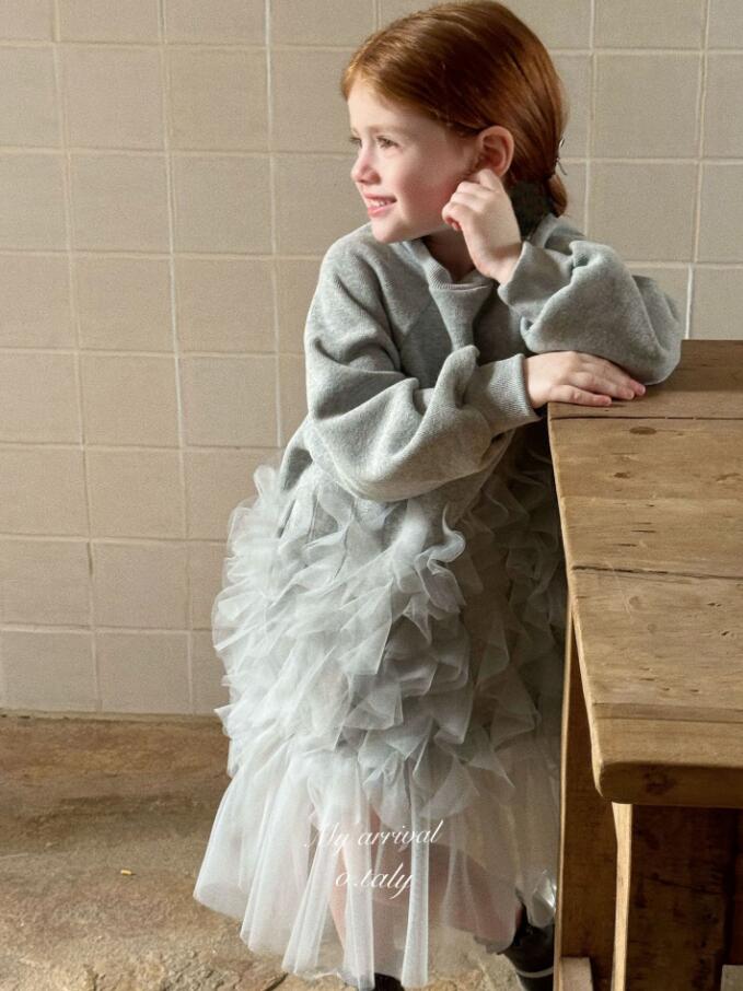 重ねチュールが歩くたびに揺れて、とても可愛らしい一着です。