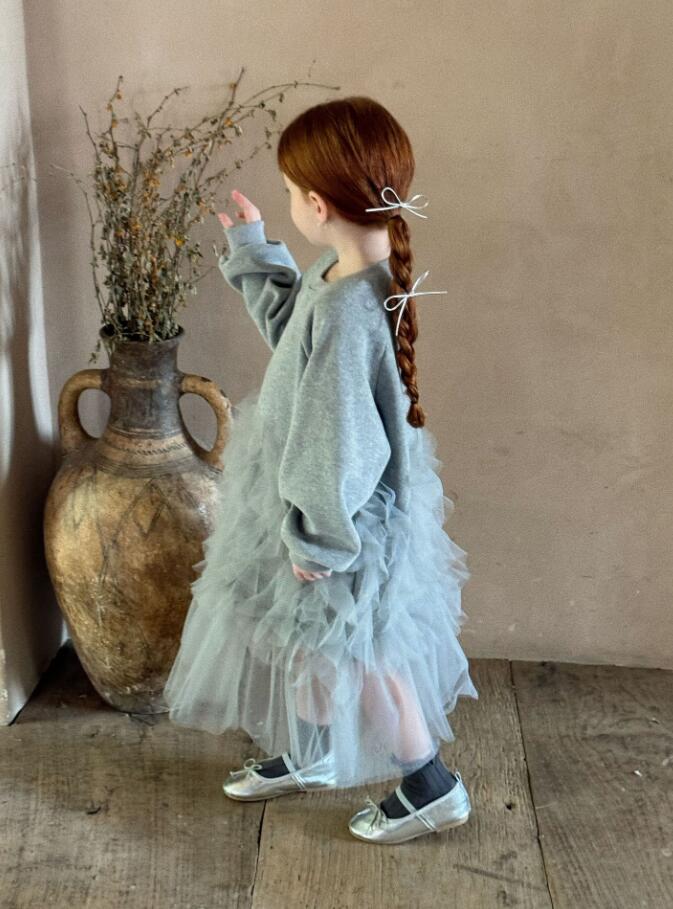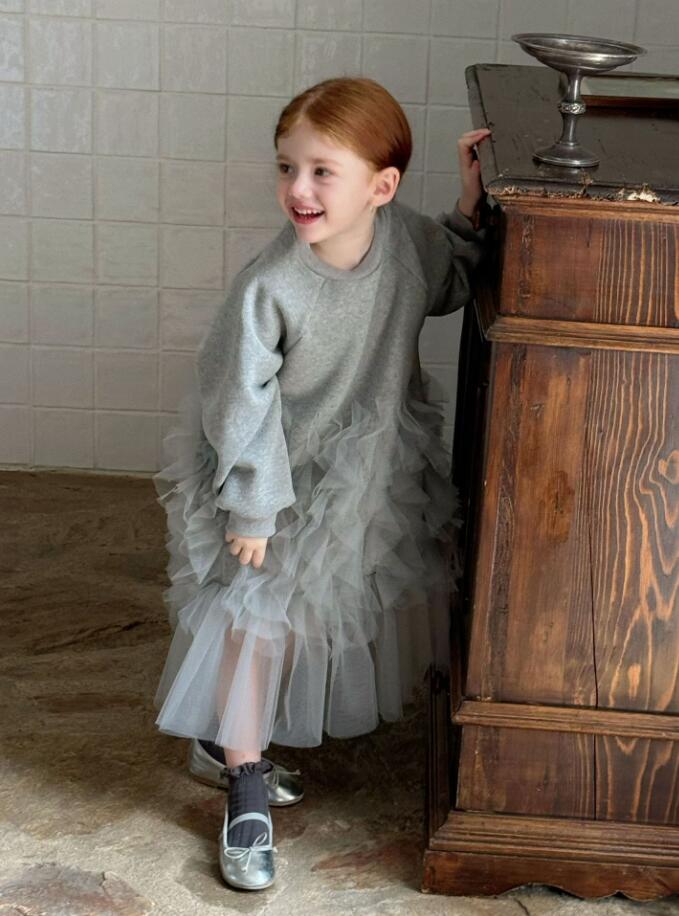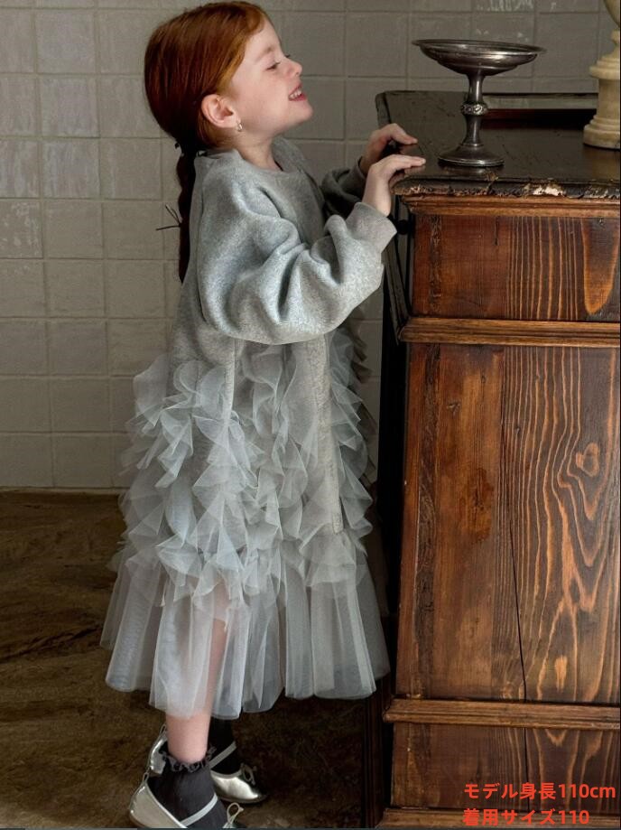 ふんわりチュールが美しいキッズ用ロングワンピースが新登場しました。