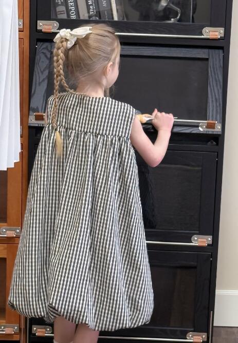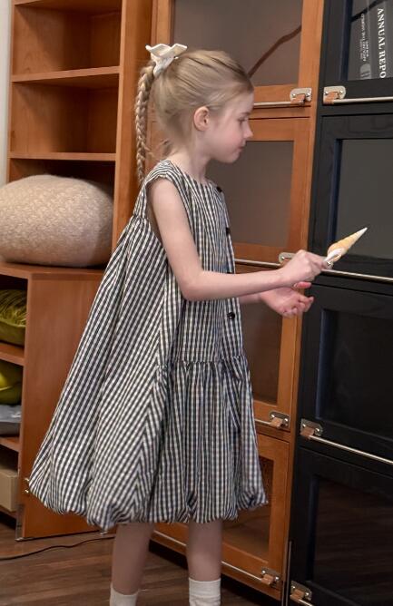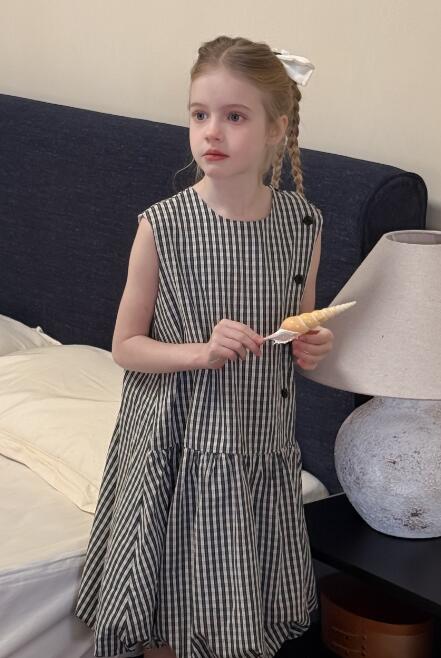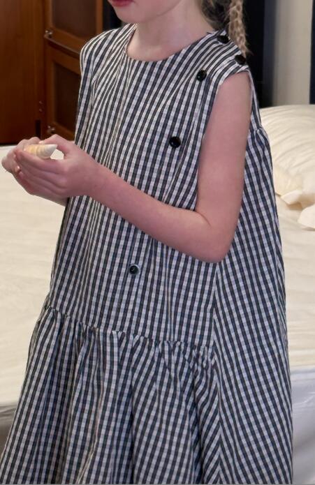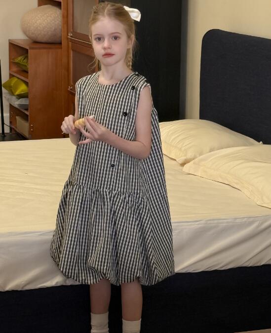 袖なしデザインで夏にも涼しく、膝下まである丈感が女の子らしい優雅さを演出します。